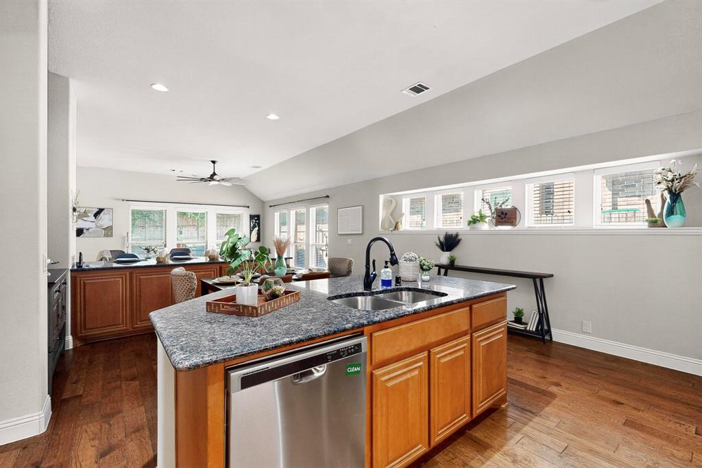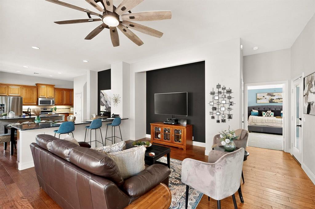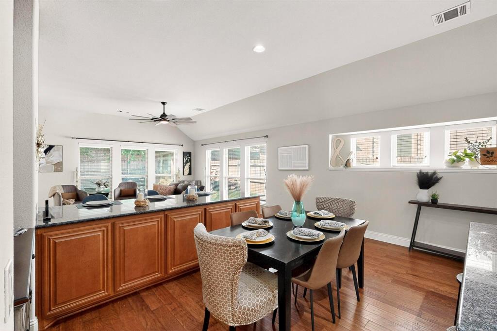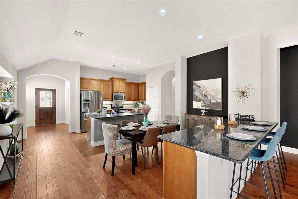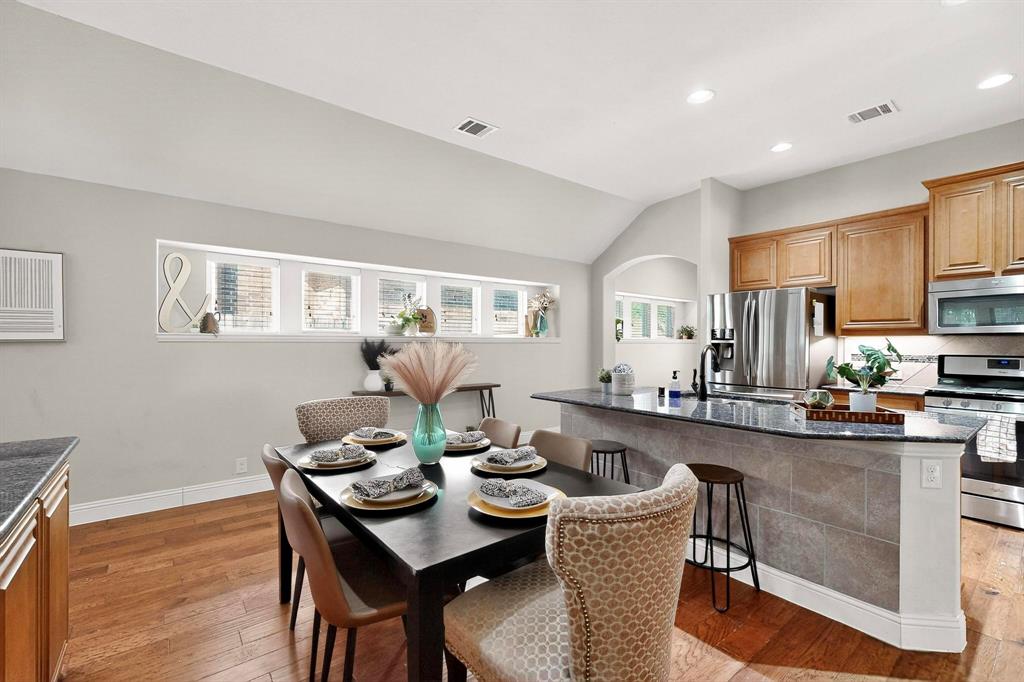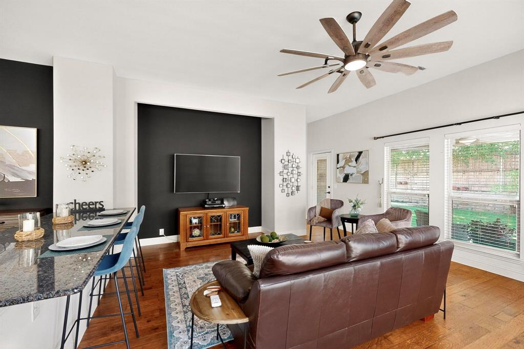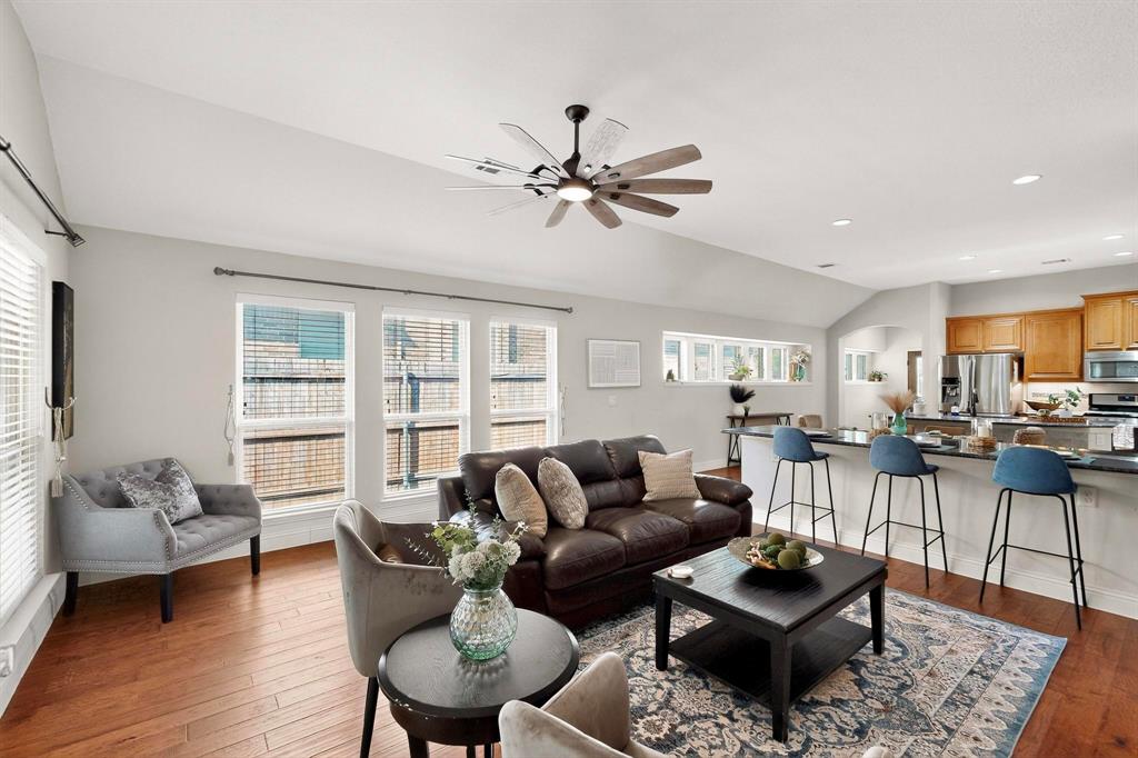 Welcome to 9204 Benbrook Lane, a gorgeous 3-bedroom, 2-bathroom home in the highly sought-after Country Lakes community of Argyle! This move-in ready East-facing home features an inviting open-concept design with brand new carpet, a spacious kitchen, dining, and living area perfect for entertaining. The kitchen is highlighted by stainless steel appliances and a gas cooktop, while large windows fill the living spaces with natural light. The primary suite offers a relaxing retreat with a cozy bay window sitting area, oversized shower, and generous walk-in closet. Secondary bedrooms are roomy and versatile, and the third-car garage provides extra space for storage, hobbies, or a workshop. Step outside to enjoy evenings on the extended front porch, or host weekend barbecues under the covered back patio overlooking a large backyard paradise with no rear neighbors—just wide-open fields for privacy. Recent updates include a brand-new roof replaced in 2024, upgraded outdoor wiring for holiday lights, and fully paid-off solar panels at closing—combining peace of mind with long-term energy savings. With its perfect blend of style, comfort, and modern upgrades, this Argyle treasure is priced to sell—and it won’t last long!