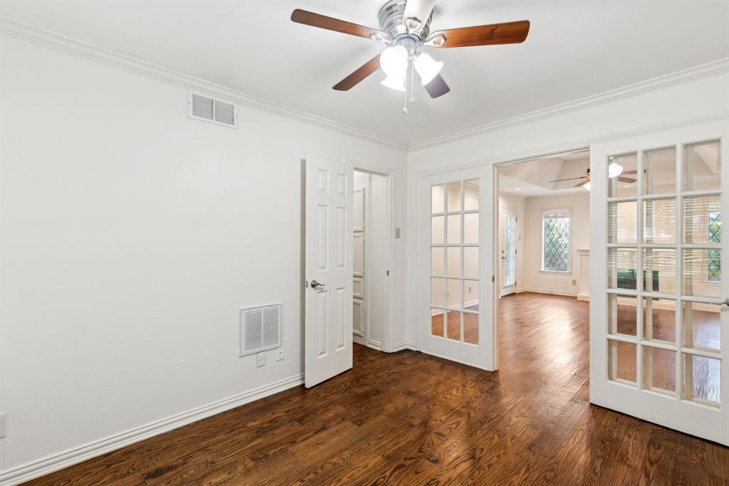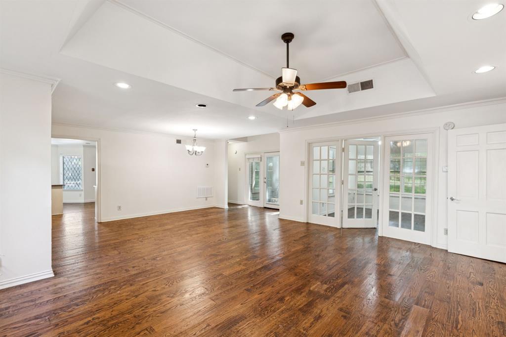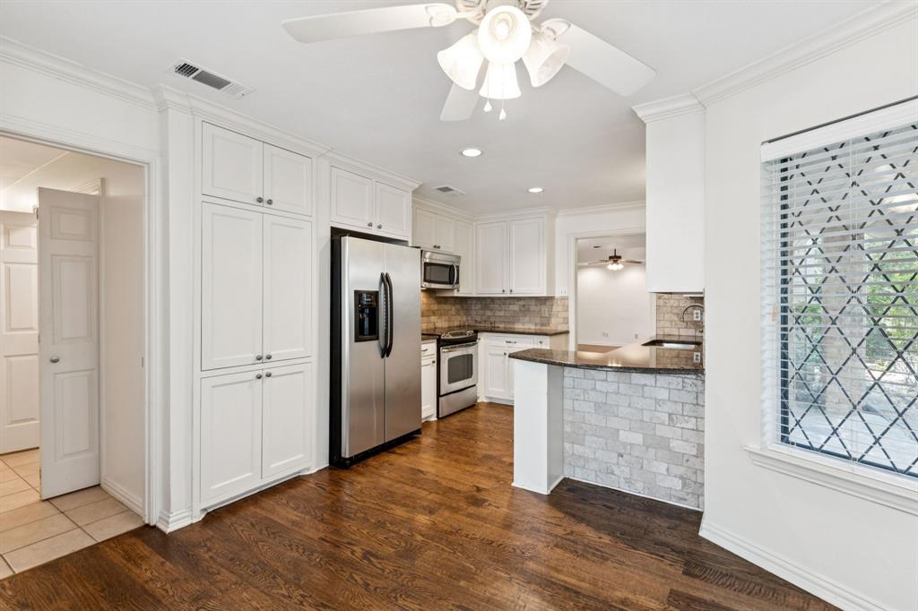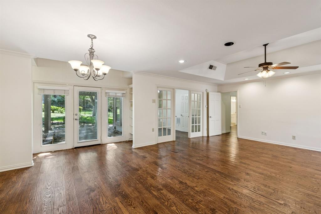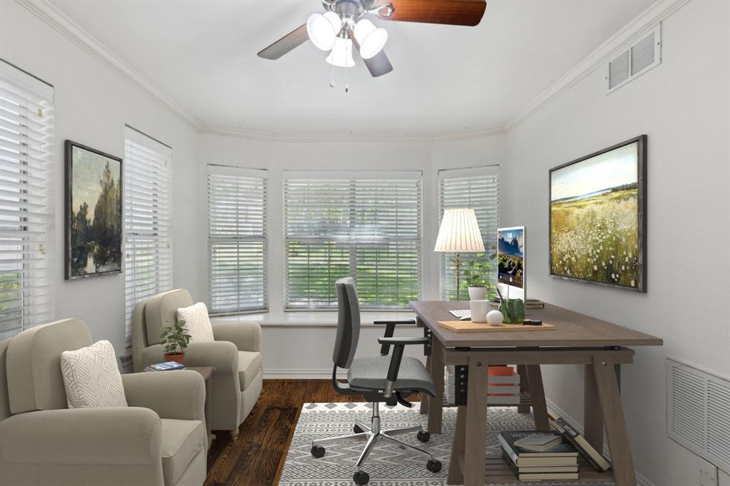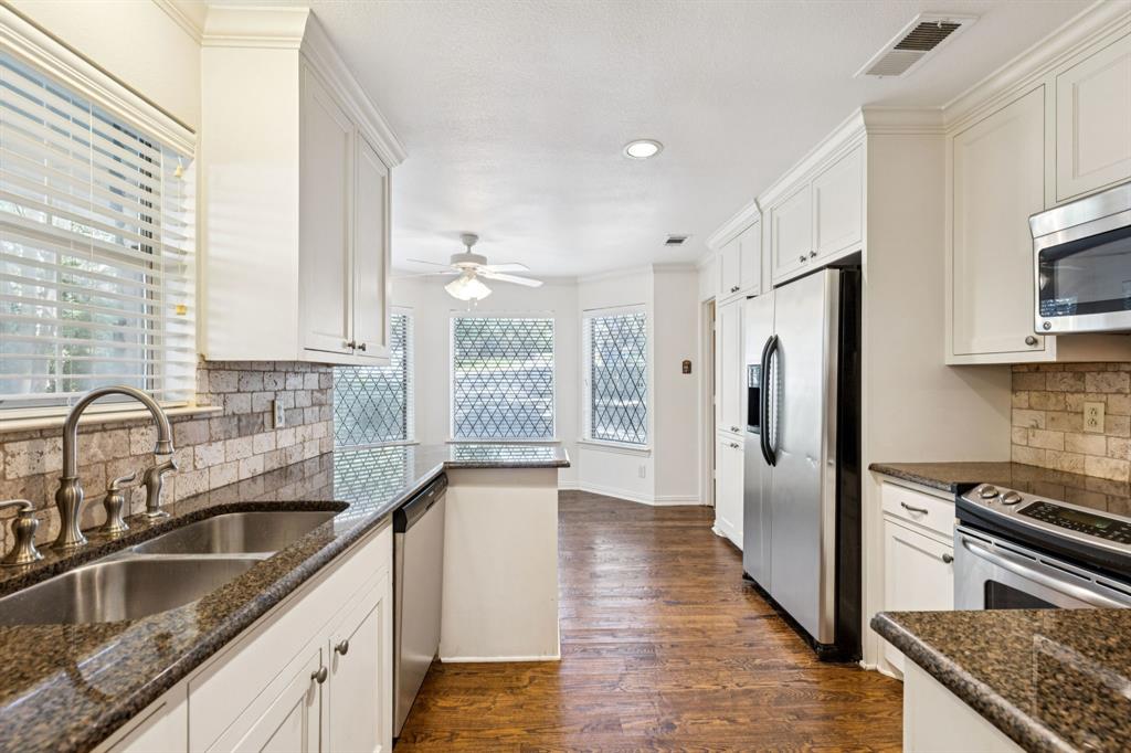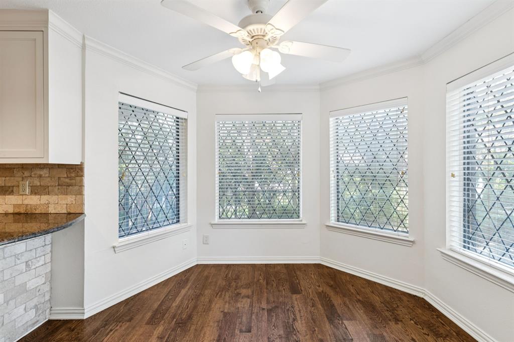 Nestled at the end of a peaceful cul-de-sac in the serene, gated waterfront community of Chandlers Landing on the banks of Lake Ray Hubbard, this rare one-level home offers the perfect balance of comfort and tranquility. Featuring 2 spacious bedrooms, 2 bathrooms, and a separate study, this property is ideal for those seeking a private, low-maintenance lifestyle with a touch of luxury. Step inside to discover gleaming hardwood floors throughout and a freshly painted interior that exudes warmth and style. The updated kitchen boasts beautiful granite countertops, stainless steel appliances, and a cozy breakfast nook, making it the heart of the home. The primary bathroom has been thoughtfully upgraded with a modern, walk-in shower for added convenience and elegance. The large, private yard invites you to relax or entertain while surrounded by nature, providing the ultimate peaceful retreat. A two-car attached garage adds extra convenience and storage space. Located in the desirable Chandlers Landing community, this home offers access to an array of resort-style amenities including: on-site HOA management; 24-hour security patrol; 4 tranquil ponds (catch-and-release); 2 community pools; 9 tennis courts; playgrounds; basketball court; vibrant community events; walking trails; on-site restaurant, bar, and community center; and direct access to the Chandlers Landing Marina for boating and waterfront activities.