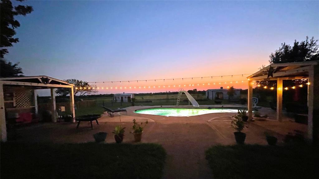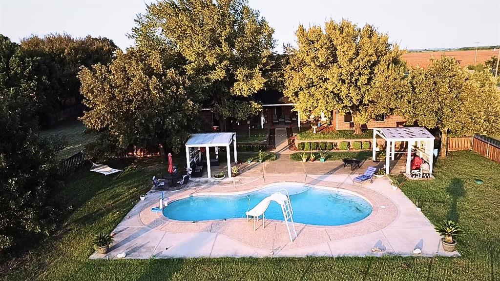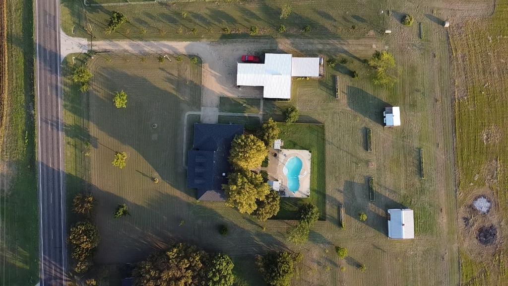 Experience the perfect blend of country charm and modern luxury in this beautifully updated 5-bedroom, 2.5-bath farmhouse set on 19 serene acres. Inside, you’ll find an open-concept living area designed for everyday ease, along with a private dining room thoughtfully created for warmth and congenial gatherings. The kitchen features granite countertops and stylish finishes, seamlessly connecting to the main living spaces, ideal for entertaining or unwinding at home. The expansive primary suite offers a luxurious sanctuary, while the rest of the home reflects a high standard of quality and care throughout. Step outside to a sparkling pool shaded by mature trees, and take in the beauty of your very own fruit-producing orchard and established garden, perfect for seasonal harvests and homestead living. Outbuildings include a huge utility workshop, barn, chicken shed, and a secure storm shelter. With 17 acres under Ag exemption, this property offers both lifestyle and value. Whether you're dreaming of a family estate, hobby farm, or peaceful escape, this one-of-a-kind property offers space, serenity, and timeless style.