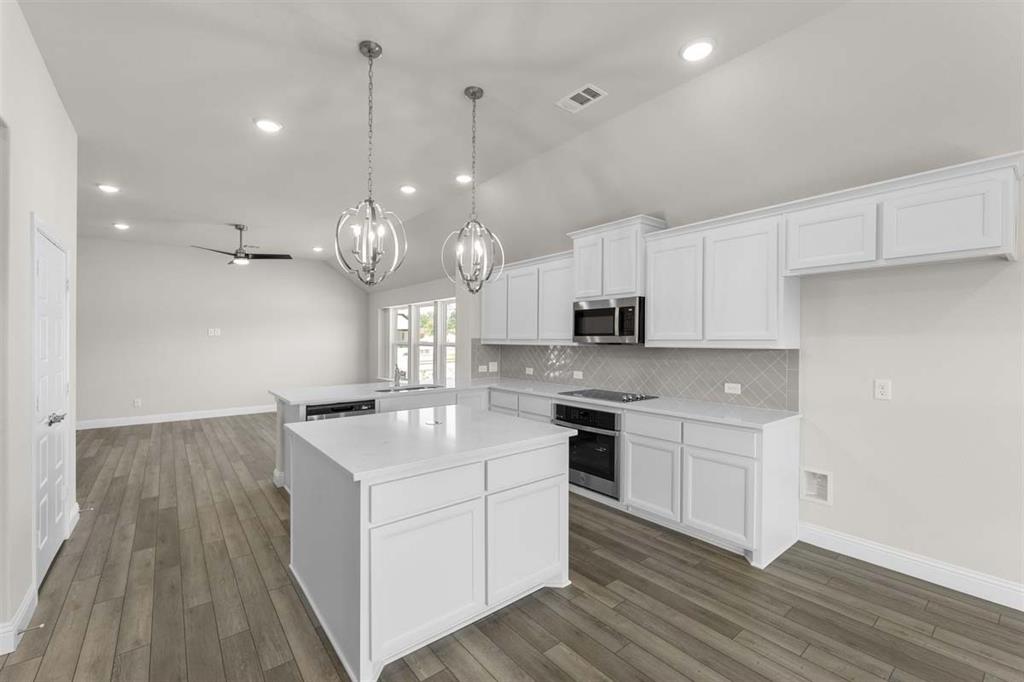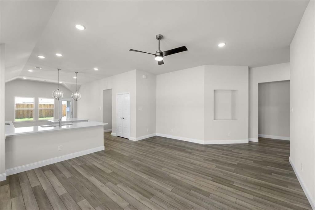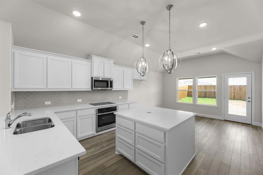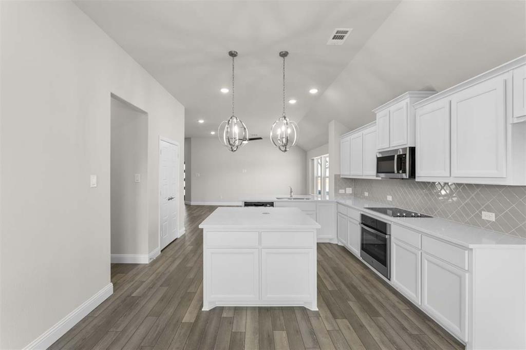 MLS# 21060274 - Built by Pacesetter Homes - Nov 2025 completion! ~ This single-story home in Elevon offers a smart layout with 3 bedrooms, 2 baths, and a private study tucked near the front entry. The open-concept family room connects easily to the kitchen and dining area, creating a bright and welcoming space for everyday living. The kitchen features white cabinetry, a 30-inch cooktop, GE stainless steel appliances, a tile backsplash, and an added island with pendant lights. Storage is thoughtfully designed with a pull-out trash can drawer and plenty of cabinet space. Luxury vinyl plank flooring runs through the main areas, giving the home a clean and durable finish. The primary suite is set at the back of the home for added privacy and includes dual vanities, a glass-enclosed tile shower, a walk-in closet, and a cozy window seat that's perfect for relaxing. The secondary bedrooms are located near the front and share a full bath, while the private study offers flexibility for remote work or a quiet retreat. Just off the dining area, the covered patio provides a spot to enjoy fresh air. And with the future Elevon amenity center within walking distance, you'll have convenient access to planned community features like pools, trails, and parks. Your Pacesetter Home comes equipped with a suite of smart features designed to enhance everyday living.-Ring Video Doorbell-Brillant Smart Home System to control lighting and music-Honeywell Smart T6 Thermostat for energy savings-WiFi-enabled Garage Door-Rainbird Wifi-capable Sprinkler System Plus, enjoy add