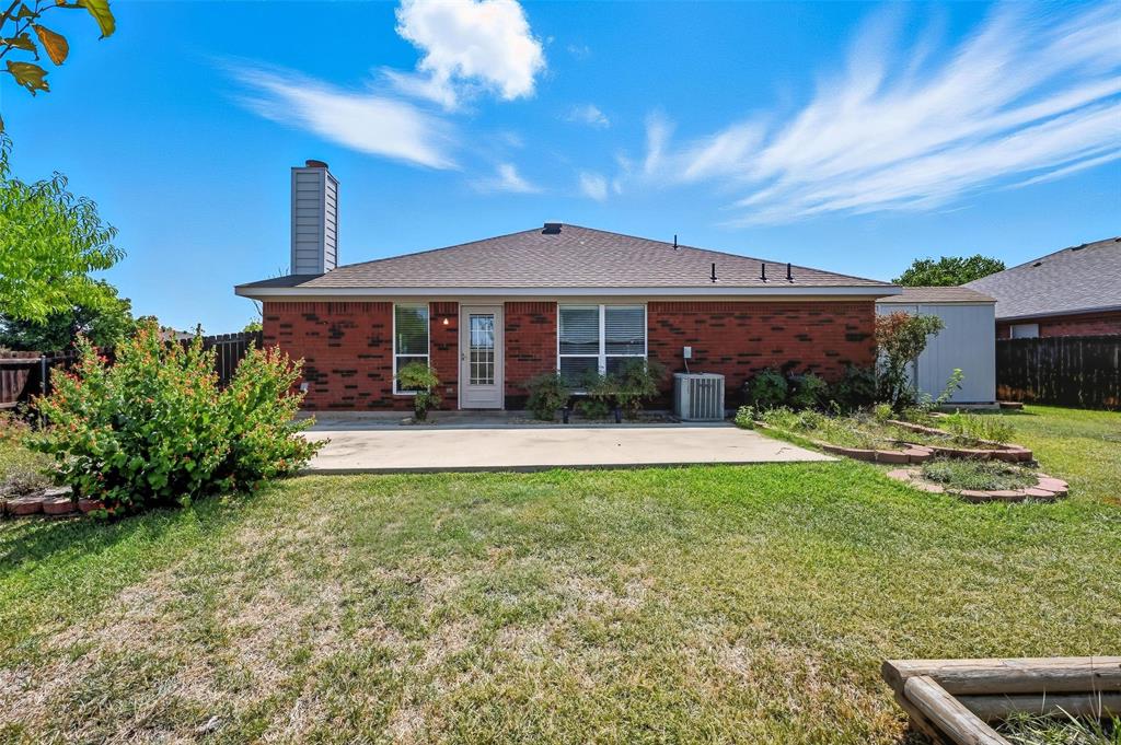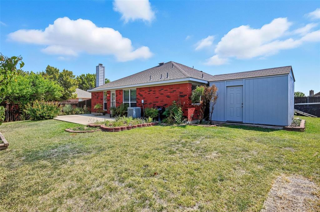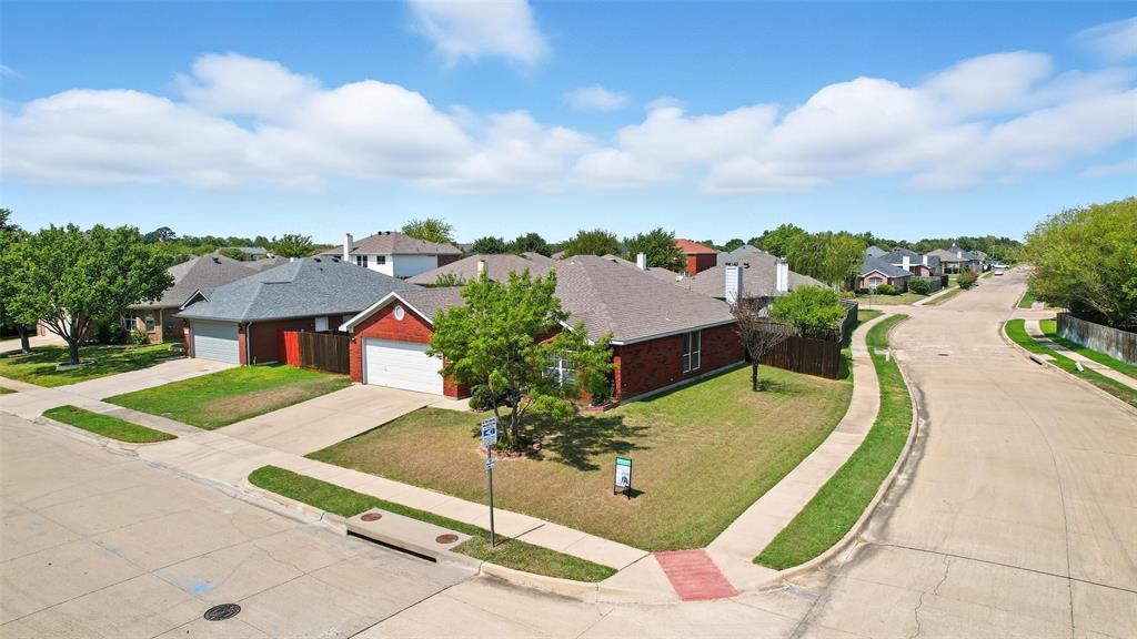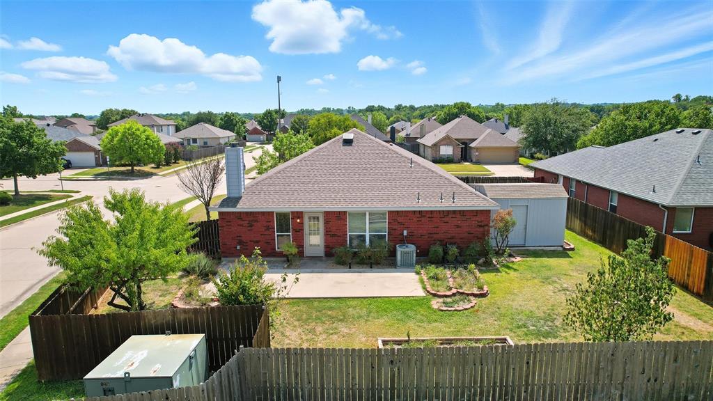 Welcome to 9045 Winding River Drive — a beautifully maintained 3-bedroom, 2-bath home that blends comfort, convenience, and character. Nestled on a spacious corner lot in the desirable Lakes of River Trails South, this property offers both inviting interiors and outdoor appeal. Inside, the open-concept design creates a bright and welcoming atmosphere with two dining areas and a seamless flow between the kitchen and living spaces — perfect for everyday living and entertaining. The private primary suite is a true retreat, featuring an ensuite bath with dual sinks, a soaking tub, an updated tiled shower, and a Horow heated commode. This home is also equipped with fiber internet connectivity throughout, ensuring fast and reliable service for work, school, or streaming. Step outside and enjoy the possibilities — from relaxing in the generous yard to making use of the large storage building, ideal as a workshop, “she shed,” or even a home gym. With nearby walking trails and access to the community lake, outdoor activities are right at your doorstep. All of this comes with the convenience of easy access to DFW Airport, downtown Fort Worth, and surrounding areas, along with the top-rated HEB ISD schools. This home offers the perfect balance of neighborhood charm and modern living, schedule your showing today and see it for yourself!
