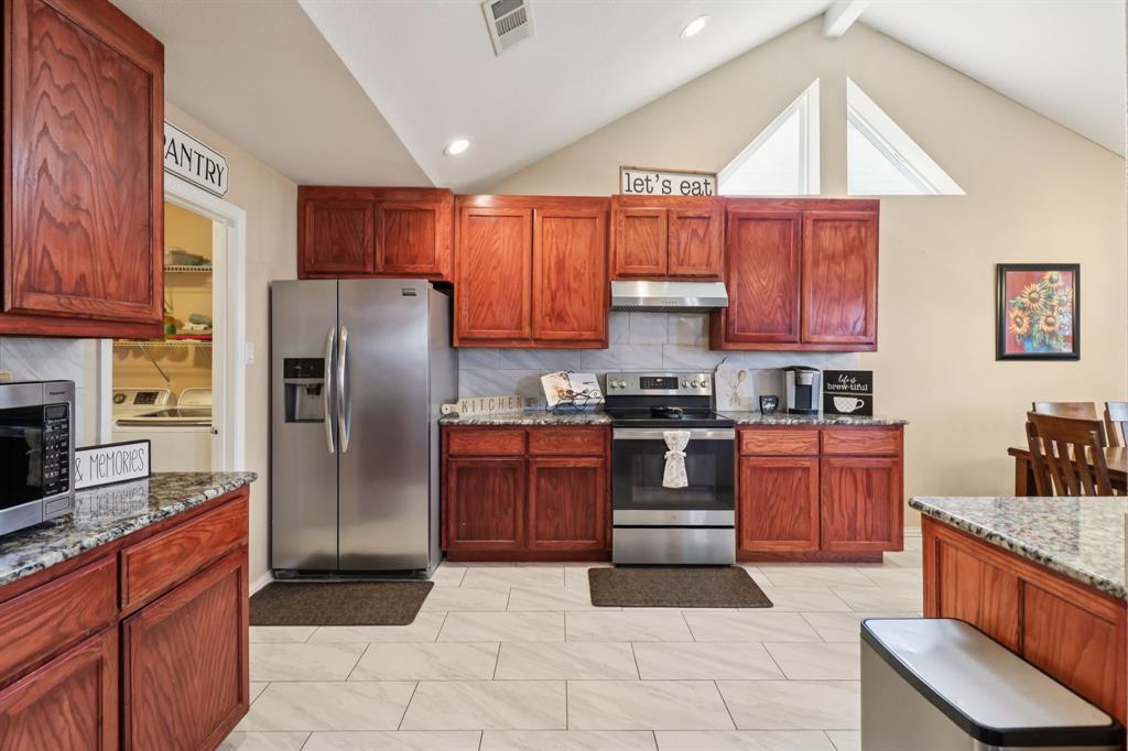 The kitchen is a standout, featuring granite countertops, stainless steel appliances, a walk-in pantry, and a spacious laundry room that keeps everything organized and easy. With 3 full bathrooms and a guest-friendly half bath downstairs, everyone has room to breathe.