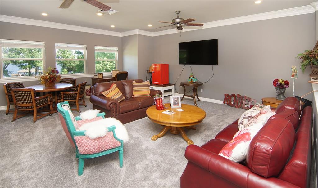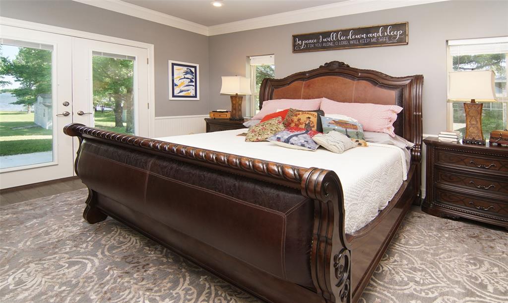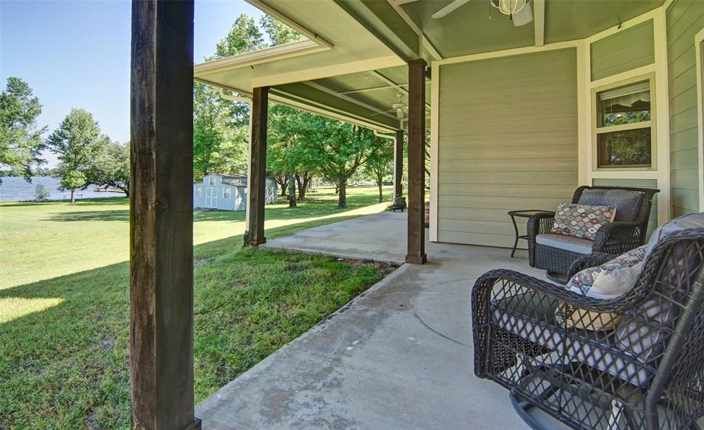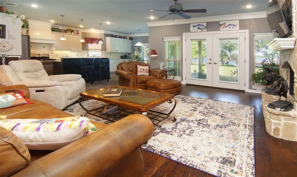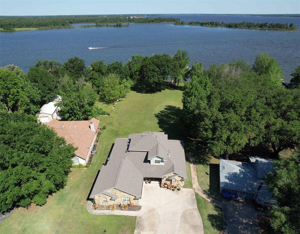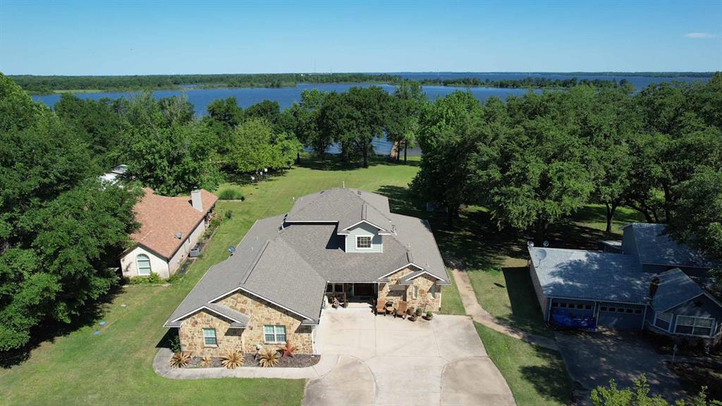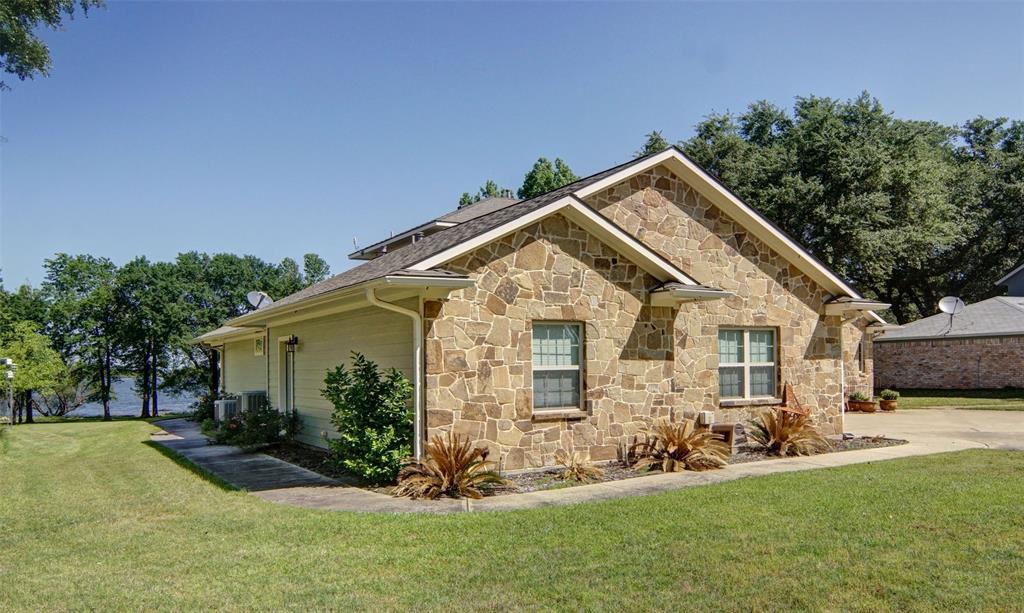 This beautifully designed waterfront home combines timeless craftsmanship with modern updates, offering a lifestyle of elegance and comfort on the south side of world-famous Lake Fork. Inside, soaring 10-foot ceilings create an immediate sense of openness, while handmade crown moldings add a refined touch to every room. The warmth of hand-scraped, stained solid wood floors flows throughout the main living areas, blending durability with character. The gourmet kitchen and baths feature upscale cabinetry and striking granite tile floors, blending beauty with functionality. The primary bath is highlighted by a spacious tiled shower, providing a spa-like retreat. Expansive windows frame breathtaking lake views from the kitchen, living room, and master suite, offering a tranquil backdrop for both everyday living and entertaining. Upstairs, the large great room provides remarkable flexibility with new carpet (2023), a full bath, and dual closets—perfect for guests, hobbies, or a private retreat. Recent updates include fresh interior paint in the den, kitchen, hall, and bedrooms, enhancing the home with a crisp, modern look. Outdoors, enjoy peace of mind with an organic pest control misting system and appreciate the lush surroundings. The property’s waterfront is exceptional, offering 7’ water depth at the boat slip and 8’ at the fishing pier, ideal for both boating and casting for trophy bass. Additional highlights include new windows and doors in theliving area, a small utility room, and the convenience of many furnishings conveying with an acceptable offer. This is a rare chance to own a home that blends classic detail, thoughtful updates, and unmatched lake access…all at an exceptional value. Run, don’t walk—this one won’t last long!
