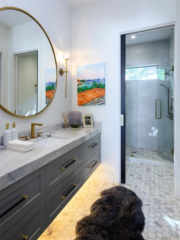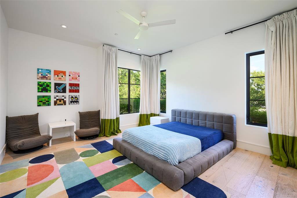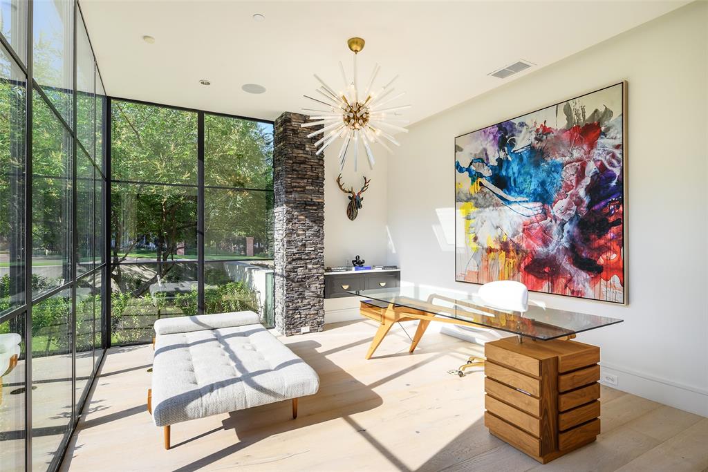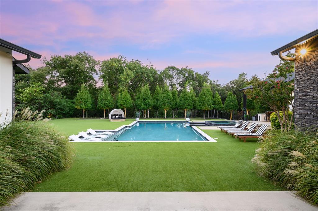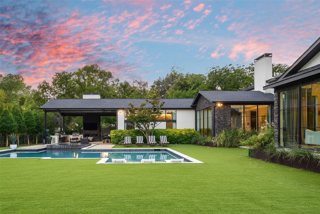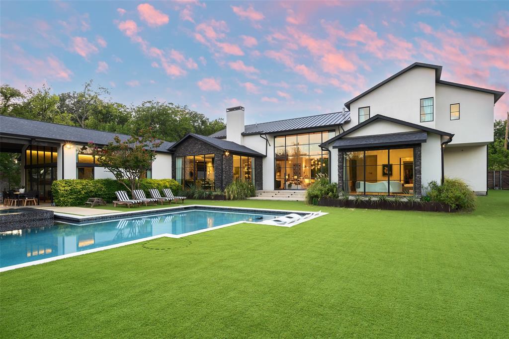 Nestled on over 1.33 acres of lush, private greenery, this stunning home is a one-of-a-kind retreat in the heart of Dallas. Designed by acclaimed firm M-Gray Architecture in 2019, this architectural masterpiece blends timeless elegance with cutting-edge design. Spanning more than 7,750 square feet, the home offers 6 bedrooms and 6.5 bathrooms, each thoughtfully designed with comfort and sophistication. Expansive glass walls and custom Mondrian-style windows flood the interiors with natural light, offering views of mature trees, manicured landscaping, and a serene creekside setting. The open-concept floor flows effortlessly from a dramatic great room to formal living and dining area into a chefs kitchen outfitted with premium stainless-steel appliances, custom cabinetry, quartzite countertops, and a waterfall-edge island. Additional features include a wet bar, chilled wine room, butler’s pantry, and a mudroom. The first level anchored by a primary suite with direct access to the resort-style pool. The spa-inspired primary bathroom boasts a soaking tub, walk-in shower, dual vanities, abundant natural light, and an expansive walk-in closet. Additional main-level highlights include multiple secondary bedrooms, dedicated office, spacious entertainment room, and an oversized three-car garage. Upstairs, en-suite bedrooms are accompanied by a second living area. Outdoor amenities equally impressive: resort-style pool and spa, covered cabana, firepit, full outdoor kitchen, a sport and pickleball court ideal for both entertaining and relaxation in your private oasis. Equipped with smart home technology for lighting, security, and automation, this home seamlessly integrates modern convenience with luxurious living. Surrounded by Dallas’ most prestigious private schools, and ideally located just minutes from major highways, DFW and Love Field airports, and premier shopping and dining, this estate offers the perfect blend of privacy, accessibility, and sophistication.