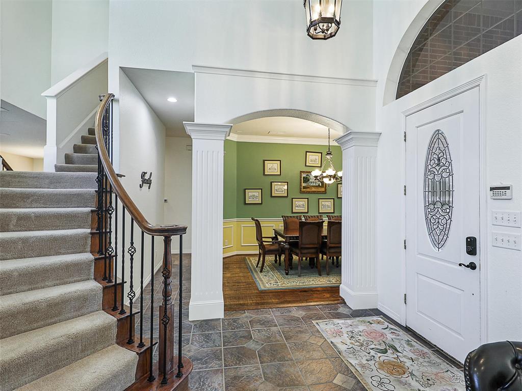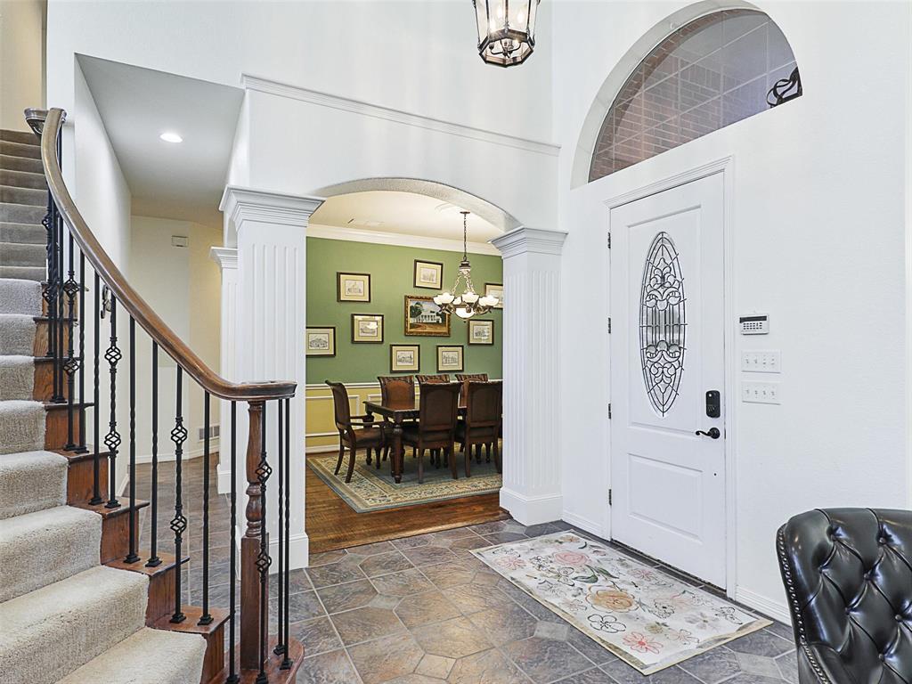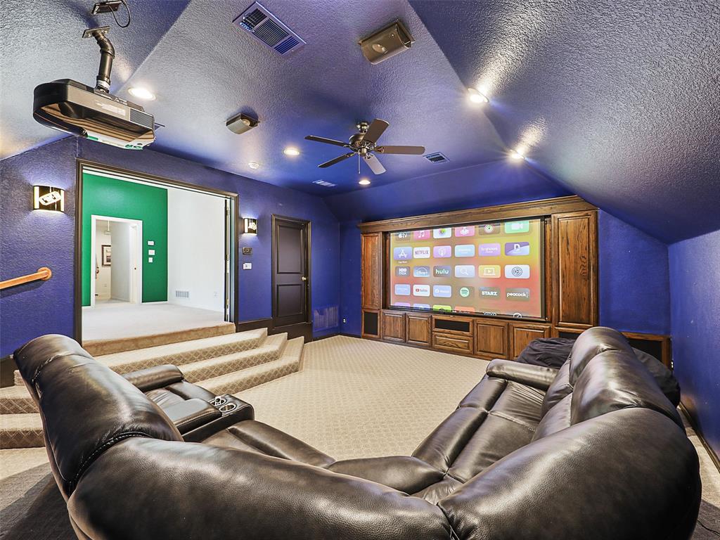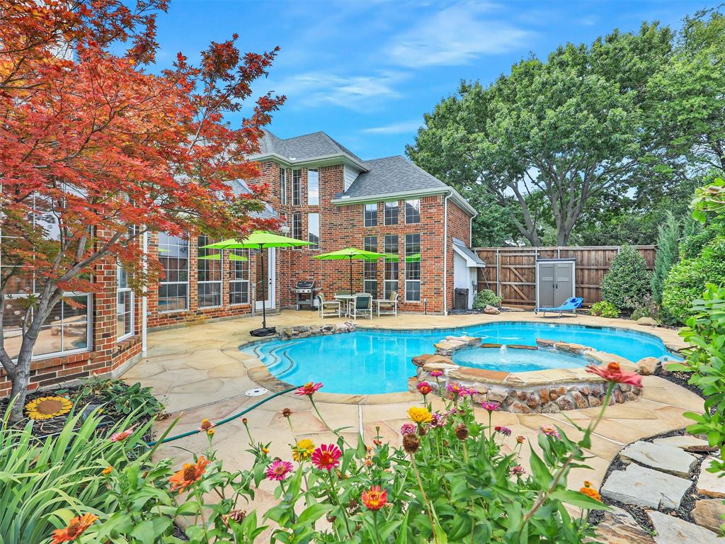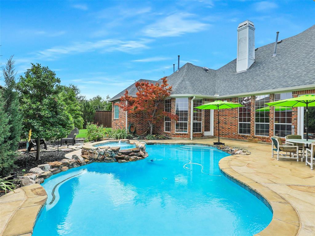 Elegant Retreat in the Exclusive Guarded Gated Community of Starwood. Nestled within the prestigious Starwood community, this stunning home combines timeless elegance with modern comfort. A dramatic front entry with soaring 16-foot ceilings and a curved staircase welcomes you, setting the stage for the spacious and open interior that unfolds within. Hand-scraped hardwood floors flow through the main living areas, connecting spaces designed for both grand entertaining and comfortable daily life. The heart of the home is a beautifully integrated open-concept area where the gourmet island kitchen, family room, and dining space flow together seamlessly. For more formal occasions, the front living room offers a sophisticated setting with a gas fireplace, ideal for a grand piano and boasting lovely views of the pool. This home is an entertainer’s dream, featuring integrated surround sound speakers in the family room, dining room, game room, media room, and on the outdoor patio. Escape to the serene primary suite, a true sanctuary with a vaulted ceiling, a quiet sitting area, and private access to the backyard oasis. The beautifully updated master bathroom feels like a luxury spa, featuring a modern soaker tub, a spacious walk-in shower, extended dual vanities, and a huge walk-in closet. Upstairs offers incredible flexibility with a versatile game room and an awesome media room, fully equipped with a built-in screen, projector, and speakers. Your private backyard awaits, where a sparkling heated pool and spa are surrounded by a lush landscape and trees, offering exceptional privacy and tranquility. Located just moments from The Star in Frisco and surrounded by Starwood’s walking trails, green spaces, and mature trees, this exceptional home offers the perfect blend of luxury, comfort, and convenience.