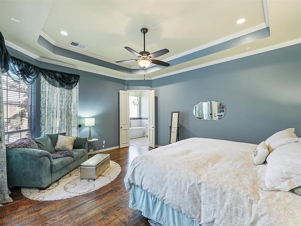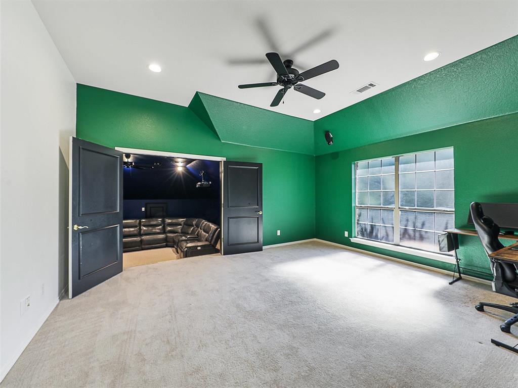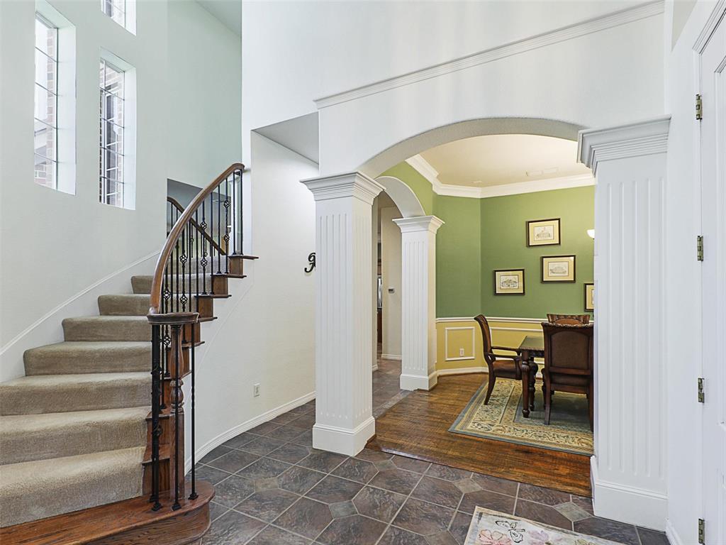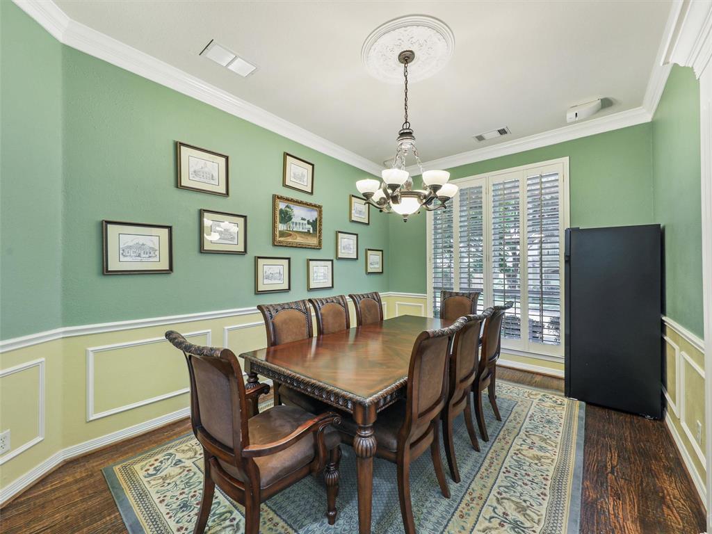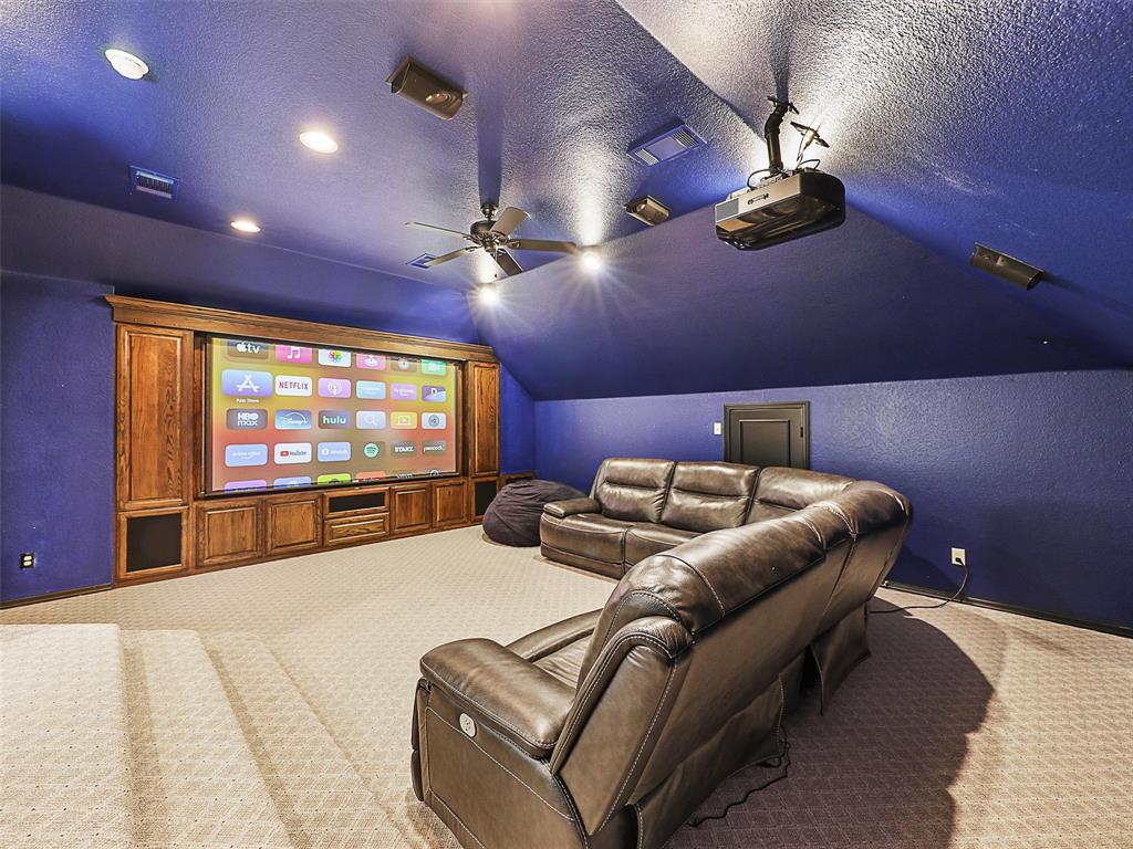 Elegant Retreat in the Exclusive Guarded Gated Community of Starwood. Nestled within the prestigious Starwood community, this stunning home combines timeless elegance with modern comfort. A dramatic front entry with soaring 16-foot ceilings and a curved staircase welcomes you, setting the stage for the spacious and open interior that unfolds within. Hand-scraped hardwood floors flow through the main living areas, connecting spaces designed for both grand entertaining and comfortable daily life. The heart of the home is a beautifully integrated open-concept area where the gourmet island kitchen, family room, and dining space flow together seamlessly. For more formal occasions, the front living room offers a sophisticated setting with a gas fireplace, ideal for a grand piano and boasting lovely views of the pool. This home is an entertainer’s dream, featuring integrated surround sound speakers in the family room, dining room, game room, media room, and on the outdoor patio. Escape to the serene primary suite, a true sanctuary with a vaulted ceiling, a quiet sitting area, and private access to the backyard oasis. The beautifully updated master bathroom feels like a luxury spa, featuring a modern soaker tub, a spacious walk-in shower, extended dual vanities, and a huge walk-in closet. Upstairs offers incredible flexibility with a versatile game room and an awesome media room, fully equipped with a built-in screen, projector, and speakers. Your private backyard awaits, where a sparkling heated pool and spa are surrounded by a lush landscape and trees, offering exceptional privacy and tranquility. Located just moments from The Star in Frisco and surrounded by Starwood’s walking trails, green spaces, and mature trees, this exceptional home offers the perfect blend of luxury, comfort, and convenience.