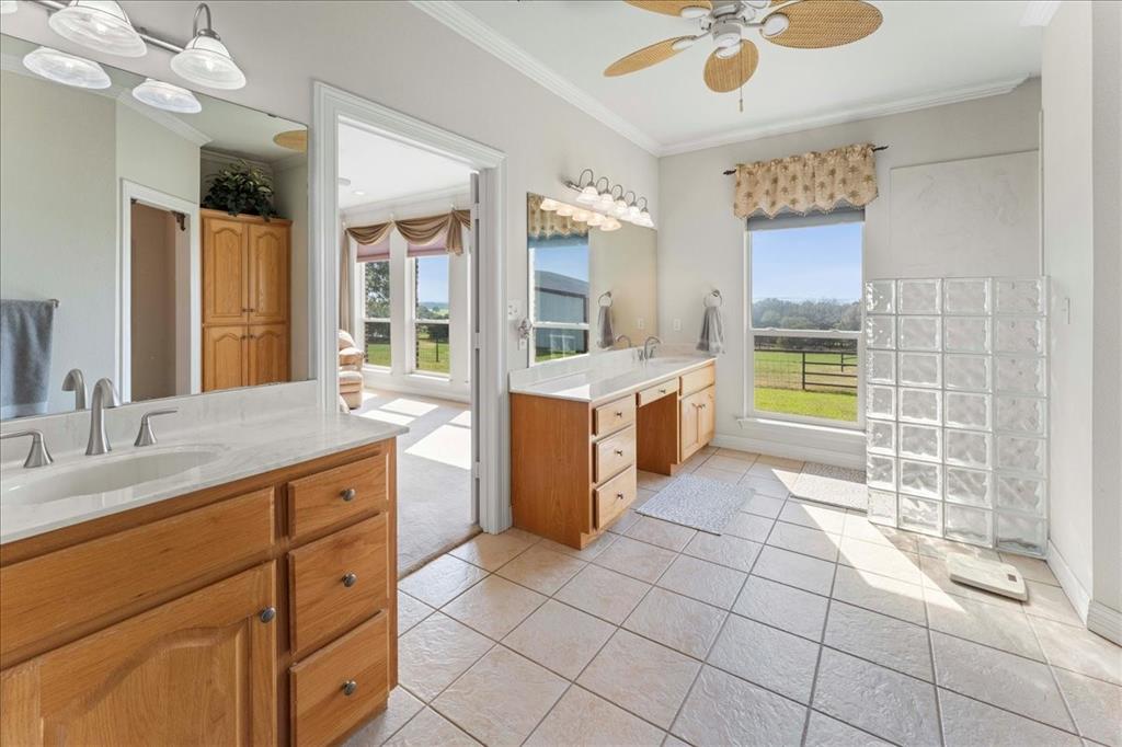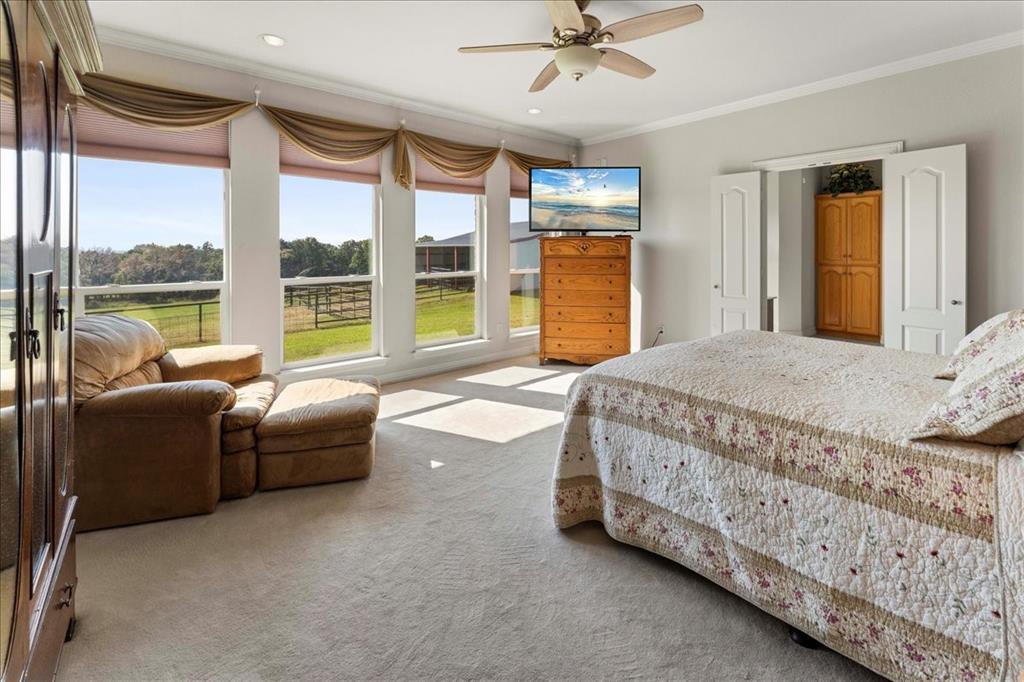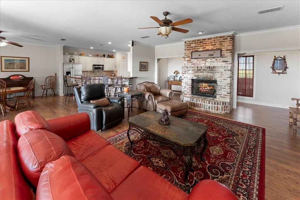Experience serene country living on this stunning 17-acre estate. This property blends rustic charm with modern comfort, offering plenty of room to roam both indoors and out. Step inside to a spacious living area anchored by a beautiful brick fireplace and warm wood flooring, perfect for relaxing evenings. Large windows flood the rooms with natural light and offer sweeping views of the property. The primary suite is a true retreat, featuring a cozy sitting area with panoramic windows overlooking the grounds. An en-suite bathroom boasts dual vanities, abundant storage, and a walk-in shower. The secondary bedrooms are split from the primary and generously sized. Outside is the real show stopper with stunning views every way you look. The front portion of the property is cleared and currently used for hay. The back portion is heavily treed and cleared from most of the heavy underbrush. There are two small ponds on the property, one in the back pasture and one in the heavily treed area. The barn provides plenty of covered storage, a stable area for livestock and a small apartment. This is one of those properties you just have to see in person to fully appreciate. When I say pictures don't do it justice, I mean it!