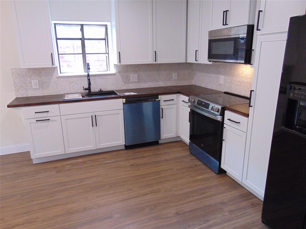 Honey Stop The Car!!!! This completely renovated charmer is awesome!! All new updates inside and out 09-2025!!! Three bedrooms and two full bathrooms, large living area, wood burning fireplace, huge primary suite, kitchen built for the chef in you, has all been painted inside and out, textured ceilings, updated floors, with wood look vinyl all over, plush new carpet in the bedrooms. Entry way boasts a cool built in coffee bar, bar-buffet, or serving area!!The primary bath has new vanity with two sinks, tile tub, and tile separate shower, two closets, private entry-exit door to backyard. Guest bath has tile shower w-new sink and vanity, updated lighting everywhere, kitchen includes new 09-2025 dishwasher, stove, sink, refrigerator, and amazing butcher block counter tops. Backyard has large-uncovered patio and a wood deck, landscaping and shade trees in front and back yard. The garage has an insulated door and painted floor. New 2025 HVAC, water heater, and roof!!! come get it!!!!