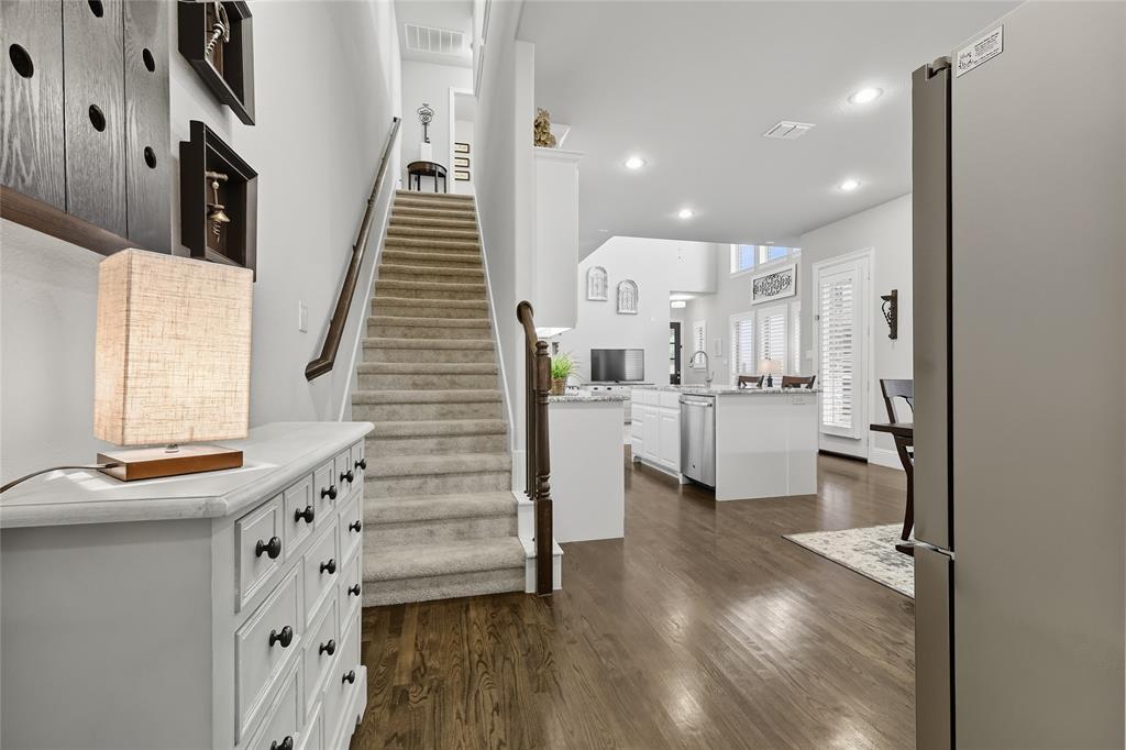 This beautifully designed 3-bedroom, 3.5-bath home offers the perfect blend of comfort, style, and low-maintenance living in one of DFW’s most desirable locations. The open floor plan is ideal for both entertaining and everyday life, featuring abundant storage throughout for added functionality. The spacious master suite is a true retreat with a luxurious ensuite bathroom and generous closet space. A downstairs bedroom adds flexibility for guests, while a private office with elegant French doors provides a quiet space to work from home. Enjoy the outdoors with a covered patio and extended deck, perfect for relaxing or entertaining. A custom living wall with integrated drip irrigation adds natural beauty and a serene atmosphere to your outdoor space. Conveniently located just minutes from DFW Airport, Lake Grapevine, close to boutiques, an ice cream shop, yoga studio, movie theatre, restaurants, bars, and shopping. This home combines thoughtful design, modern amenities, and a truly unbeatable location.