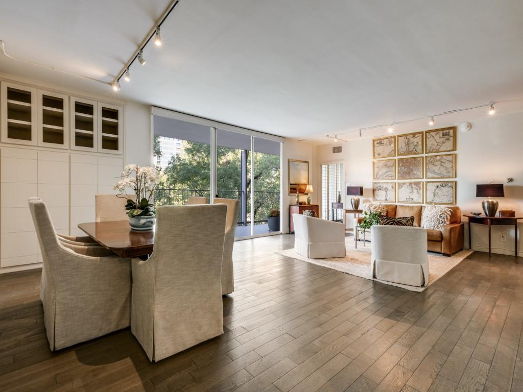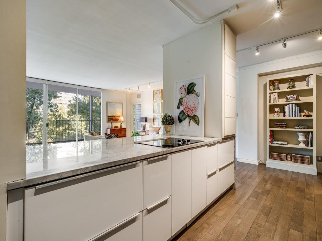 Rarely available, this beautifully renovated 2BR, 2BA residence is conveniently located on the sought-after first residential floor of the iconic Park Towers. With nearly 1800 sq. ft. of open living, floor-to-ceiling windows flood the space with natural light while the treetop balcony creates a serene private retreat above Turtle Creek Blvd. Wide plantation shutters in the bedrooms add timeless style and privacy, while the sleek galley kitchen showcases an oversized quartzite island, custom European cabinetry, soft-touch drawers, and premium Bosch appliances. Designer cabinetry throughout the residence provides ample storage with elegance. Exclusive building amenities elevate everyday living, including a resort-style pool, well equipped fitness center, library, mail and laundry facilities, formal and informal dining areas with catering kitchen, and four guest suites for visiting friends and family. Two secure garage parking spaces and a storage unit are included. With direct access to the Katy Trail and just steps from Dallas’s best dining, shopping, and nightlife, this Park Towers residence offers the ultimate blend of convenience, sophistication, and style.