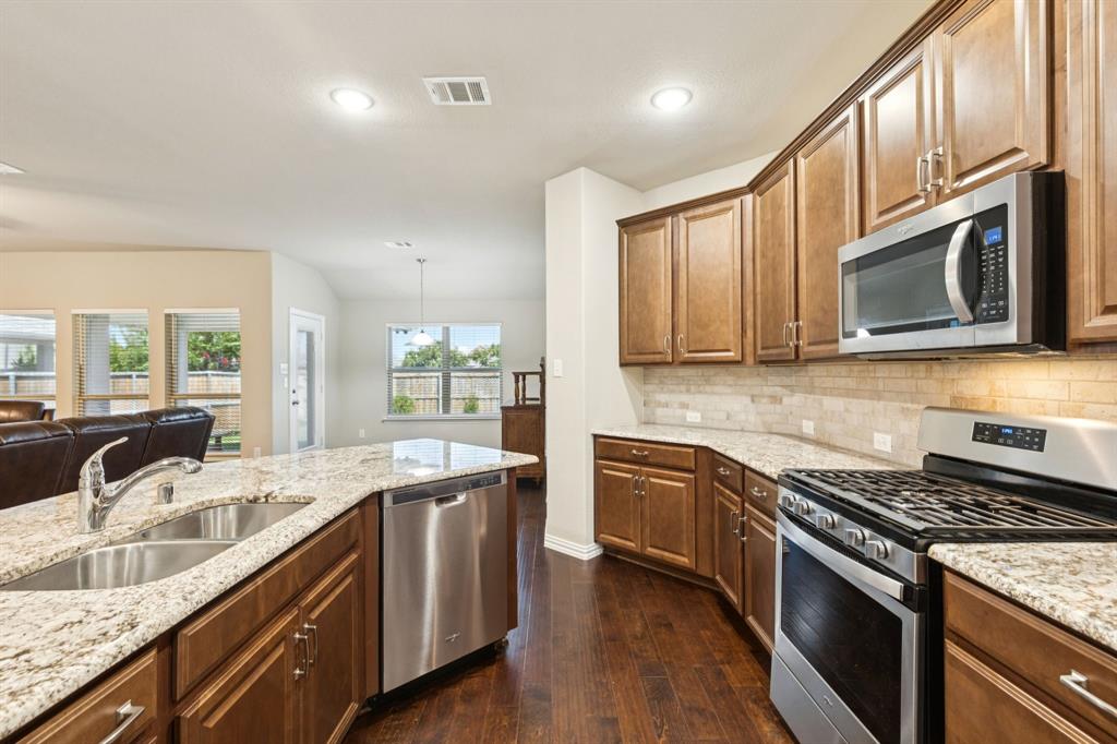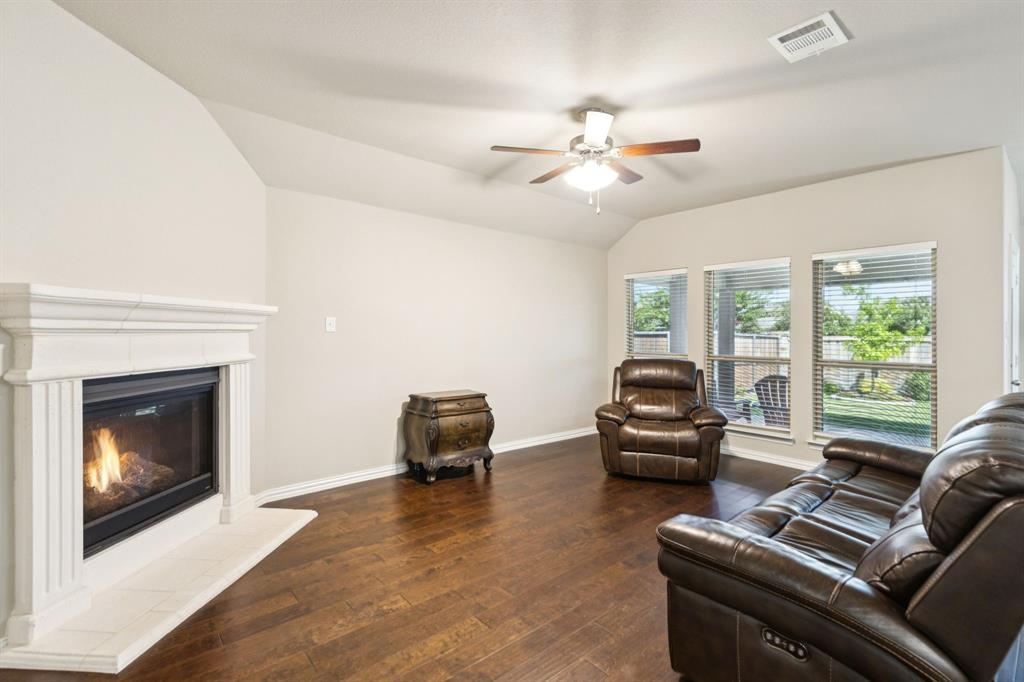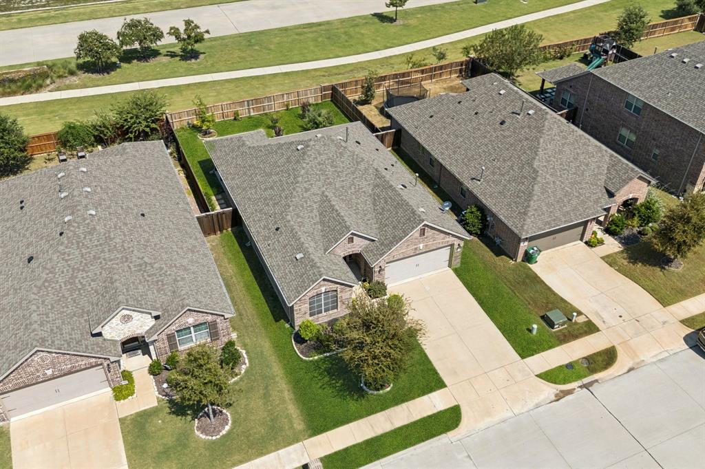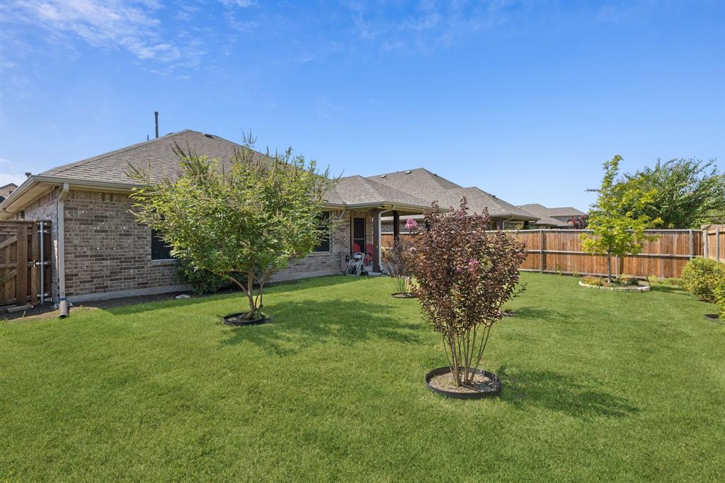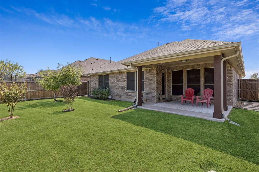 Wonderful one owner home on a premium lot in Devonshire! This home has a beautiful manicured lawn in the front and back yard. Inside you will find 3 bedrooms and 2 full bathrooms. The primary suite is at the back of the house and features a large spa-like bathroom. The secondary bedrooms are all generously sized for family and friends. The open floor plan makes the kitchen, dining and living room all flow together, making entertaining a breeze. The chef's kitchen has a 5 burner gas range, plenty of storage and a large island to prep the perfect meal. The living room features a stone fireplace with gas logs and great view of the backyard. You will enjoy your time outside on the extended covered back patio with sun shade. Several upgrades are in this home; wood floors, radiant barrier, security cameras, and solar screens. This neighborhood feeds into north Forney schools. The neighborhood amenities include catch and release ponds, a pool, walking trails and playgrounds. The location is within walking distance to all the schools, three houses down from a playground and close to local dining and shopping, with easy access to HWY 80. Search address on YouTube for video.