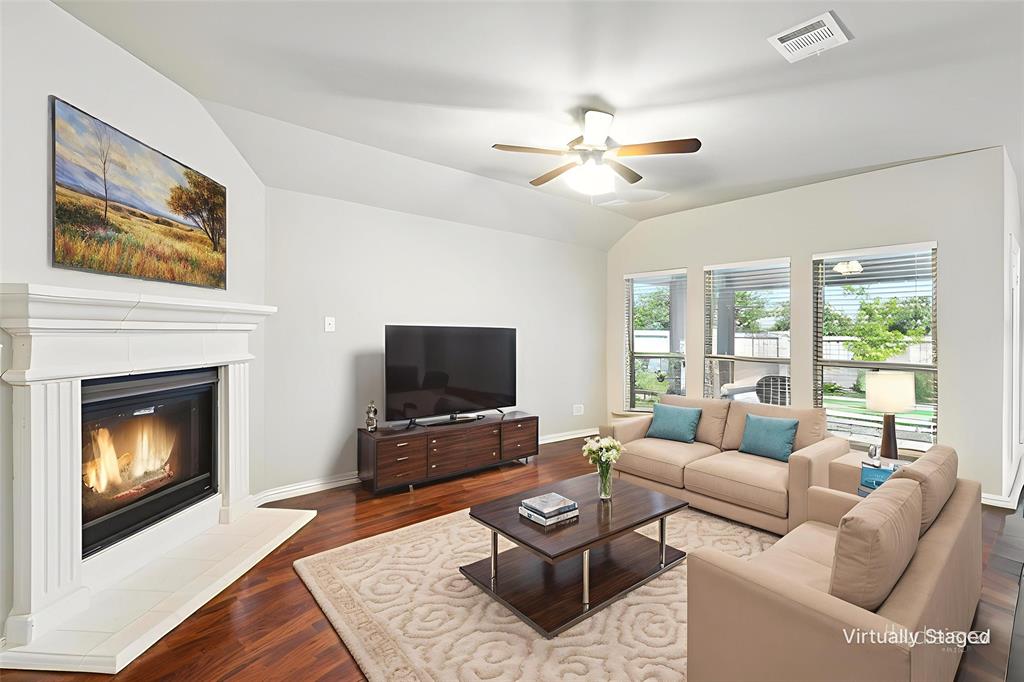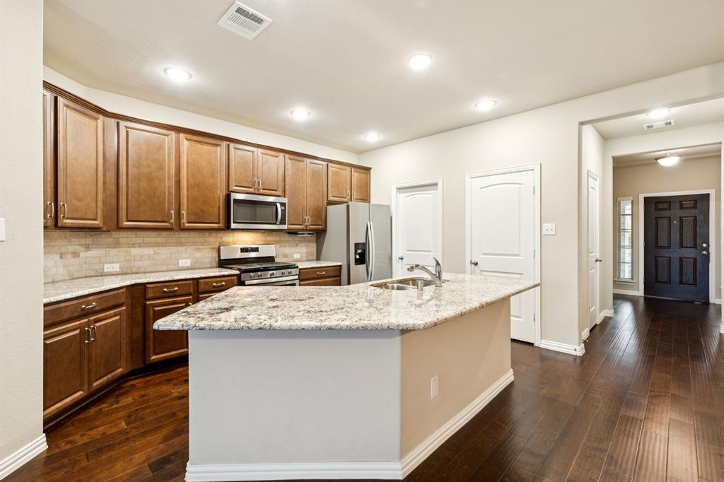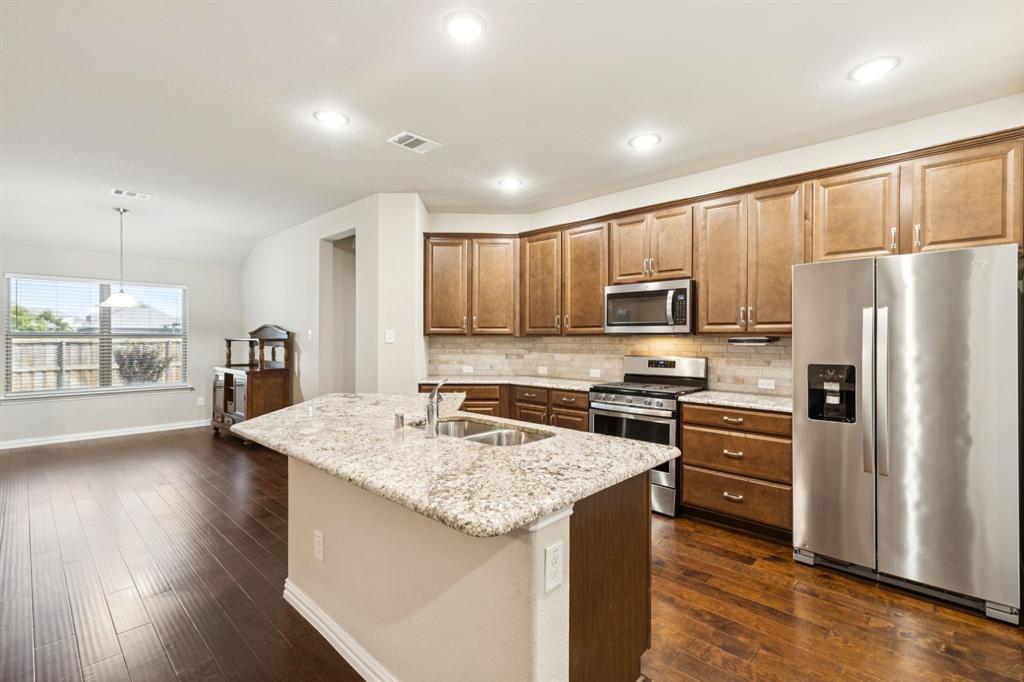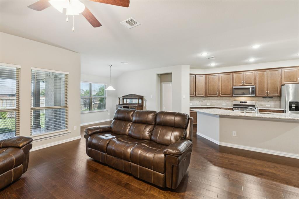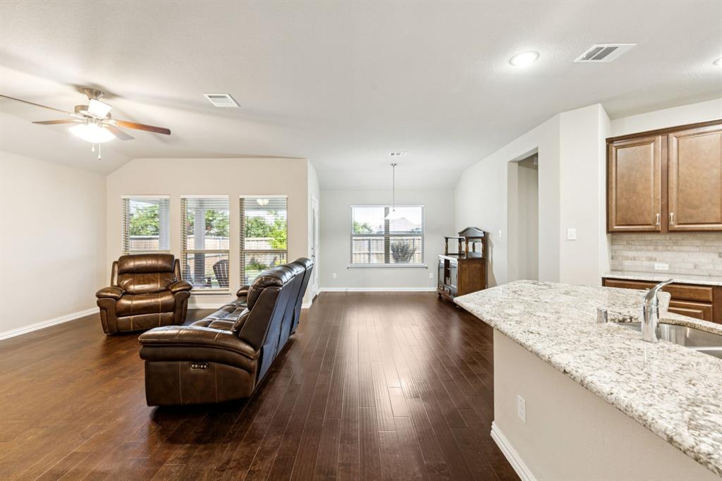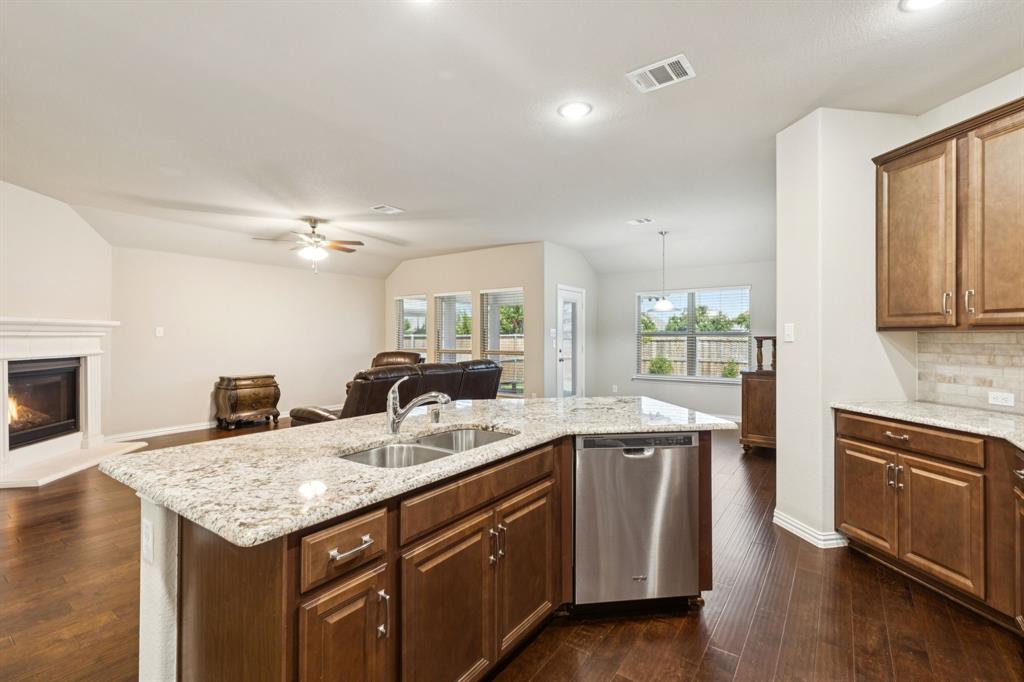 Wonderful one owner home on a premium lot in Devonshire! This home has a beautiful manicured lawn in the front and back yard. Inside you will find 3 bedrooms and 2 full bathrooms. The primary suite is at the back of the house and features a large spa-like bathroom. The secondary bedrooms are all generously sized for family and friends. The open floor plan makes the kitchen, dining and living room all flow together, making entertaining a breeze. The chef's kitchen has a 5 burner gas range, plenty of storage and a large island to prep the perfect meal. The living room features a stone fireplace with gas logs and great view of the backyard. You will enjoy your time outside on the extended covered back patio with sun shade. Several upgrades are in this home; wood floors, radiant barrier, security cameras, and solar screens. This neighborhood feeds into north Forney schools. The neighborhood amenities include catch and release ponds, a pool, walking trails and playgrounds. The location is within walking distance to all the schools, three houses down from a playground and close to local dining and shopping, with easy access to HWY 80. Search address on YouTube for video.