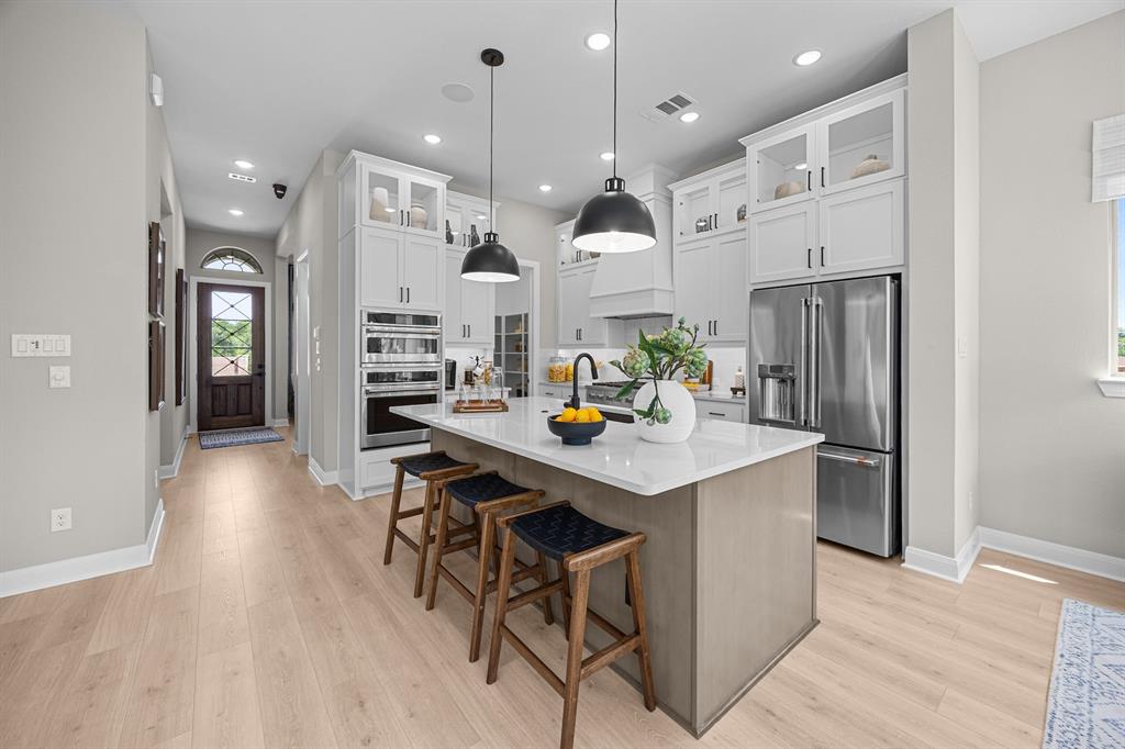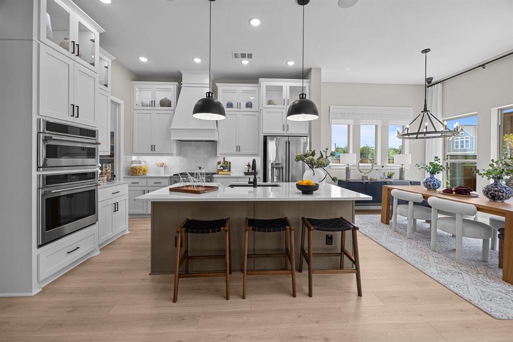 Prepare, present and enjoy your culinary masterpieces on the kitchen’s center island overlooking the open gathering spaces. Show off your style and savor the livability in the expertly crafted family and dining spaces at the heart of this home.