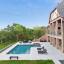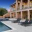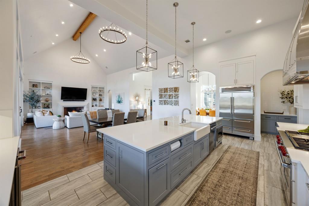 Built into the hillside, this unique home features a full level basement walk-out to the pool and spa, complete with two ensuite bedrooms, enormous entertaining space with game room, gym, wet bar, and dog grooming room. Upstairs, 20-foot beamed ceilings highlight the open-concept living area, anchored by a gourmet kitchen, dining space, and dual offices- all opening to a spacious covered veranda with a stone fireplace and outdoor kitchen, an ideal setting to relax and take in sweeping sunset views.