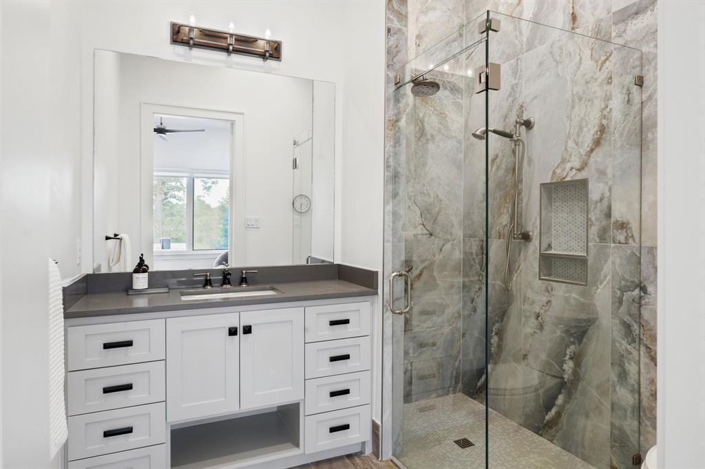 The primary suite offers a private terrace complete with a fireplace, offering direct access to the lower level outdoor backyard. Additional highlights include a large main-level ensuite guest room, a half court regulation basketball gym which can easily double as a pickleball court, Control4 home automation, oversized laundry and pantry spaces, foam insulation, Cat 5+ wiring, and a Class 4 roof. Room to expand with up to 1,600 additional sq ft. The 3-car garage currently serving as the basketball half court can easily be converted back, making for 5-car garages total. Sweeping circular drive provides ample extra parking.