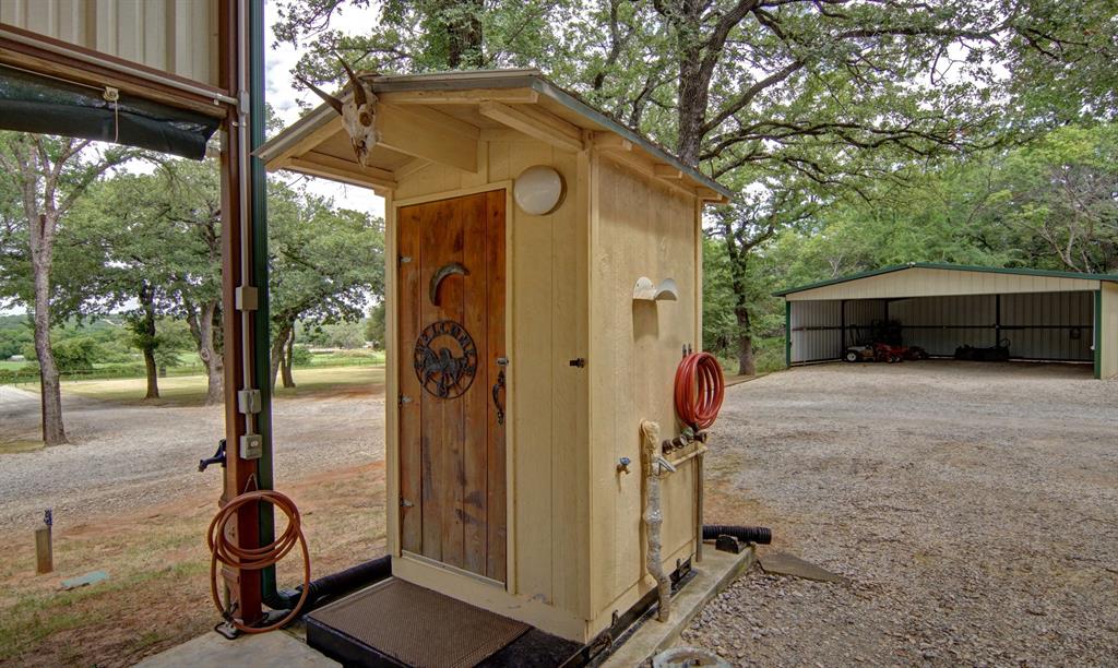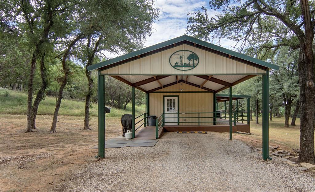 The French Retreat From the moment you turn into the drive, it's clear this property has been deeply cared for. Beautifully manicured like a private park, the roadside frontage has been thoughtfully cleared with trimmed trees and a clean, welcoming approach. At the heart of the property is a charming 1-bedroom, 1-bath cabin with a covered porch, meticulously maintained along with every other aspect of the land. Nature is left to shine through a striking rock outcropping that begins at the southwest corner and winds through the property in an S-shape, continuing all the way to the north fence line. Scattered post oaks and cedar elms, along with a few mesquites, add character throughout. On the eastern side, you'll find approximately 8–9 acres of coastal pasture, currently used for hay production to maintain the ag exemption. The property includes three solid, well-built metal buildings ideal for storing tractors, ATVs, or RVs. There are 8 dedicated 50-amp plugs, 10 frost-free spigots, and 6 RV hookups with full water, sewer, and electric connections—perfect for gatherings or extended stays. Used by the current owners as a peaceful retreat and a place to host friends and family, this property offers the perfect blend of comfort, nature, and functionality.