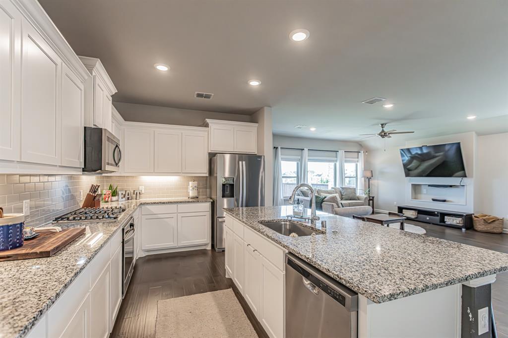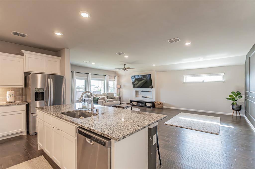 Nestled on a spacious lot in the Benbrook community, this beautifully designed home offers the lifestyle you’ve been waiting for, AND it's zoned for the new Rolling Hills Elementary! Step inside and be welcomed by fresh paint, soaring ceilings, an open-concept floor plan, and an abundance of natural light that makes every space feel warm and inviting. Keep your shoes and bags organized in the finished out mudroom right off of the garage. Make your way into the kitchen that is a true showstopper and the heart of the home—featuring quartz countertops, stainless steel appliances, an oversized island with seating, and custom cabinetry that will delight any home chef. The living room boasts panoramic windows overlooking the backyard, creating the perfect spot for family gatherings or entertaining friends. Speaking of entertainment, let your imagine run wild with the extra room. Use it as an office, a man cave, a theater room or the space where your new home business blossoms. Retreat to the primary suite, complete with dual vanities, soaking tub, and a walk-in shower. Additional bedrooms are generously sized with ample storage, offering comfort for family or guests. Outside, enjoy peaceful Texas evenings under the covered patio or host summer barbecues in the expansive backyard—plenty of room for a pool, garden, or play area.