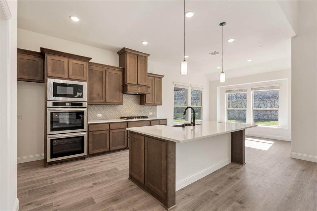 NEW! NEVER LIVED IN. READY NOW. Tucked on an expansive lot in a quiet cul-de-sac, this Bloomfield Seaberry II blends luxurious design with family-friendly function, offering 4 bedrooms, 4 full baths, a private Study, a Game Room, and a Media Room for ultimate flexibility. This stunning home on over half an acre is move-in ready and makes a lasting first impression with a rotunda-style foyer that leads to a Formal Dining Room connected by a Butler’s Pantry and a bright Family Room anchored by a sleek Tile-to-Mantel Fireplace framed by tall windows. The Deluxe Kitchen is both stylish and practical with built-in stainless steel appliances, gray cabinetry, stunning countertops, a large island for gathering, and a spacious walk-in pantry for storage, while rich laminate wood floors flow through the main living areas for a warm, cohesive look. The privately located Primary Suite offers an L-shaped dual vanity, a garden tub, a glass-enclosed shower, and an oversized walk-in closet designed for maximum organization. Upstairs, 2 secondary bedrooms each include a walk-in closet and have easy access to bathrooms, while the Game Room and Media Room add even more space for relaxing or entertaining. Thoughtful Signature Series upgrades like an 8' front door, cedar garage doors, and upgraded 5'' baseboards elevate the entire home, and the expansive lot offers endless possibilities for outdoor living, entertaining, or adding a pool. With designer finishes and room to grow, this home is a true gem—don’t miss out on this rare find with space, style, and functionality at Parks of Aledo.