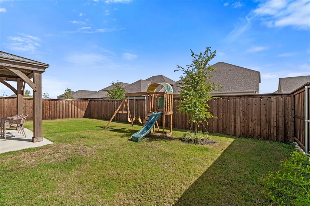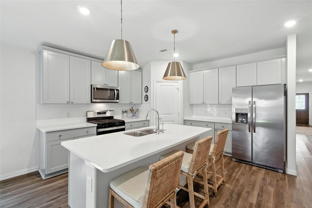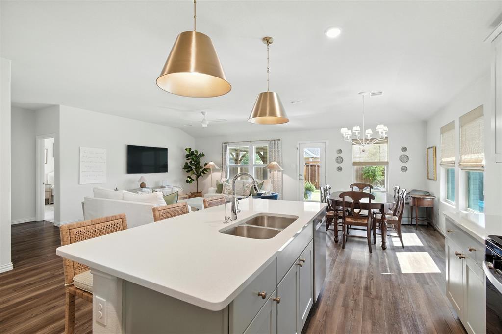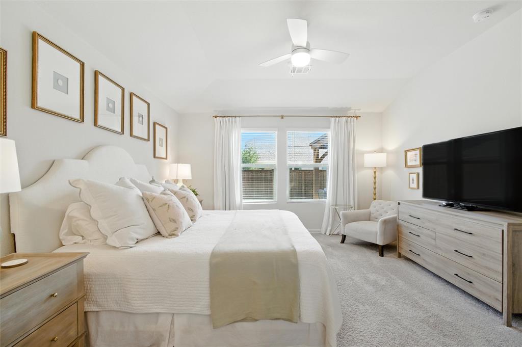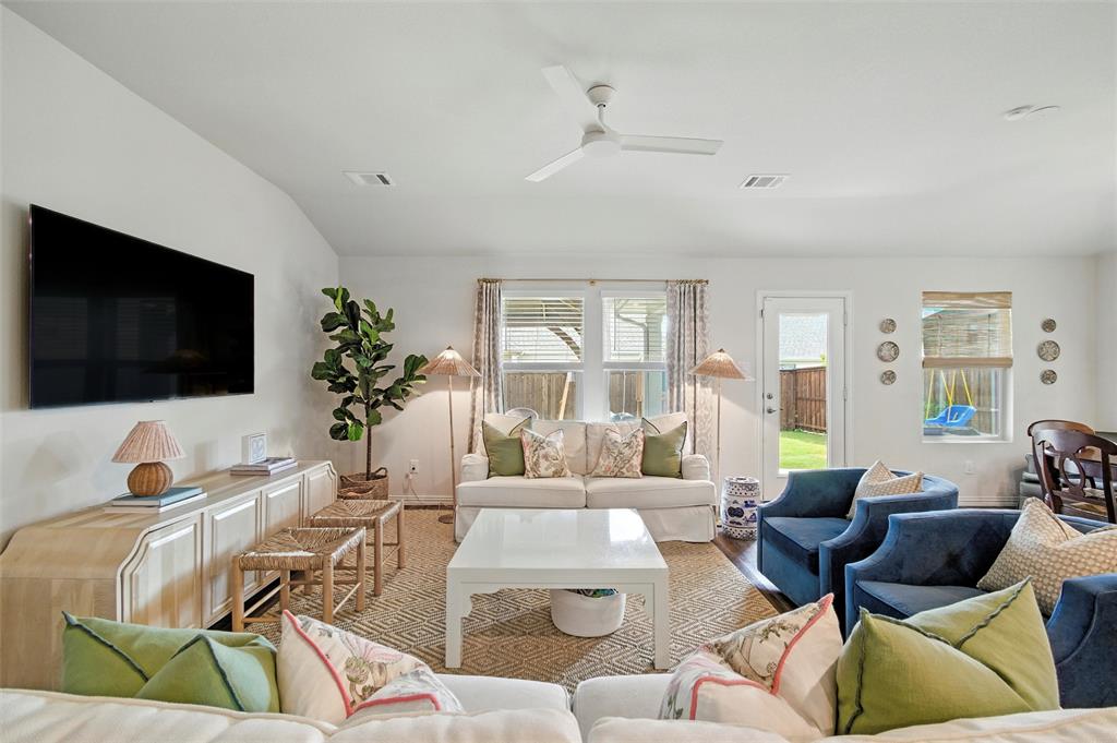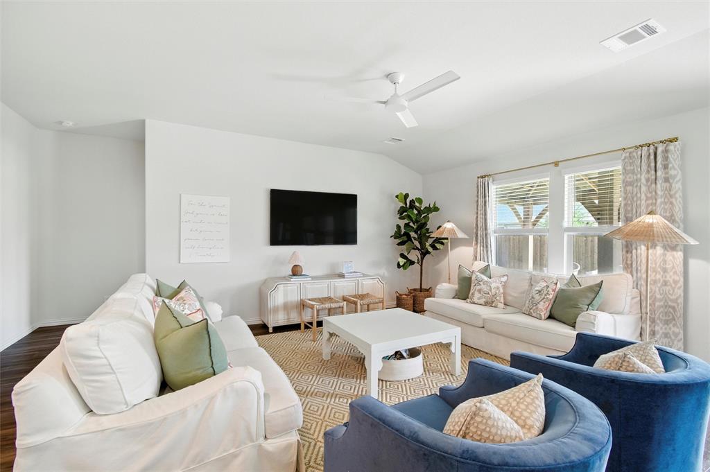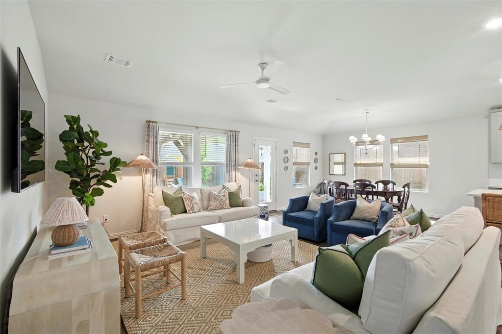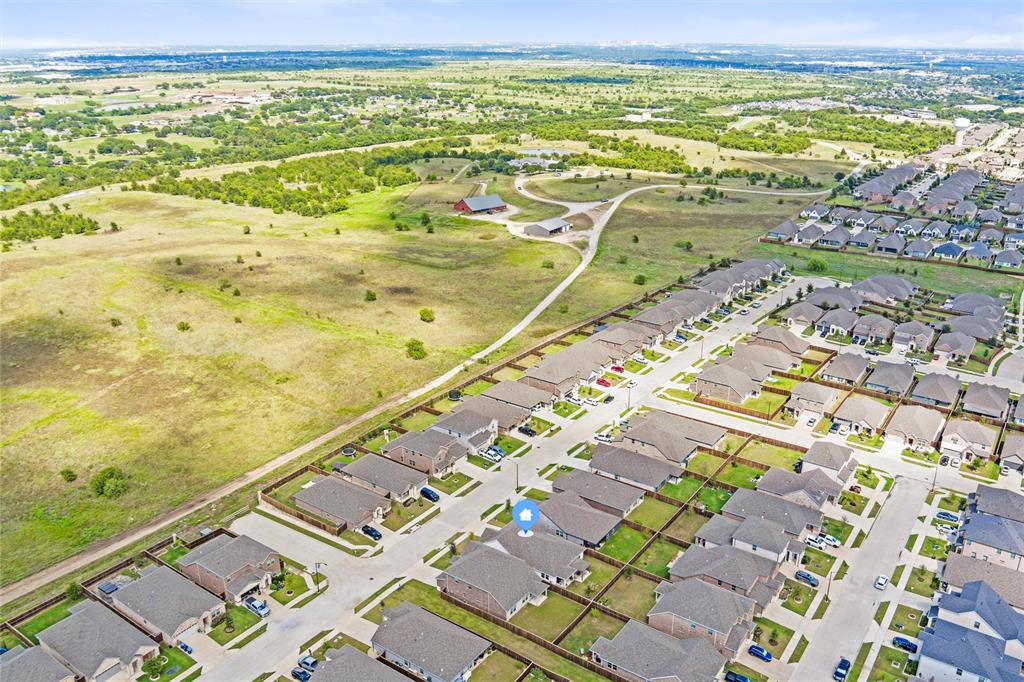 Welcome to 10621 Brookshire, a beautifully updated 4-bedroom, 3-bath home in the sought-after Ventana community of Fort Worth. Built in 2022, this single-story residence offers 2,048 sq ft of thoughtfully designed living space with stylish upgrades throughout. The freshly painted exterior sets the tone, while inside you’ll find a bright open floor plan enhanced by designer touches at every turn. The kitchen features freshly painted cabinets with updated hardware, chic pendant lighting, and an under-sink water filtration system, while the dining area boasts a new pendant with dimmer for the perfect ambiance. Both secondary bathrooms include new paint, mirrors, and hardware, with the first bath also showcasing new tile. The laundry room has been elevated with new tile flooring and added cabinetry for extra storage, while the master closet now includes custom built-in shelves. Comfort meets function in every bedroom with upgraded ceiling fans, and the living room is centered around a brand-new fan for added style and convenience. Outside, enjoy your private retreat with a newly extended patio, complete with a pergola for shade and an additional slab to neatly store trash bins. With a 2-car garage, modern finishes, and the amenities of Ventana—including community pool, walking trails, and parks—this move-in ready home offers the perfect blend of style, comfort, and convenience in one of Fort Worth’s most desirable neighborhoods.