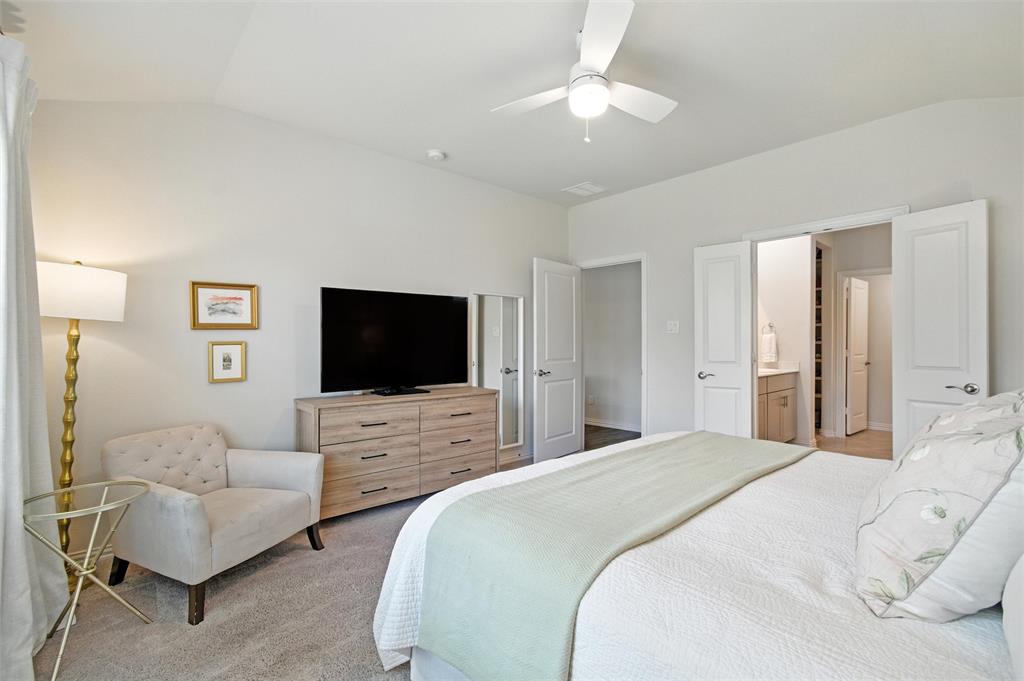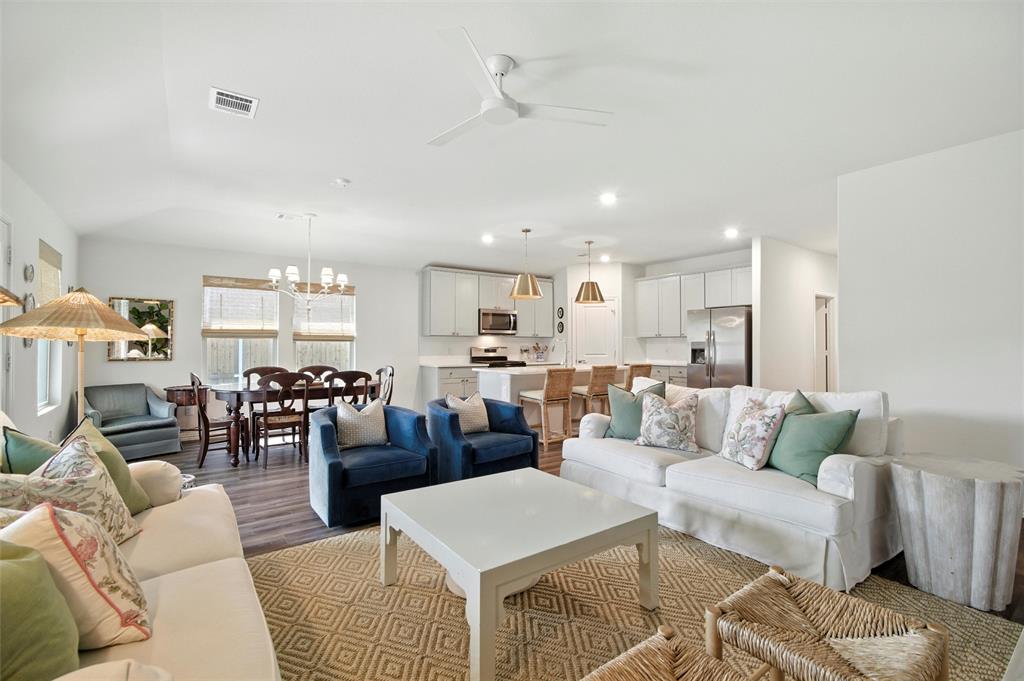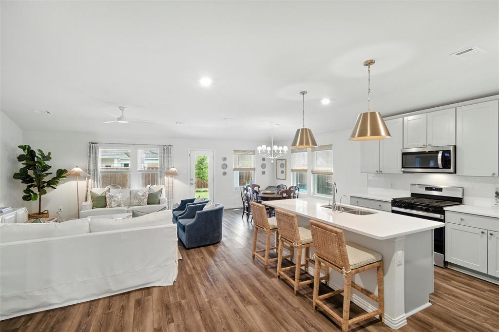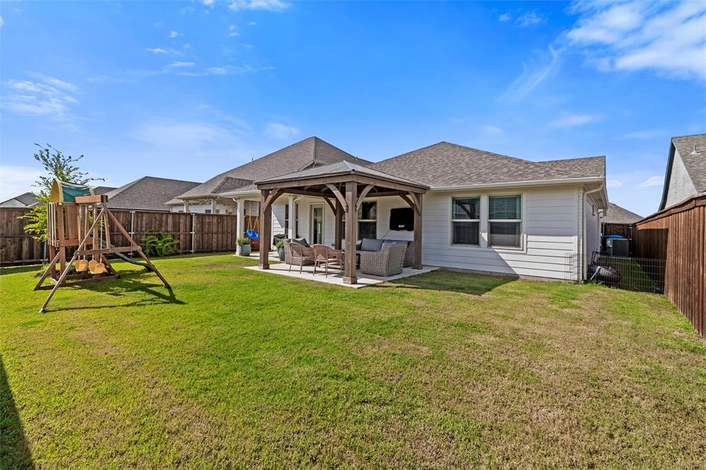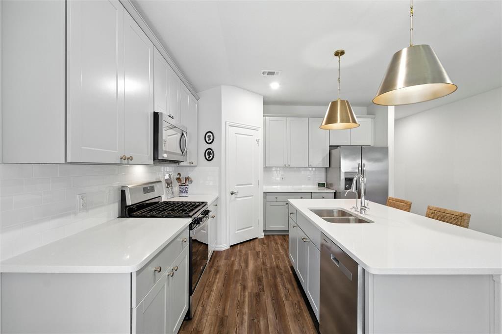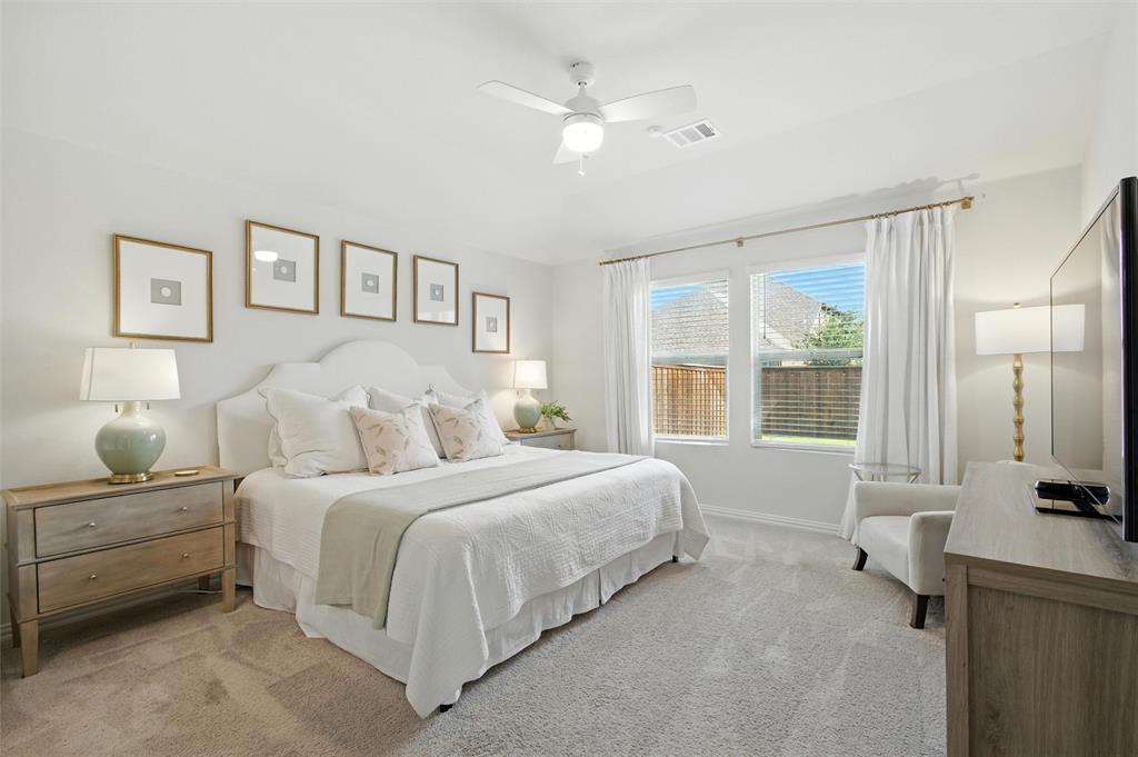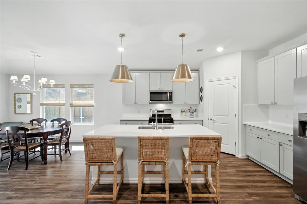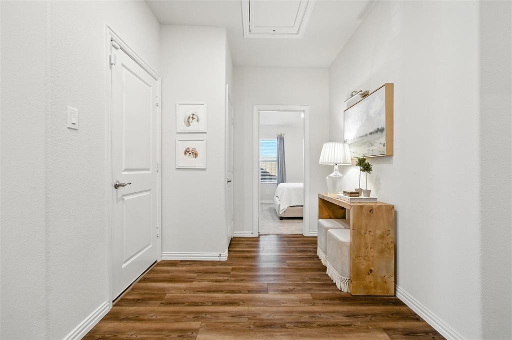 Welcome to 10621 Brookshire, a beautifully updated 4-bedroom, 3-bath home in the sought-after Ventana community of Fort Worth. Built in 2022, this single-story residence offers 2,048 sq ft of thoughtfully designed living space with stylish upgrades throughout. The freshly painted exterior sets the tone, while inside you’ll find a bright open floor plan enhanced by designer touches at every turn. The kitchen features freshly painted cabinets with updated hardware, chic pendant lighting, and an under-sink water filtration system, while the dining area boasts a new pendant with dimmer for the perfect ambiance. Both secondary bathrooms include new paint, mirrors, and hardware, with the first bath also showcasing new tile. The laundry room has been elevated with new tile flooring and added cabinetry for extra storage, while the master closet now includes custom built-in shelves. Comfort meets function in every bedroom with upgraded ceiling fans, and the living room is centered around a brand-new fan for added style and convenience. Outside, enjoy your private retreat with a newly extended patio, complete with a pergola for shade and an additional slab to neatly store trash bins. With a 2-car garage, modern finishes, and the amenities of Ventana—including community pool, walking trails, and parks—this move-in ready home offers the perfect blend of style, comfort, and convenience in one of Fort Worth’s most desirable neighborhoods.