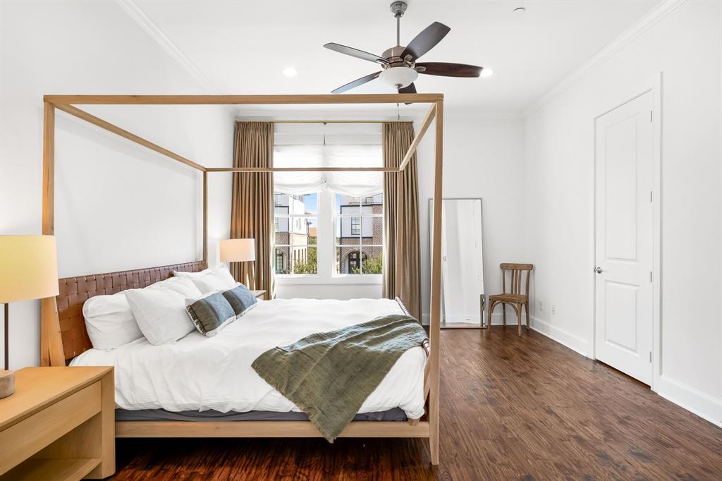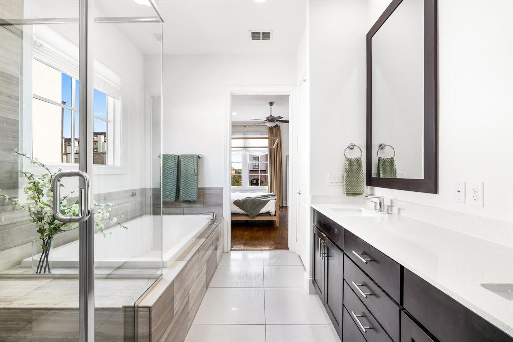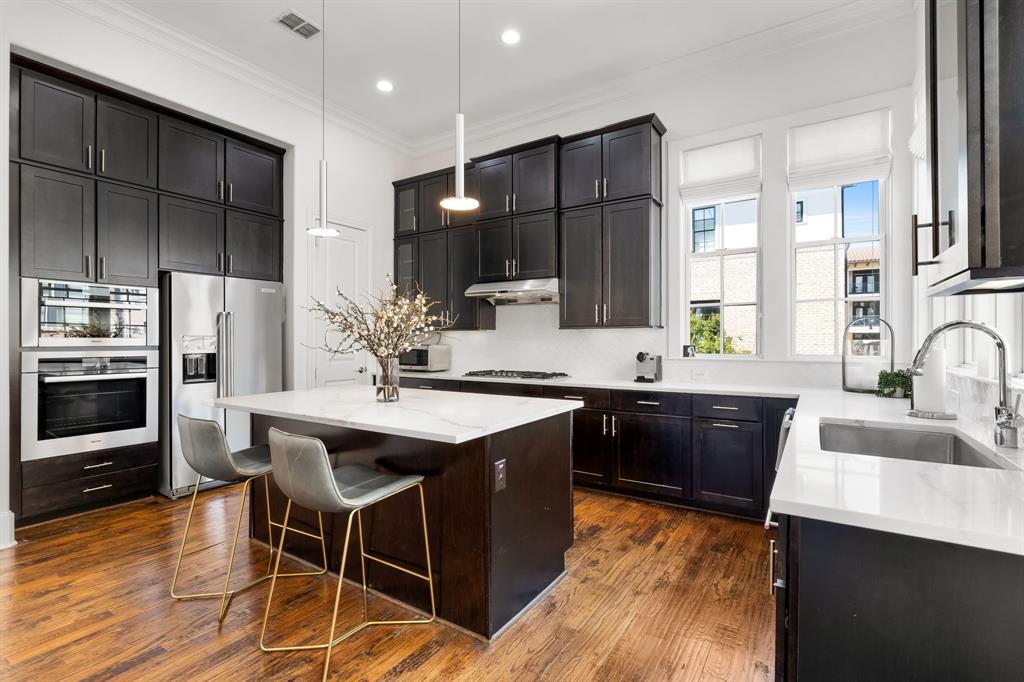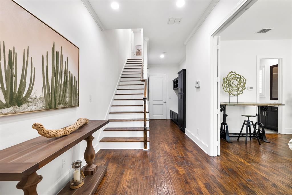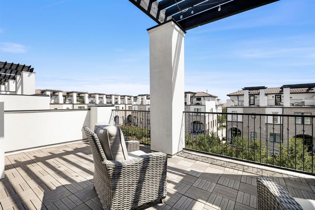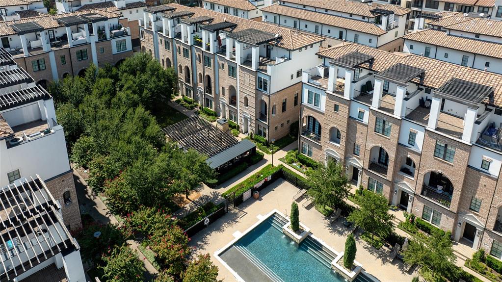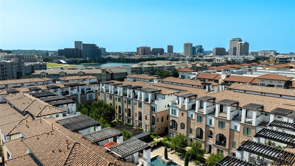 One of the largest end-unit floorplans at Townhomes at Lake Carolyn, this stunning home offers a rare combination of space, style, and location in the heart of the Las Colinas Urban Center. This 4-story townhome features hand-scraped red oak hardwood floors throughout, soaring 12-ft ceilings on the main level, and over $20,000 in custom window treatments. The open-concept living area is anchored by a gourmet kitchen with two built-in Miele steam ovens, Bosch gas cooktop, Zephyr vent hood, quartz countertops with herringbone backsplash, soft-close cabinetry, walk-in pantry, and a large island with seating. The luxurious primary suite includes a quartz double vanity, an oversized soaking tub, walk-in shower with natural stone surrounds, and a huge walk-in closet with built-ins and pull-downs. Additional upgrades include dimmable lighting, repainted interiors, and a two-car garage with epoxy floors, custom shelving, and WiFi-enabled opener. Outdoor living is easy with a covered balcony plus a spacious rooftop terrace with stained pergola. Energy-efficient features: Lennox 16+ SEER dual-speed HVAC with 3-zone thermostat, tankless water heater, radiant barrier attic, and insulated pipes. Community amenities include lush landscaping throughout, a resort-style pool and a stunning European-inspired courtyard with grills and an outdoor fireplace. Plus enjoy close the Toyota Music Factory, Irving Water Street, the DART Rail, Lake Carolyn and Campion Trail. This home offers the best of luxury, efficiency, and urban convenience in Las Colinas.