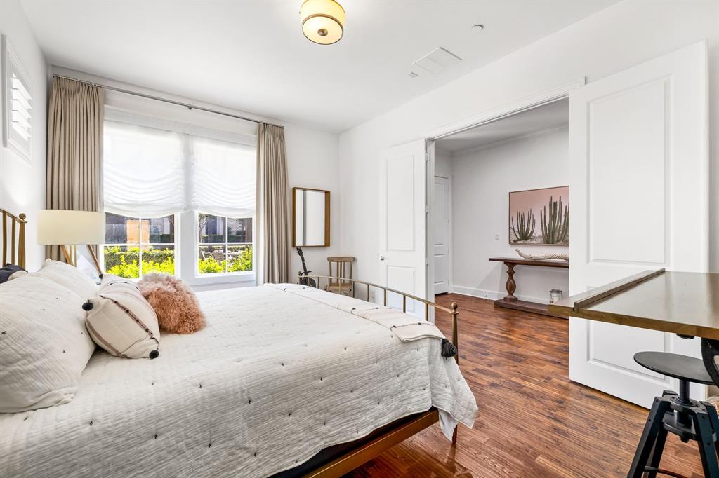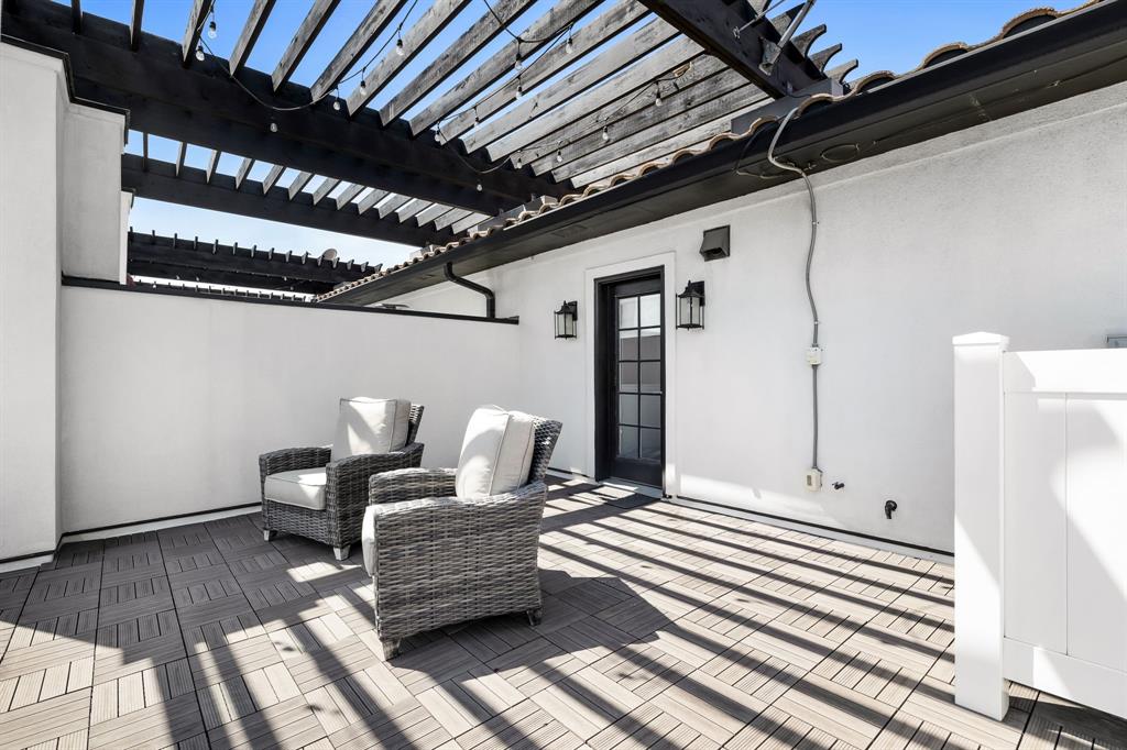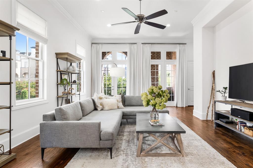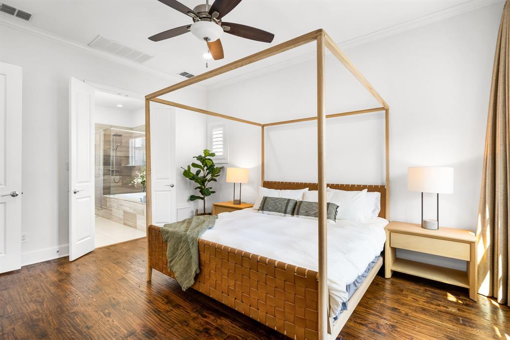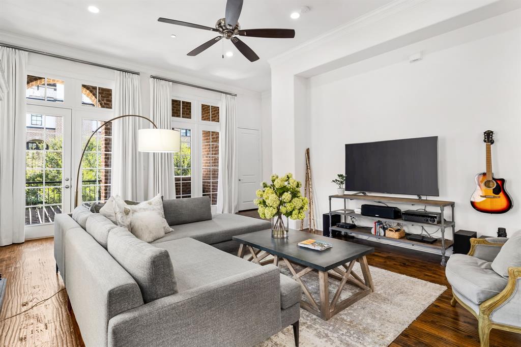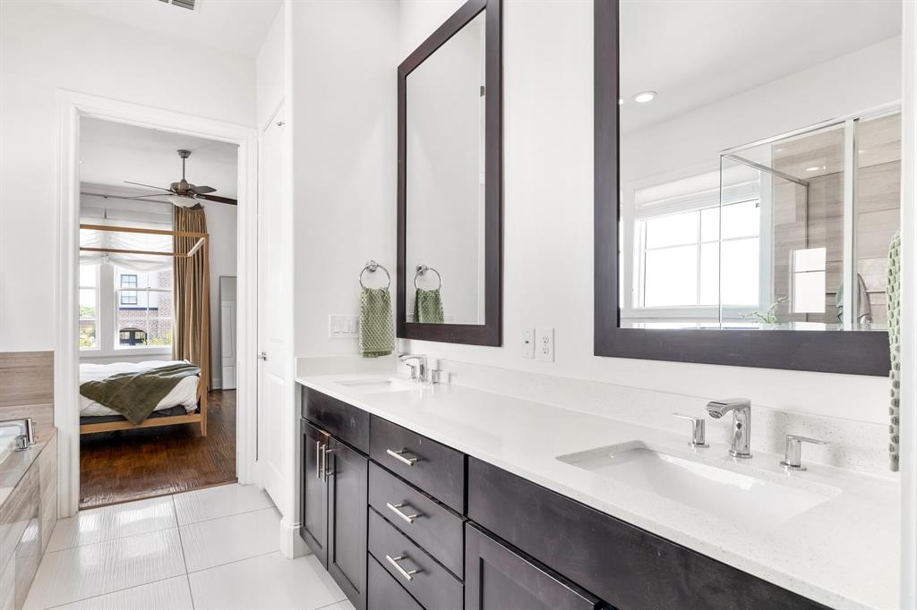 One of the largest end-unit floorplans at Townhomes at Lake Carolyn, this stunning home offers a rare combination of space, style, and location in the heart of the Las Colinas Urban Center. This 4-story townhome features hand-scraped red oak hardwood floors throughout, soaring 12-ft ceilings on the main level, and over $20,000 in custom window treatments. The open-concept living area is anchored by a gourmet kitchen with two built-in Miele steam ovens, Bosch gas cooktop, Zephyr vent hood, quartz countertops with herringbone backsplash, soft-close cabinetry, walk-in pantry, and a large island with seating. The luxurious primary suite includes a quartz double vanity, an oversized soaking tub, walk-in shower with natural stone surrounds, and a huge walk-in closet with built-ins and pull-downs. Additional upgrades include dimmable lighting, repainted interiors, and a two-car garage with epoxy floors, custom shelving, and WiFi-enabled opener. Outdoor living is easy with a covered balcony plus a spacious rooftop terrace with stained pergola. Energy-efficient features: Lennox 16+ SEER dual-speed HVAC with 3-zone thermostat, tankless water heater, radiant barrier attic, and insulated pipes. Community amenities include lush landscaping throughout, a resort-style pool and a stunning European-inspired courtyard with grills and an outdoor fireplace. Plus enjoy close the Toyota Music Factory, Irving Water Street, the DART Rail, Lake Carolyn and Campion Trail. This home offers the best of luxury, efficiency, and urban convenience in Las Colinas.