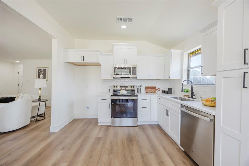 Beautifully remodeled 3-bedroom, 2-bath home on a large corner lot, in the very sought after Keller ISD. This move-in ready property offers a bright, open floor plan with new flooring, fresh paint, and updated lighting throughout. The kitchen features new cabinets, quartz countertops, stainless steel appliances. Both bathrooms have been fully updated with modern tile, vanities, and fixtures. The spacious primary suite includes a private bath and generous closet space. Outside, enjoy a large backyard with plenty of room to entertain or expand. Located close to schools, parks, and shopping. A must-see!