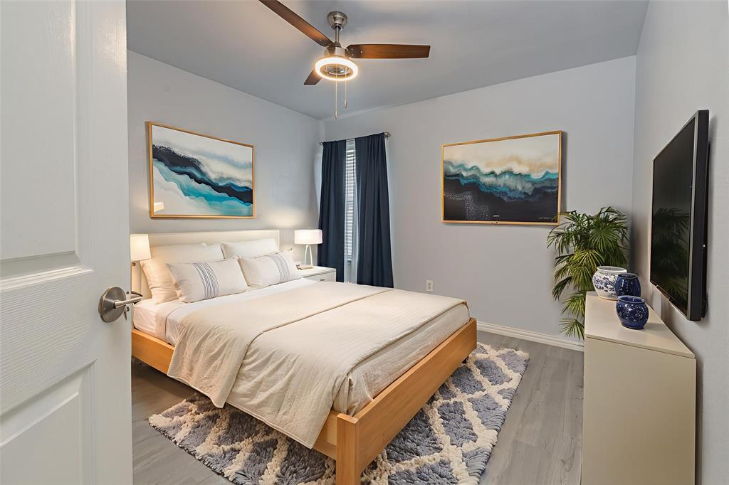 Located in the desirable Trail Lake Estates subdivision of Fort Worth, this beautiful, move-in ready 4-bedroom, 2-bathroom home offers 1,854 sq ft of comfortable living space on a spacious 9,148 sq ft lot. Built in 2003 and nestled in a quiet cul-de-sac, the property features inviting curb appeal with St. Augustine grass and flower beds lining the entrance. The slab foundation supports a well-maintained single-story layout with large windows in the family, dining, and living rooms that fill the home with natural light. The family room centers around a ceramic tile wood-burning fireplace and hearth. The roomy primary suite includes a large walk-in closet, and all bedrooms offer walk-in closets. The kitchen features a spacious pantry, and the oversized laundry room includes cabinets, shelving, and extra space for utility storage. Stylish new grey drapes add a modern touch throughout. The grassy backyard is a peaceful retreat with mature trees including an Arizona Ash, peach tree, and crepe myrtle, plus vibrant flower beds. The home is all-electric and not plumbed for gas. The roof and water heater are approximately 5 years old, and the HVAC system has been serviced annually, with the most recent service completed. Termite prevention was professionally done in late spring. Conveniently located near major highways including I-35W and Loop 820, residents enjoy easy access to shopping, dining, and recreational spots like nearby lakes and parks. This home blends comfort, charm, and location. This well-maintained home is ideal for a first-time buyer seeking comfort and peace of mind.