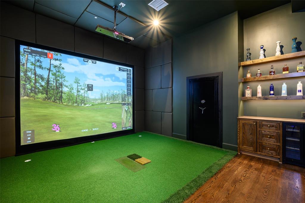 The game room with golf simulator, bar, safe room and full bathroom open to the screened verandah and outdoor kitchen enhancing entertainment opportunities.