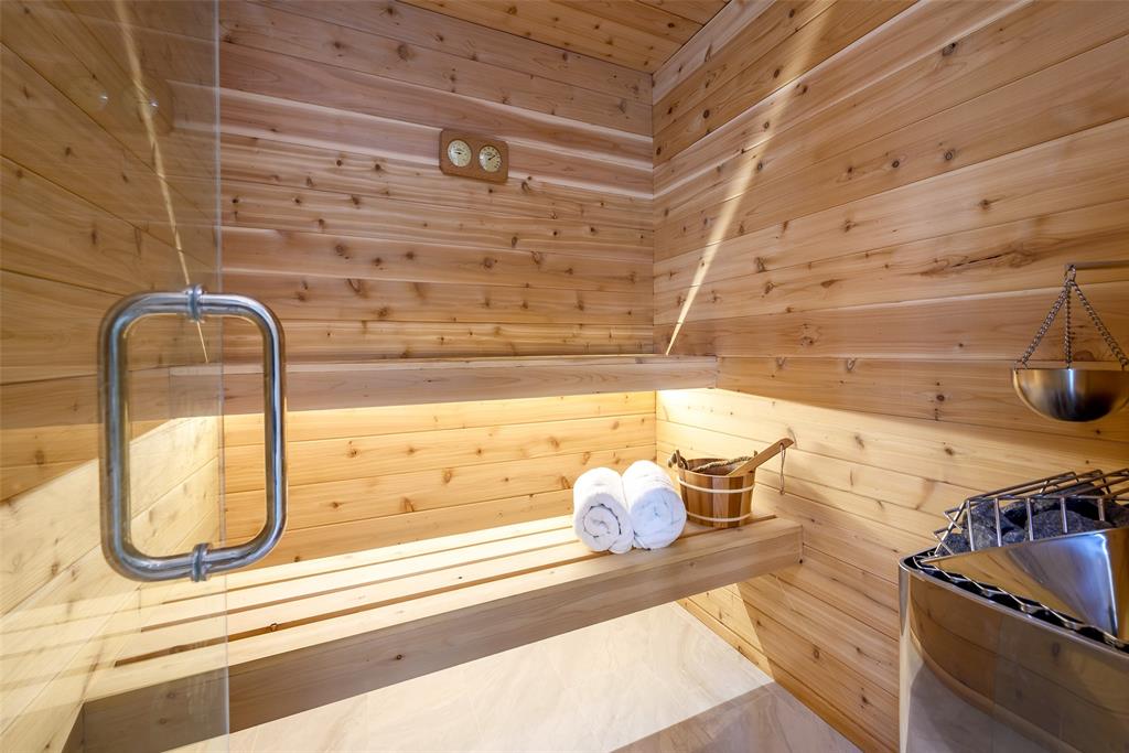 The first-floor primary suite is a private retreat with a sitting area, dual walk-in closets, and a spa-like bathroom with garden tub, steam shower, heated floors, and private water closet. Also on this level is a guest bedroom with an ensuite bath, powder bath, utility and mud room.