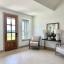 The half bath is conveniently located near the garage, next to a dedicated laundry room and a custom catch-all cabinetry unit, ideal for organizing bags, shoes, and daily essentials.