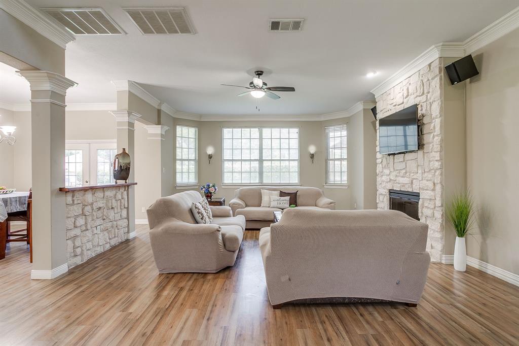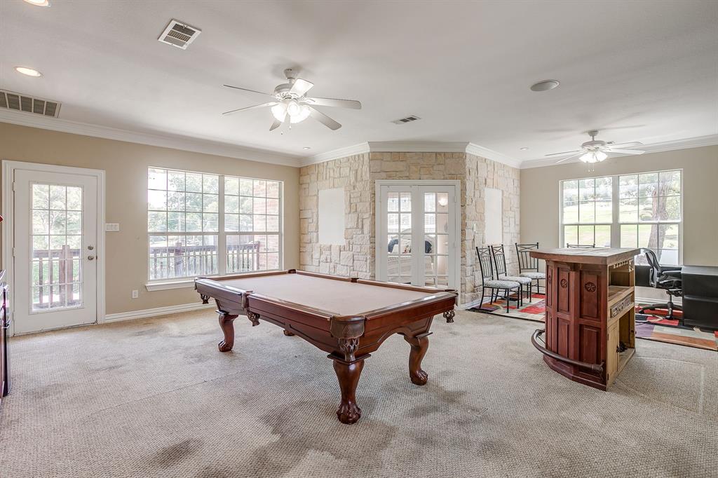 A Car Enthusiast’s Dream! Nestled on a quiet, private circular cul-de-sac, this elegant two-story brick and stone home offers a rare combination of open-concept living, convenient features, and exceptional functionality. With 3 bedrooms, 2.5 baths, and a layout designed for both everyday living and entertaining, this home truly has it all. Step inside to discover soaring ceilings and a spacious living room with a cozy fireplace, seamlessly flowing into the dining room with French doors leading to the covered back porch, ideal for indoor and outdoor gatherings. The chef’s kitchen features a double oven, gas cooktop, expansive counter space, and a walk-in pantry, offering both style and function for your culinary adventures. Upstairs, enjoy a huge game room currently outfitted with a pool table, plus a versatile bonus room that can easily transform into a media room, home office, or an additional bedroom, the possibilities are endless. All bedrooms are located upstairs, providing privacy and separation from the main living areas. The spacious primary bedroom and game room both feature access to private balconies. Car lovers will be thrilled with the 3 car garage, complete with a drive through feature, and an additional 2 car carport equipped with a custom car lift system, perfect for maintaining and showcasing your prized vehicles. The expansive backyard is a rare find, offering separate gated street access with ample space to park a boat, RV, or trailer. Plus, a charming treehouse adds a touch of whimsy and adventure for kids or the young at heart. Don’t miss this one of a kind property that blends comfort, convenience, and custom features in a peaceful, private setting. Schedule your showing today!