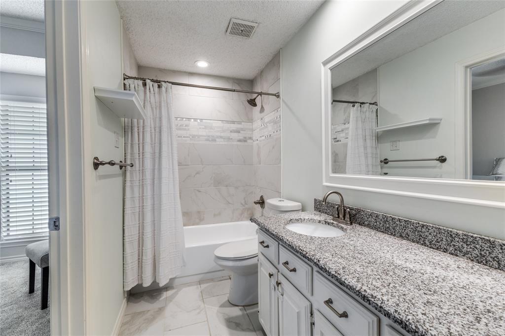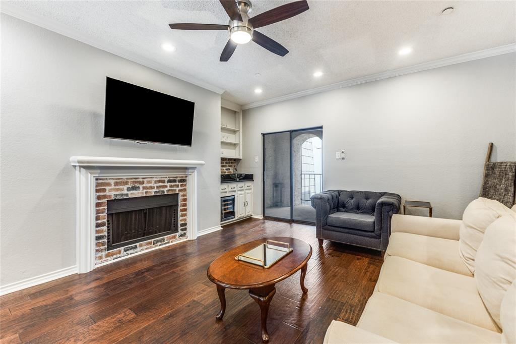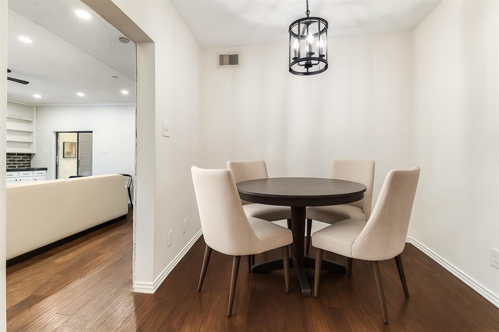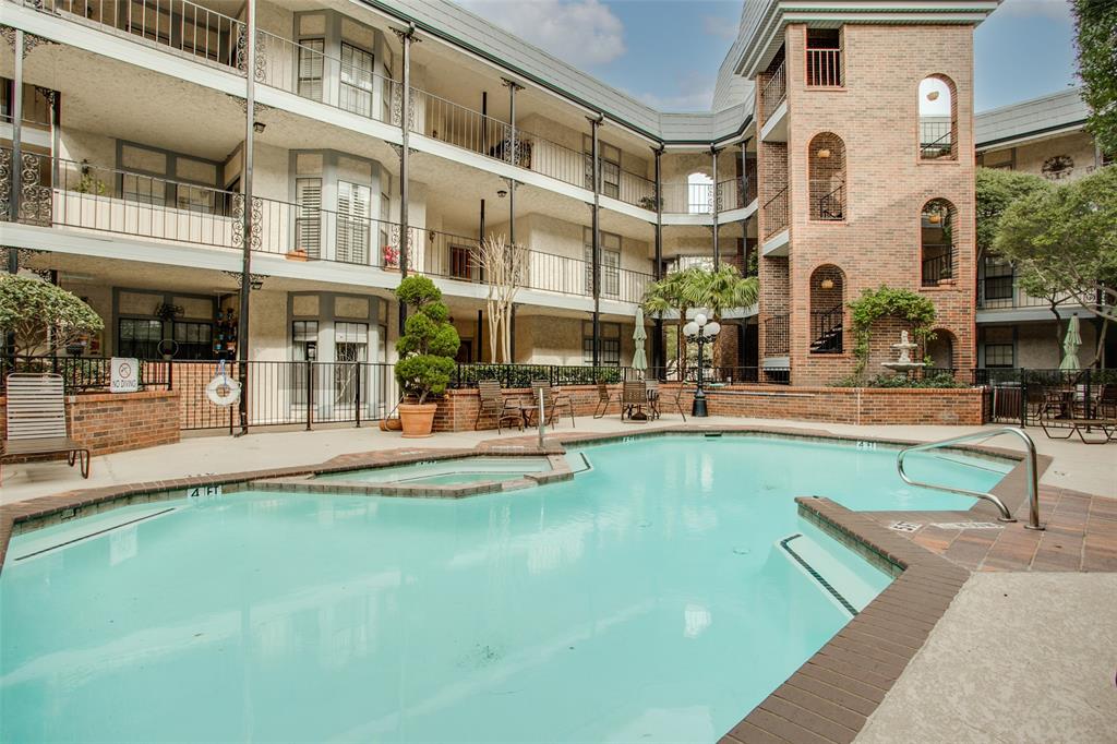 Nicely updated 2 bedroom 2 bath located on the top floor in desirable Le Parc, a boutique midrise in Preston Hollow. Large living room with wood-type flooring and fireplace is open to the dining area. The kitchen features granite countertops and is adjacent to the breakfast and living area which opens to a private balcony. The spacious primary bedroom has a walk-in closet and updated ensuite bathroom with a walk-in shower. The secondary bedroom is ensuite and has direct access to the balcony. Le Parc is a quaint condominium development with a community pool and elevator access to all resident floors. Other features include 2 assigned garage parking spaces and storage area. This is an excellent opportunity in an ideal location bordering the Park Cities and near some of Dallas' best dining and shopping.