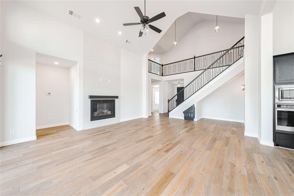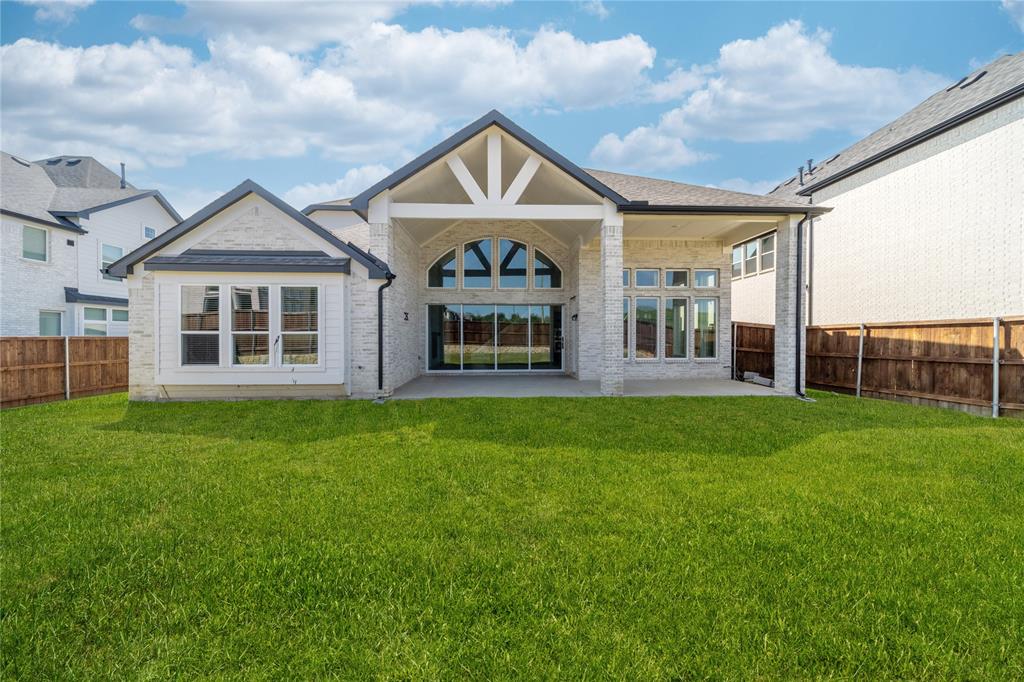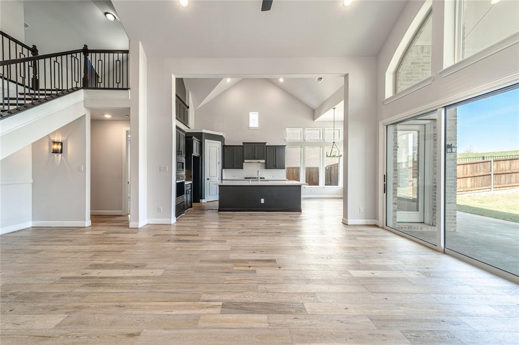 Stunning 6 bedroom, 5 bath home with nearly 4,000 sq. ft. in highly rated Rockwall ISD. Open floor plan with soaring ceilings and abundant natural light. The living area features a fireplace and a wall of massive sliding doors that open to the backyard, creating seamless indoor-outdoor living.