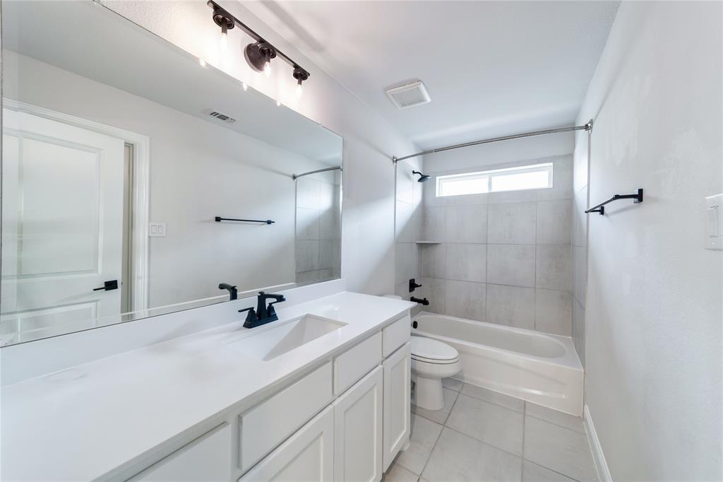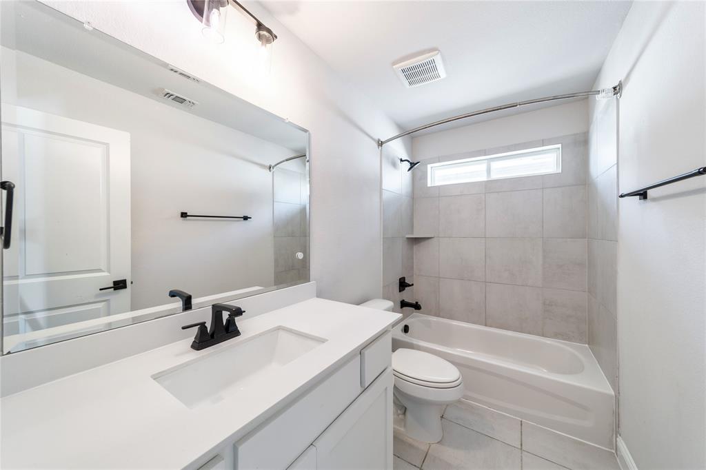 The kitchen offers quartz countertops, a large California island, and sleek black cabinetry. Floor plan includes two living areas, game room, media room, and a converted third-car garage perfect for an office or gym. Spacious primary suite with spa-style bath. Covered patio and large backyard ideal for entertaining.