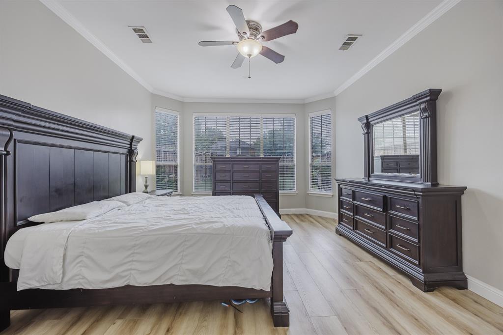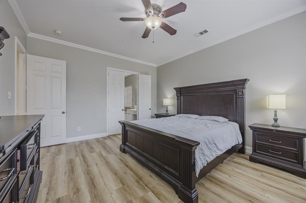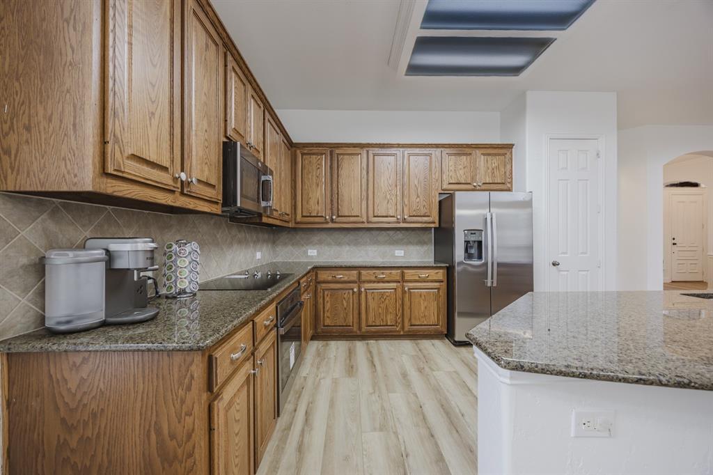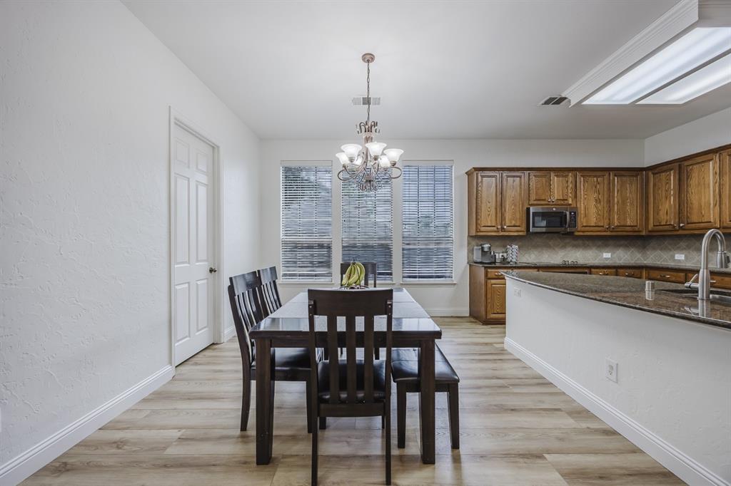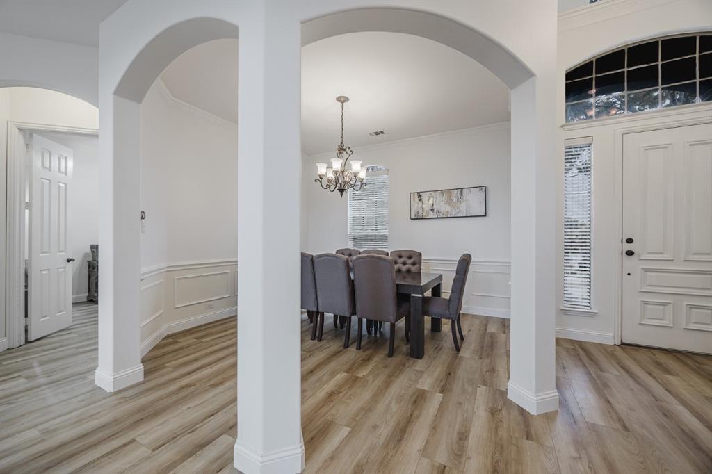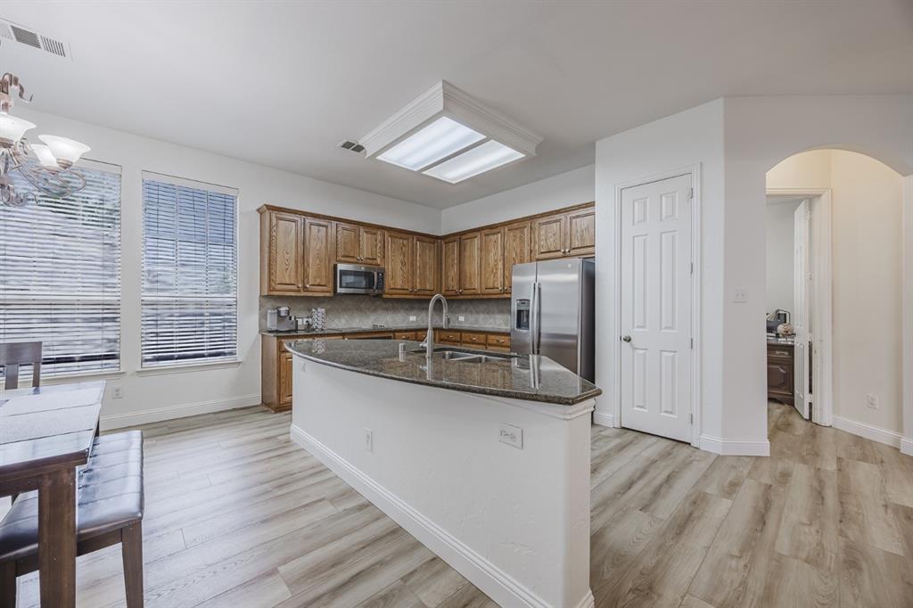 Recent 2025 upgrades: roof, HVAC, flooring, interior paint, and appliances. Beautiful 5-bedroom, 4.5-bath Drees custom home in Meadow Hill Estates of Frisco offering 3,415 sq. ft. of open, thoughtfully designed living space. The grand living room features vaulted ceilings, a fireplace, and abundant natural light. The kitchen includes a large granite island, stainless steel appliances, and a breakfast area. The primary suite offers dual vanities, soaking tub, and separate shower. A first-floor guest suite with private bath is ideal for visitors or a home office. Upstairs provides three additional bedrooms, two full baths, an open game room, and a spacious media room. The oversized backyard includes a board-on-board fence and extended patio for entertaining. Located on a large lot in Frisco ISD with easy access to DNT, Preston Rd, US-380, SH-121, shopping, dining, and Warren Sports Complex. With updates, a flexible layout, and prime location, this home is move-in ready.