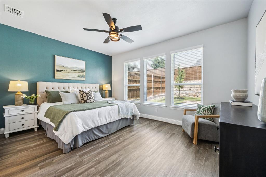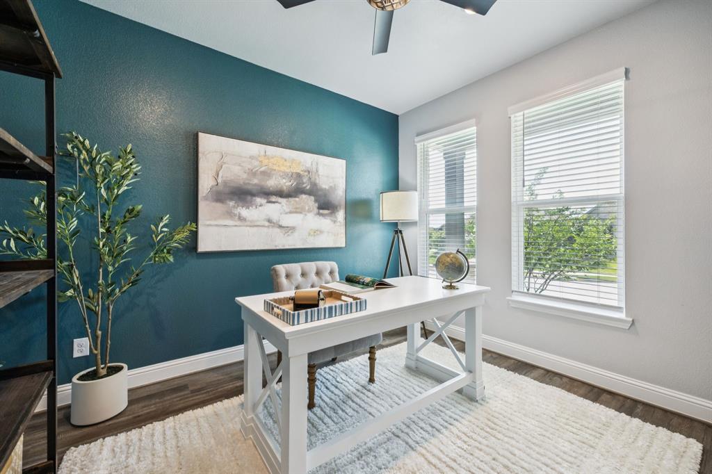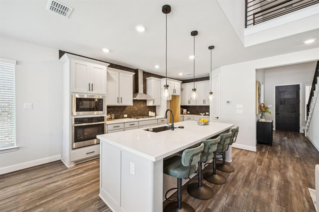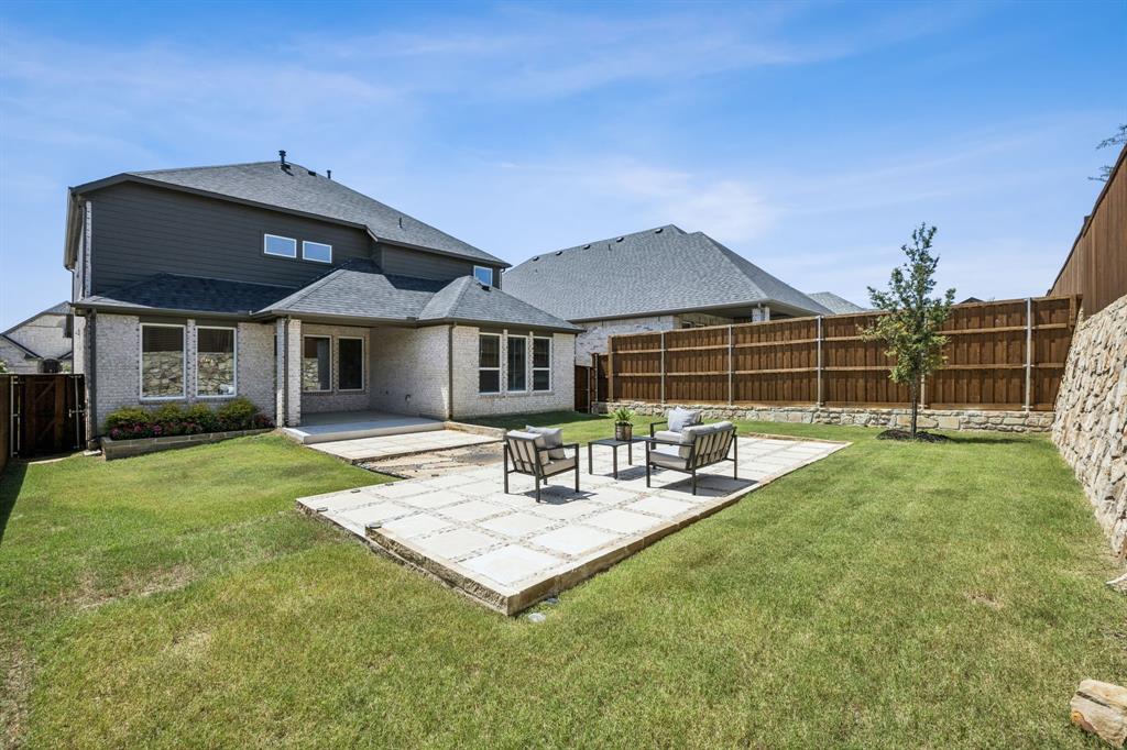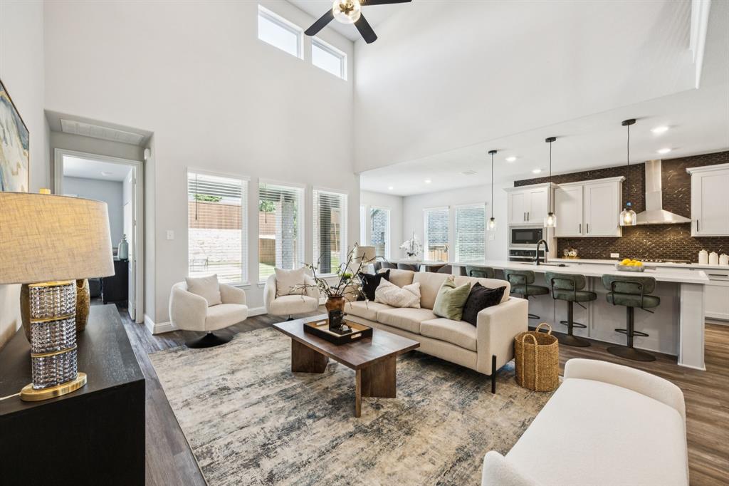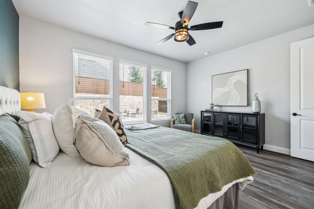 Prepare to be wowed by this stunning custom-designed home, built in 2022! From the moment you walk through the door, soaring ceilings, sleek modern iron balusters, and an open, airy layout will have you falling in love instantly. The heart of the home is the show-stopping kitchen, featuring a dramatic black backsplash, massive island, and endless counter space—perfect for cooking, entertaining, or simply enjoying the stylish atmosphere. With 4 spacious bedrooms, 3.5 baths, a private study, and a huge upstairs game room, this home truly has it all. The primary suite is a dreamy retreat on the main floor, complete with spa-inspired finishes, chic hexagonal tile, an oversized walk-in shower, and a custom-designed closet with smart storage solutions. Step outside and enjoy the oversized backyard, where a covered patio and extended concrete pad are ready for entertaining, grilling, or relaxing under the stars. Best of all, you’ll have access to incredible neighborhood amenities, including a sparkling pool, state-of-the-art fitness center, stocked fishing pond, and more! Don’t wait—schedule your showing today!