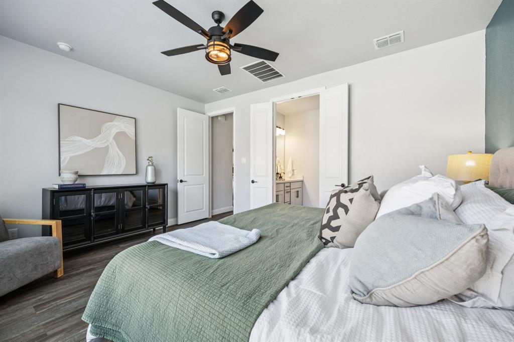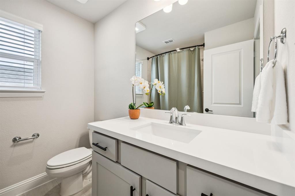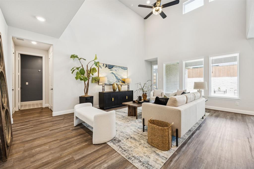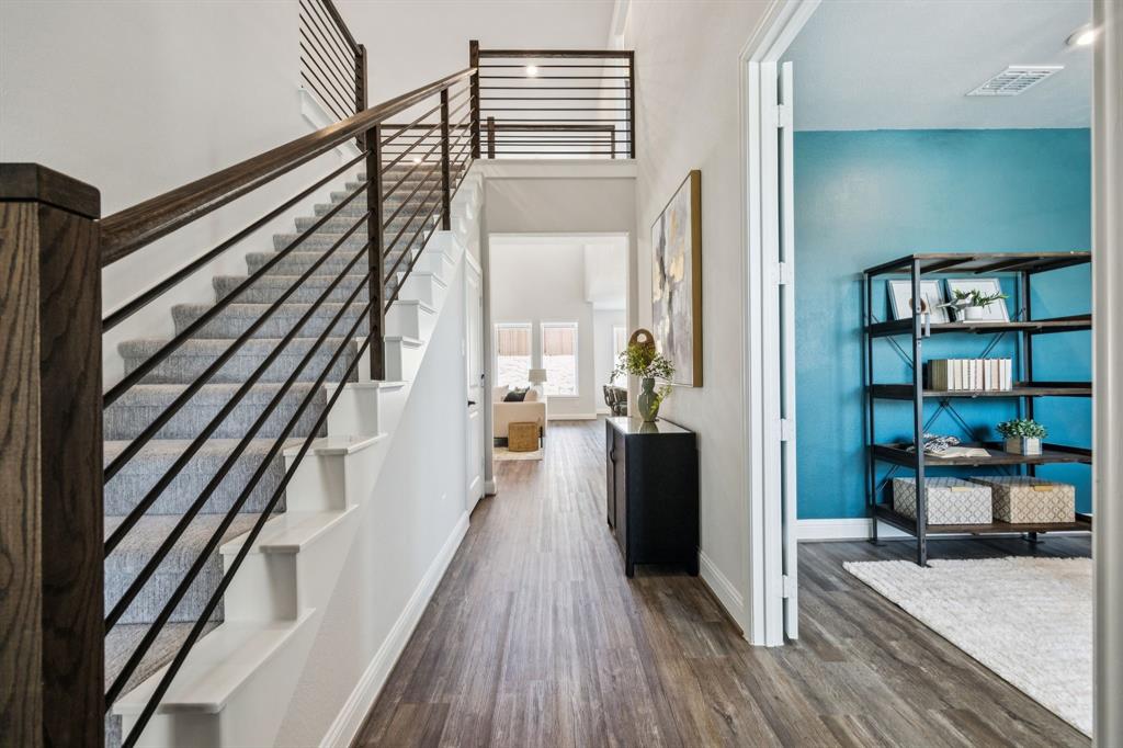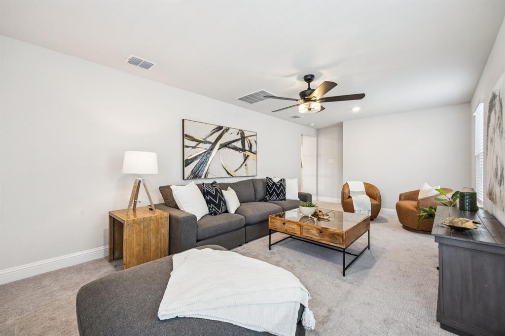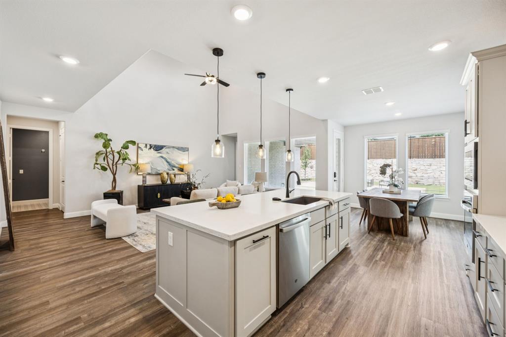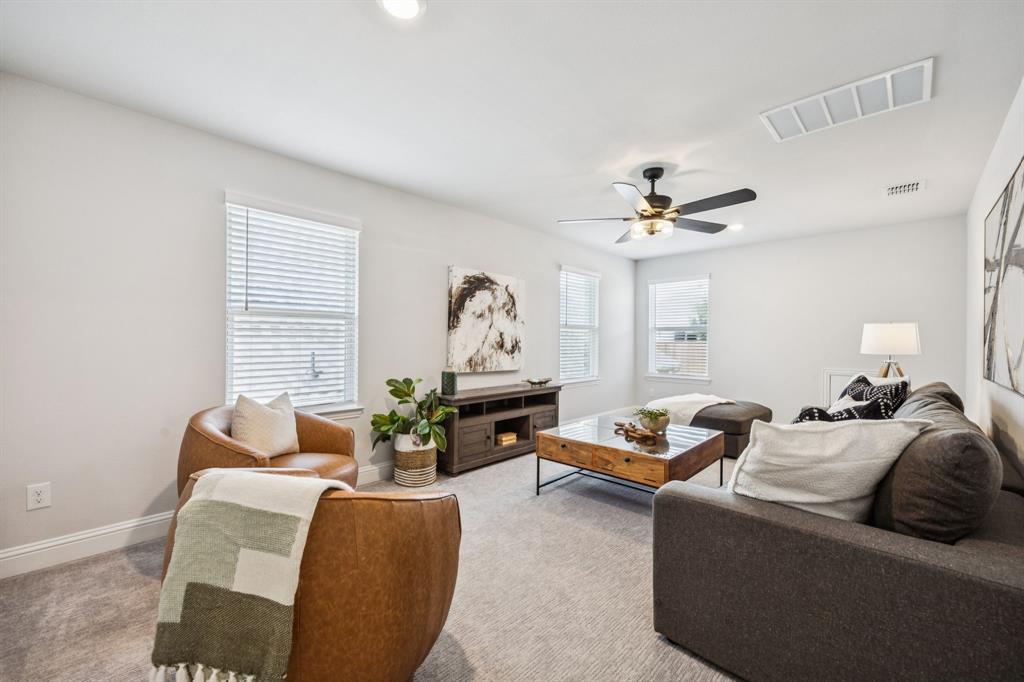 Prepare to be wowed by this stunning custom-designed home, built in 2022! From the moment you walk through the door, soaring ceilings, sleek modern iron balusters, and an open, airy layout will have you falling in love instantly. The heart of the home is the show-stopping kitchen, featuring a dramatic black backsplash, massive island, and endless counter space—perfect for cooking, entertaining, or simply enjoying the stylish atmosphere. With 4 spacious bedrooms, 3.5 baths, a private study, and a huge upstairs game room, this home truly has it all. The primary suite is a dreamy retreat on the main floor, complete with spa-inspired finishes, chic hexagonal tile, an oversized walk-in shower, and a custom-designed closet with smart storage solutions. Step outside and enjoy the oversized backyard, where a covered patio and extended concrete pad are ready for entertaining, grilling, or relaxing under the stars. Best of all, you’ll have access to incredible neighborhood amenities, including a sparkling pool, state-of-the-art fitness center, stocked fishing pond, and more! Don’t wait—schedule your showing today!