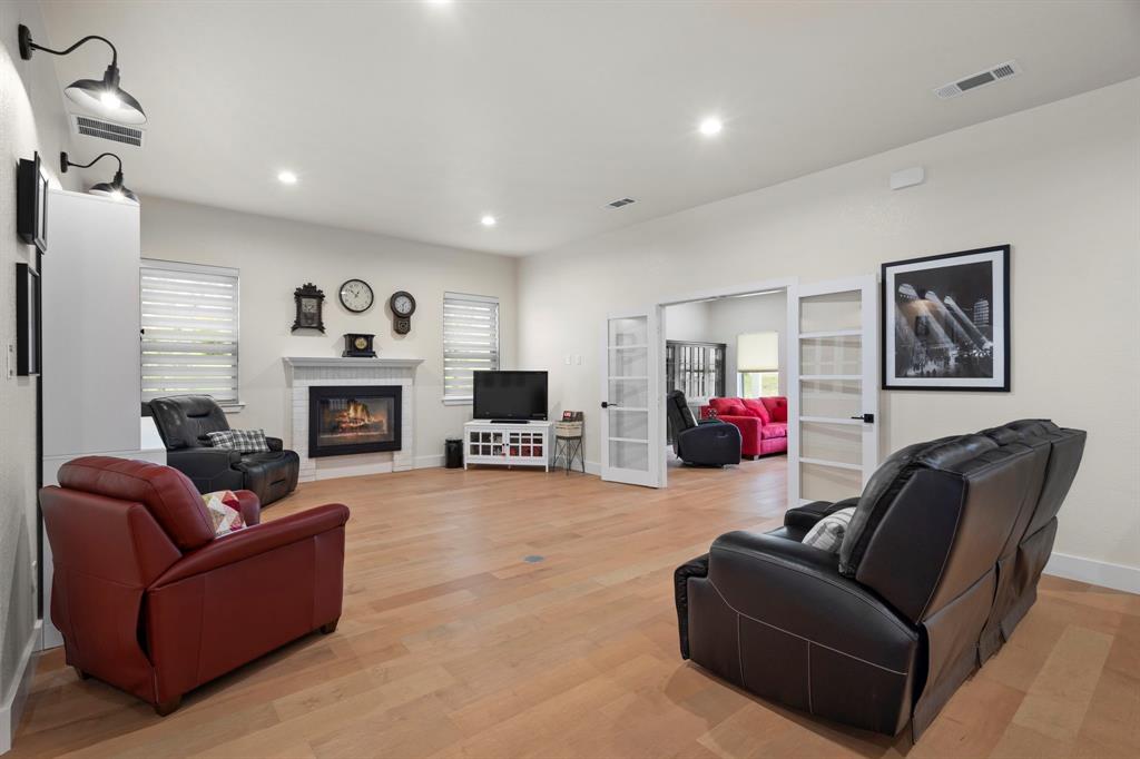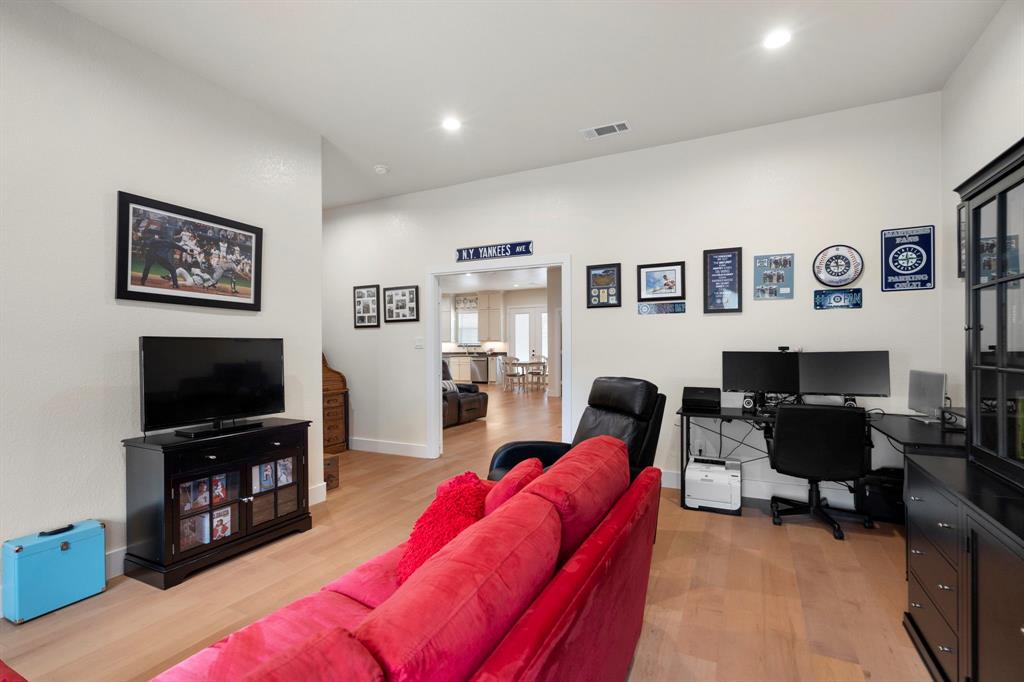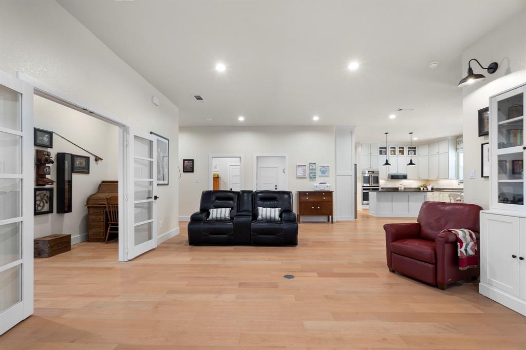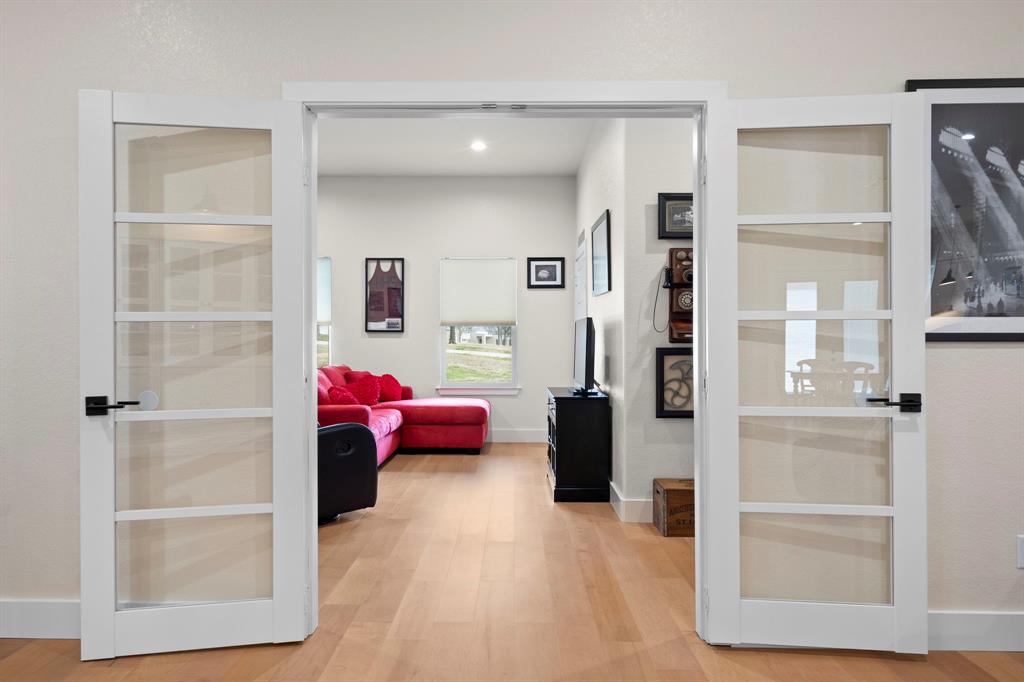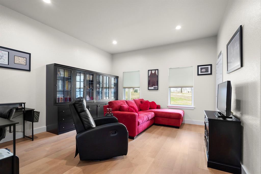At the heart of the home, the gourmet kitchen is a chef’s dream—complete with dual sinks, double ovens, an oversized island, generous cabinetry, ample counter space, and a walk-in pantry that can easily accommodate all your culinary needs. Whether hosting a dinner party or preparing daily meals, this space combines functionality with custom finishes throughout.