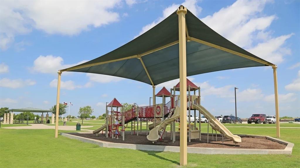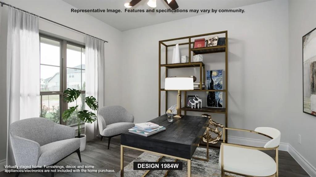Home office with French doors set at entry with 11-foot ceiling. Open kitchen offers center island, 5-burner gas cooktop and corner walk-in pantry. Dining area opens to spacious family room with wall of windows. Private primary suite includes bedroom with wall of windows. Dual vanity, corner garden tub, separate glass-enclosed shower and large walk-in closet in primary bath. Abundant closet space and natural light throughout. Covered backyard patio. Mud room off two-car garage.