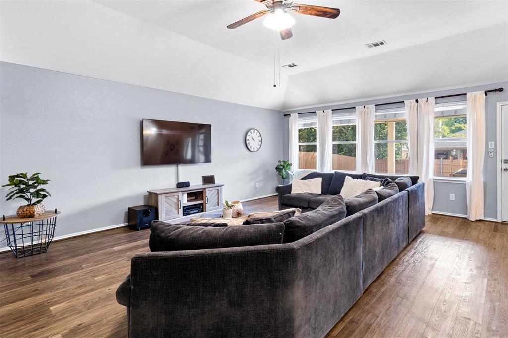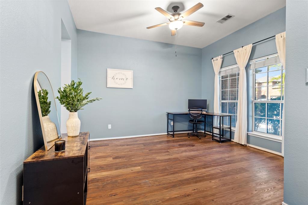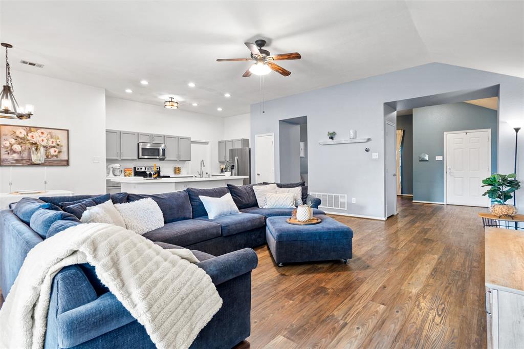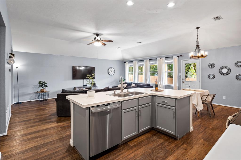 Welcome to 13240 Elmhurst Dr, a charming 3 bedroom, 2 bath single-story home offering 1,762 square feet of open-concept living space. The kitchen is a centerpiece with a large island and stainless steel appliances, flowing into a spacious living and dining area with all laminate wood flooring and tile with no carpet anywhere. The bright primary suite provides privacy, with generous storage throughout. You'll find two secondary bedrooms, a designated office or dining space and a full bathroom. Outside, you’ll enjoy a covered patio overlooking a fenced backyard, ideal for grilling, raised beds for gardening and outdoor entertaining. Recent updates include refreshed bathroom lighting and mirrors (2025), front yard sod (2025), new water heater (2024), exterior paint and siding (2024), and a new side fence and gate (2025). The attached 2-car garage adds convenient storage. Harvest Ridge offers a host of amenities: a large community pool, wading pool, two parks with playgrounds, path around a scenic pond, catch-and-release fishing, basketball court, planned community events, and a charming little library. Zoned for Keller ISD schools and conveniently located near Keller, Alliance Town Center, HEB, highways, Southlake Town Square and DFW Airport; this home blends comfort and accessibility. Don’t miss the opportunity to make 13240 Elmhurst Dr your new home!