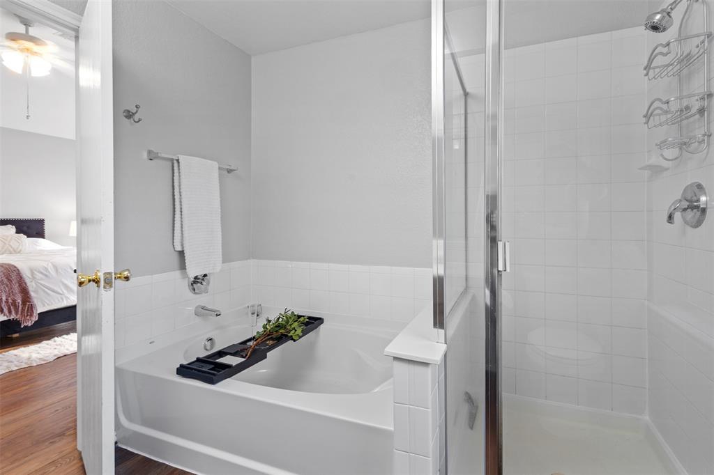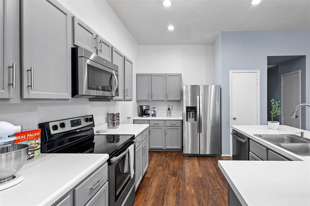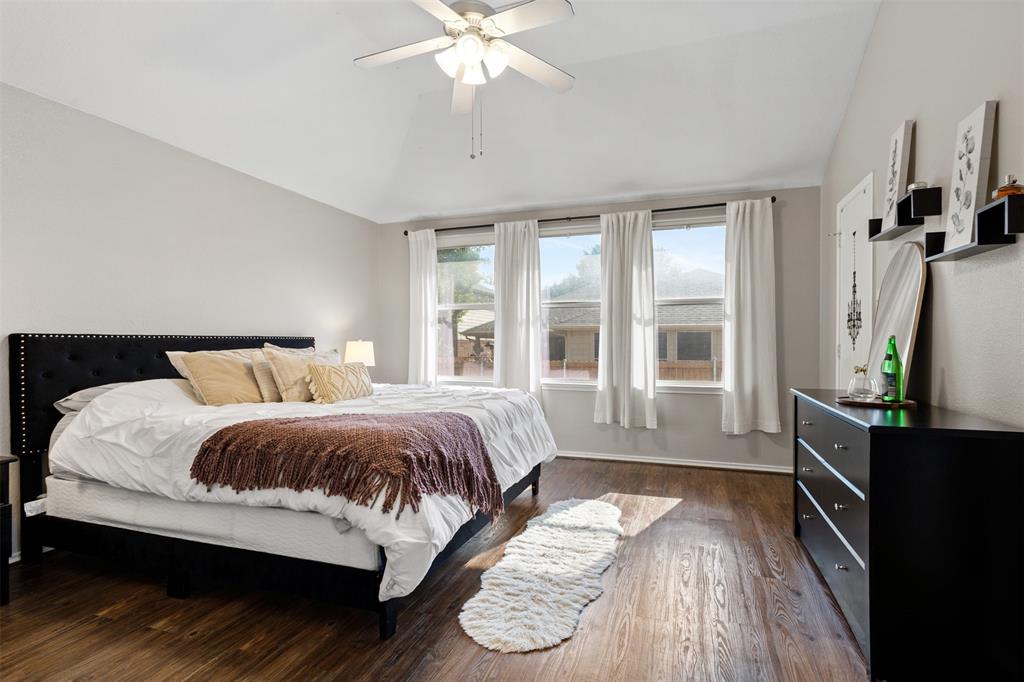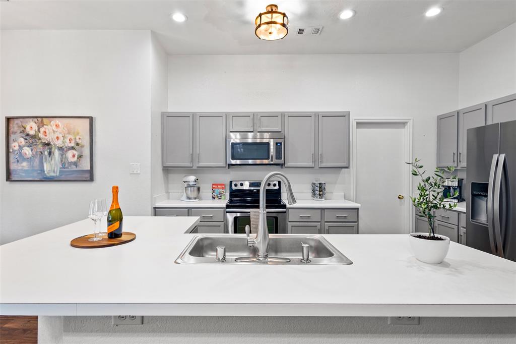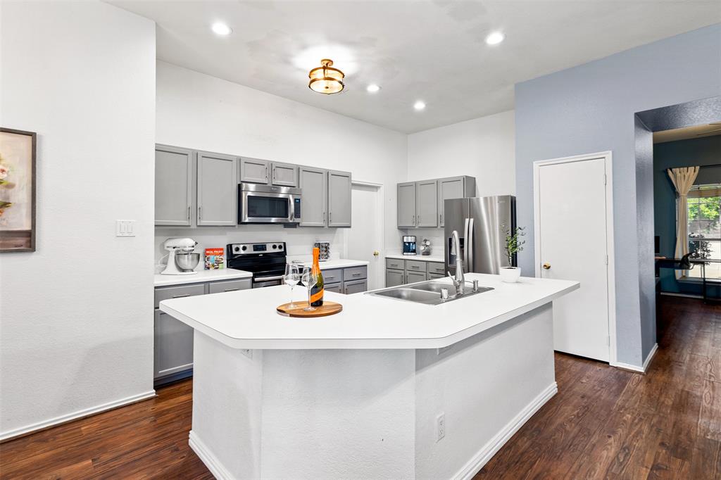 Welcome to 13240 Elmhurst Dr, a charming 3 bedroom, 2 bath single-story home offering 1,762 square feet of open-concept living space. The kitchen is a centerpiece with a large island and stainless steel appliances, flowing into a spacious living and dining area with all laminate wood flooring and tile with no carpet anywhere. The bright primary suite provides privacy, with generous storage throughout. You'll find two secondary bedrooms, a designated office or dining space and a full bathroom. Outside, you’ll enjoy a covered patio overlooking a fenced backyard, ideal for grilling, raised beds for gardening and outdoor entertaining. Recent updates include refreshed bathroom lighting and mirrors (2025), front yard sod (2025), new water heater (2024), exterior paint and siding (2024), and a new side fence and gate (2025). The attached 2-car garage adds convenient storage. Harvest Ridge offers a host of amenities: a large community pool, wading pool, two parks with playgrounds, path around a scenic pond, catch-and-release fishing, basketball court, planned community events, and a charming little library. Zoned for Keller ISD schools and conveniently located near Keller, Alliance Town Center, HEB, highways, Southlake Town Square and DFW Airport; this home blends comfort and accessibility. Don’t miss the opportunity to make 13240 Elmhurst Dr your new home!
