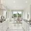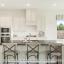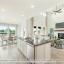 The deluxe kitchen boasts white shaker cabinets, quartz countertops, a white apron-front farm sink, built-in Professional Series stainless appliances, 5-burner GAS cooktop, convection oven with Air Fry, wood vent hood, trash drawer, cabinet hardware and a mosaic natural stone backsplash.