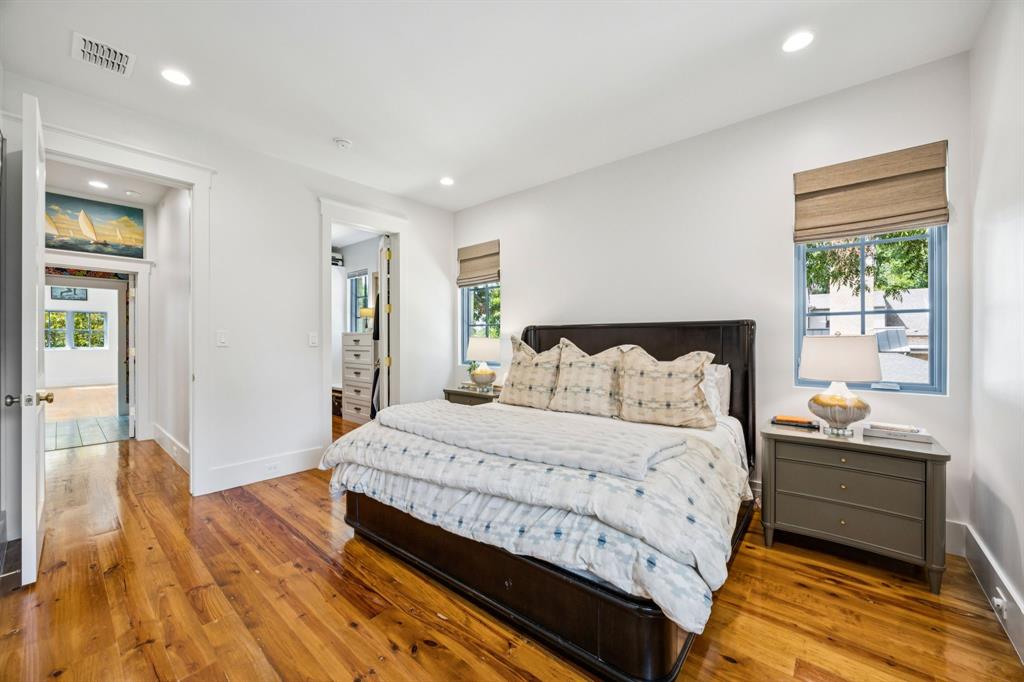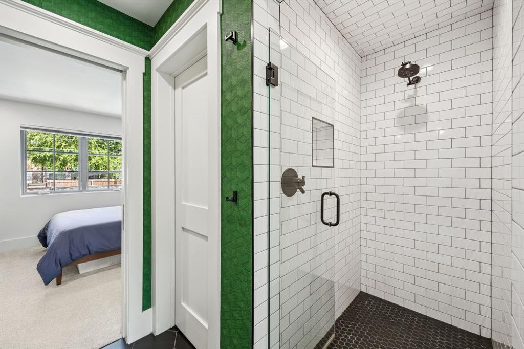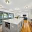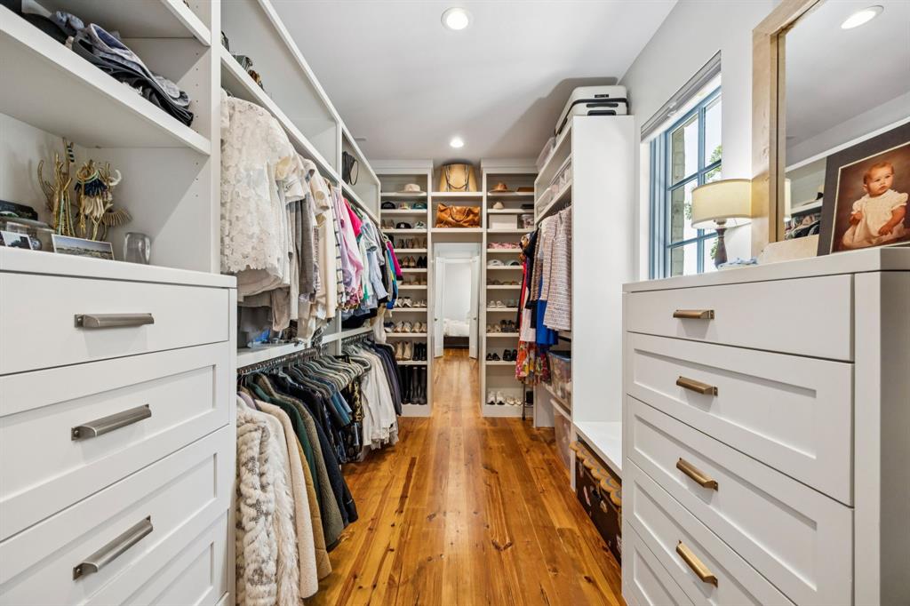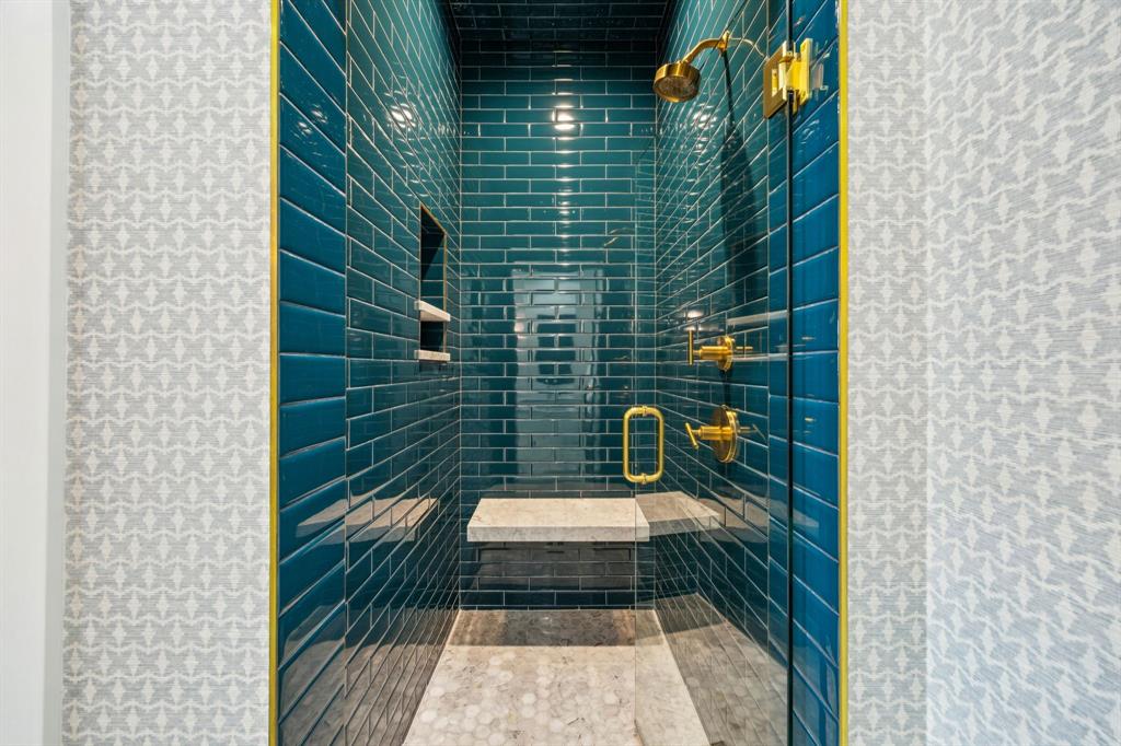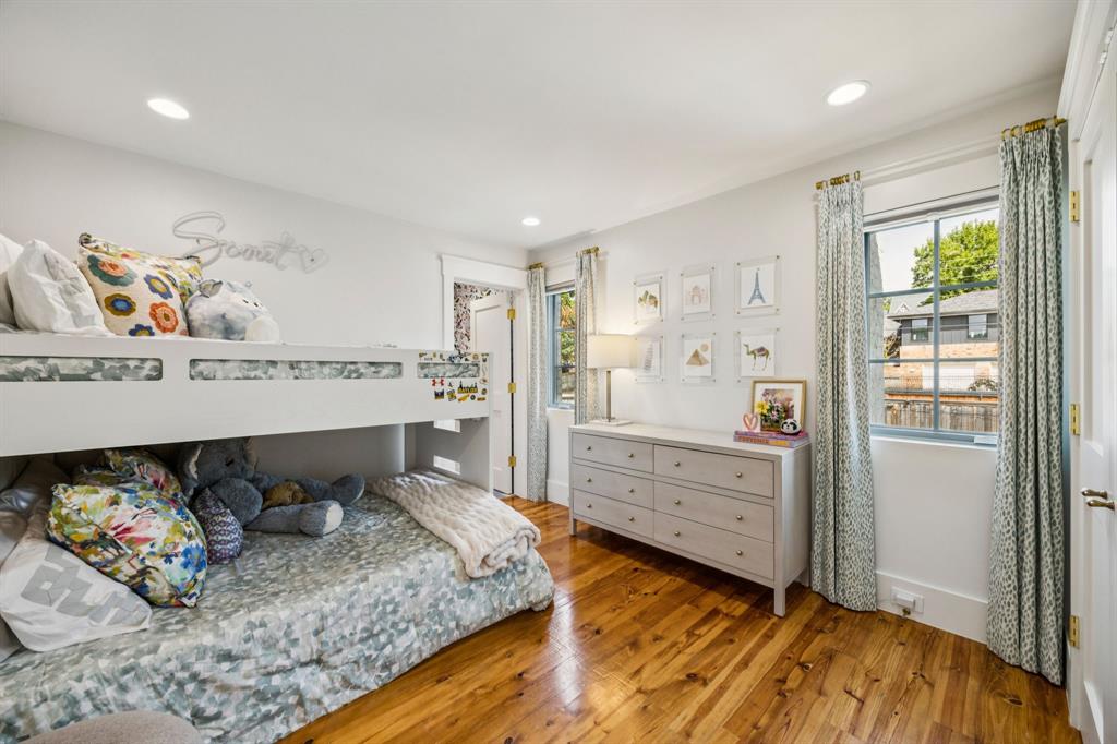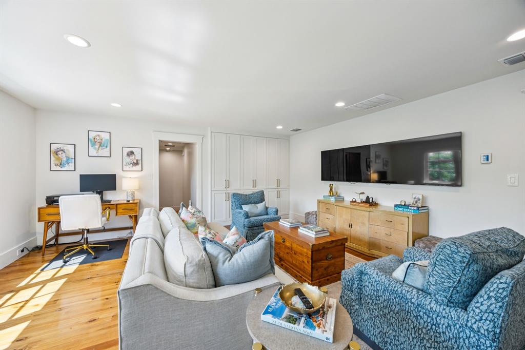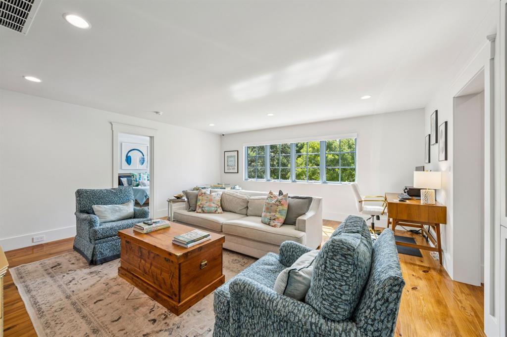 Inside, you'll find reclaimed pine floors that exude warmth and charm, complemented by designer finishes at every turn. The butler’s pantry and library are elevated with exquisite Armac Martin hardware, while Thibaut and York wallpapers add layers of texture and sophistication throughout the home. The playful charm of Katie Kime’s Dallas Toile wallpaper creates a whimsical statement in the spacious playroom.