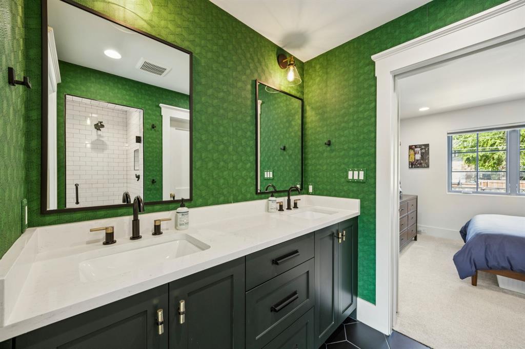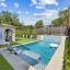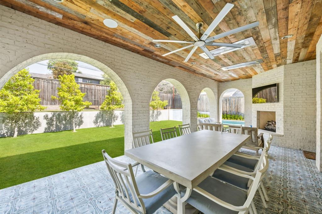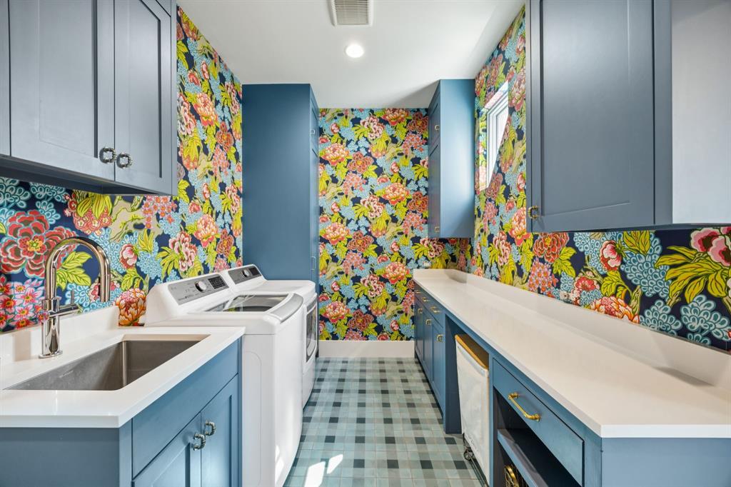 The gourmet kitchen and laundry room are both outfitted with stunning Cle Zellige tile, adding handmade character and artisanal elegance. Step outside to a true entertainer’s dream: imported Spanish tile sets the stage for an inviting outdoor dining area, a sparkling pool, and a lush backyard complete with a batting cage—ideal for sports enthusiasts of all ages.