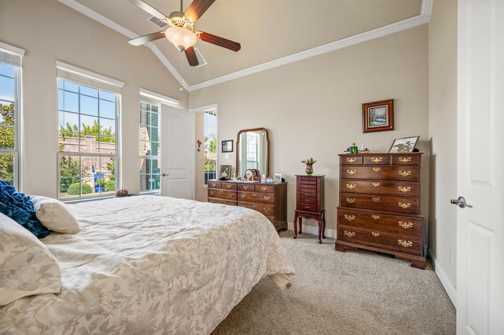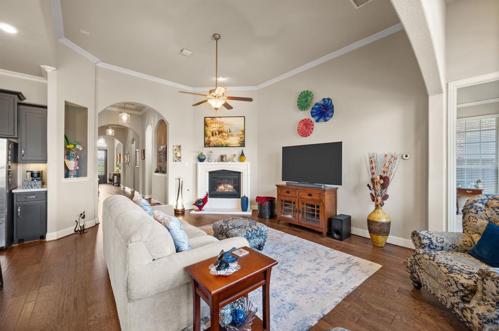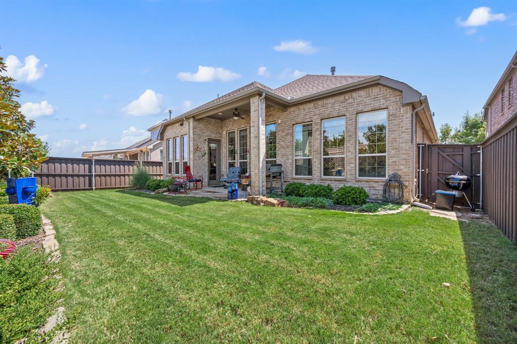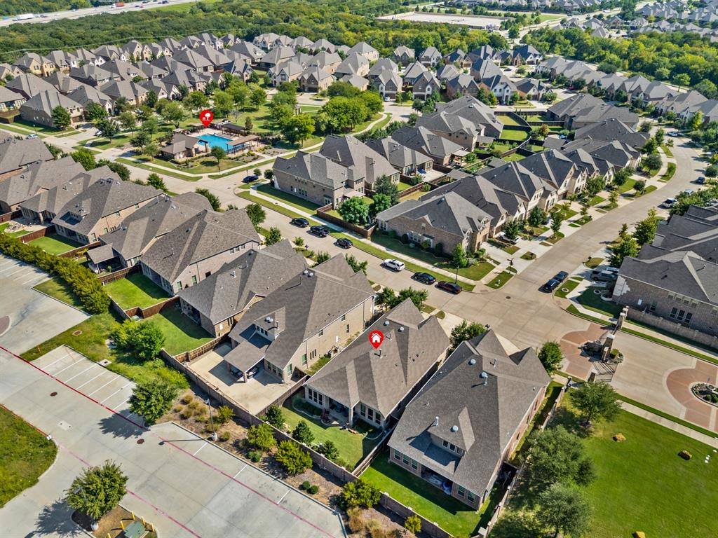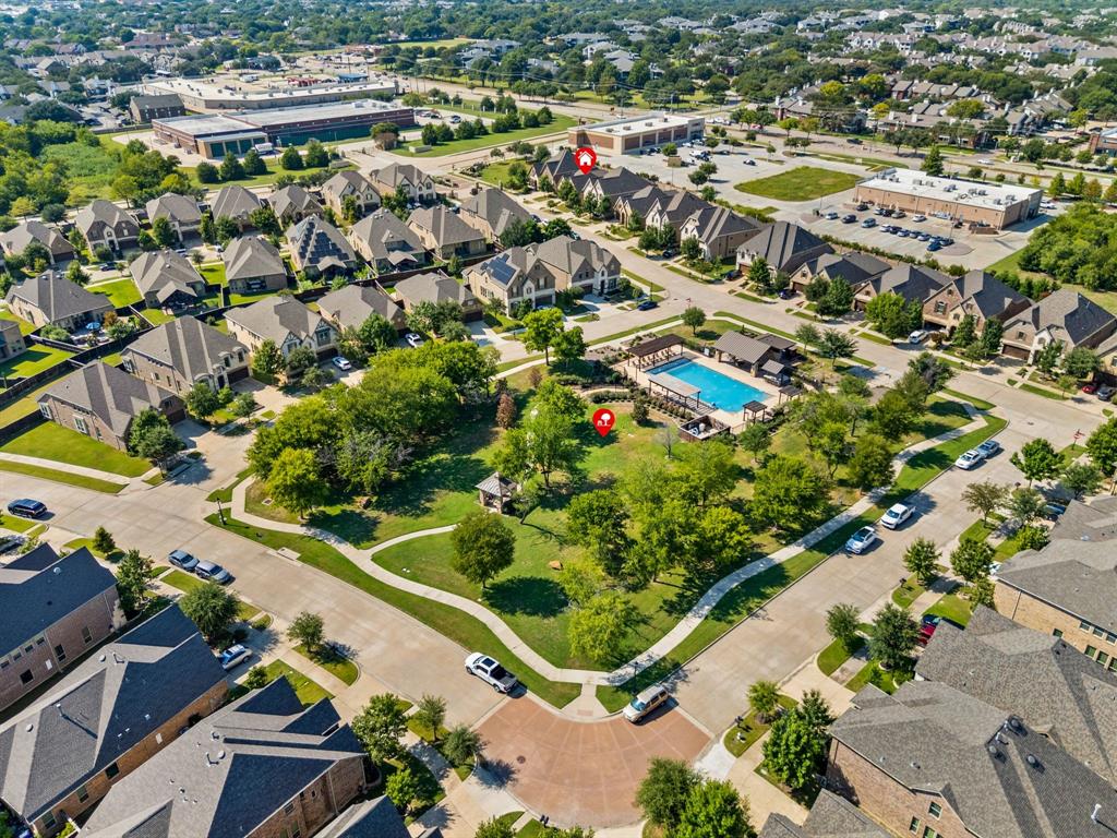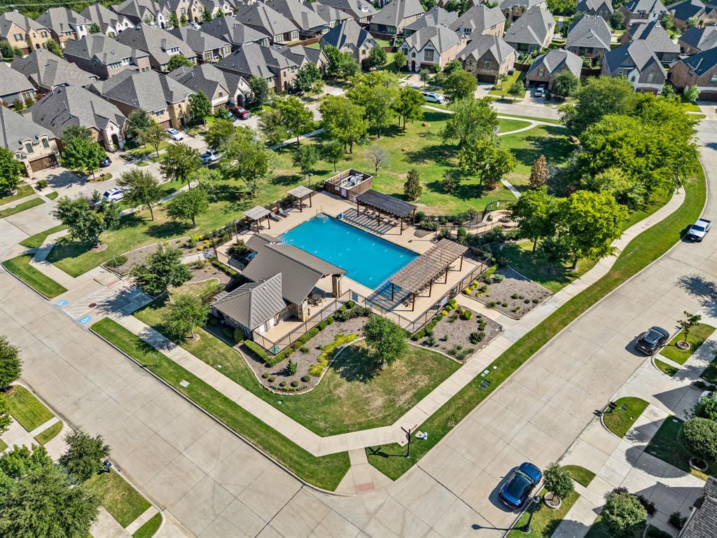 Located in a gated community on a premium lot, residents enjoy access to a sparkling pool, fire pit, and gazebo. The home is conveniently situated just 10 minutes from DFW Airport and near shops, restaurants, the Villages of Bear Creek 40-acre park, a dog park, TX-360, and TX-121. The walking trail connects to three other neighborhoods and will extend to the upcoming Watercolor entertainment district.