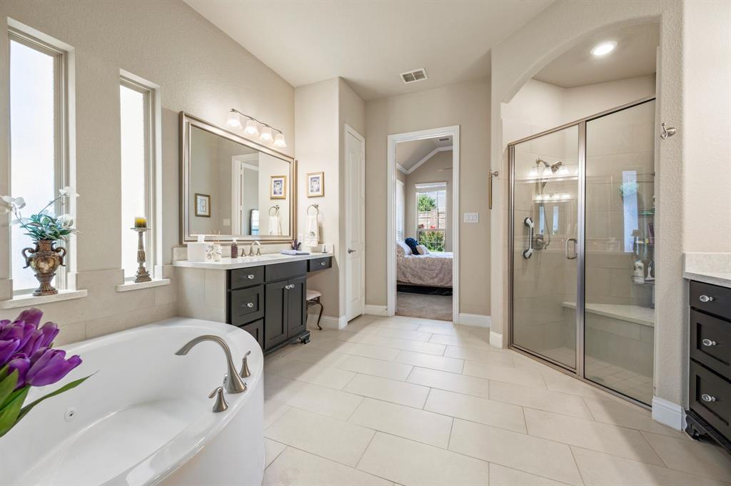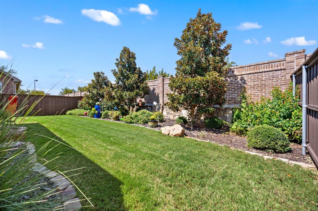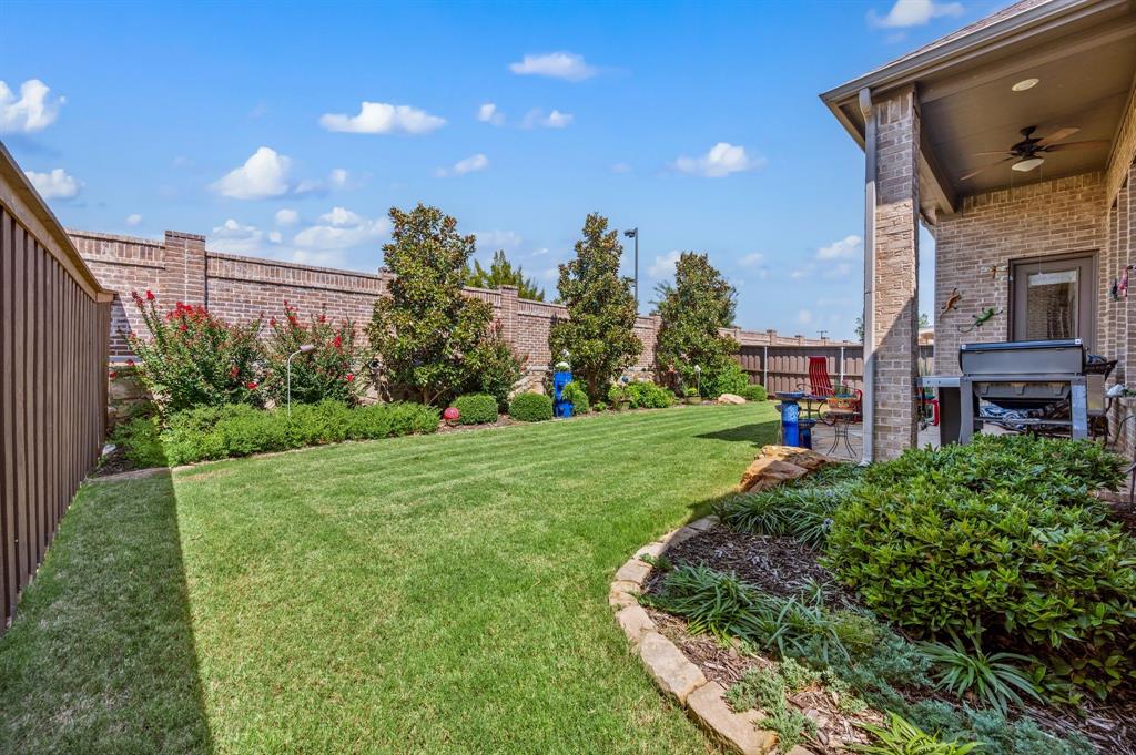 The spacious primary suite includes a jetted tub, separate shower, and oversized walk-in closet. Outdoors, the beautifully landscaped backyard with colorful flowers and greenery offers the perfect retreat for relaxing or entertaining guests. With no rear neighbors, this home provides both beauty and privacy.