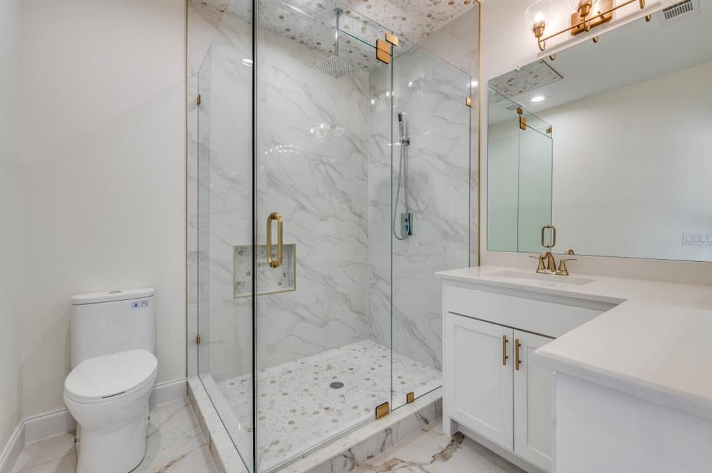 WALKING DISTANCE TO DOWNTOWN HISTORICAL DISTRICT!! CHARMING MEETS CHIC IN THE HEART OF HISTORY! Step into Timeless Elegance with this Beautifully MODERN COMFORT, CHARM and STYLE! Renovated Single Story Gem nestled in the Historical District that blends vintage appeal with modern conveniences. This 1950's home is ready for immediate move in! Enjoy light filled living spaces, a chef-inspired kitchen and luxurious bathrooms. This adorable single story 3 bedrooms and 3 full baths has been fully updated located near the much sought after historic downtown McKinney! Discover timeless elegance blended with modern comfort in this exquisite mid-century modern home. Built in 1957, this one-story home showcases hardwood floors throughout exemplifying stunning craftsmanship. Long front porch to welcome you in. When you walk through the front door, you will be greeted by hardwood flooring. There was no corner left untouched and the upgrades include high end appliances, custom cabinetry, quartz countertops, wood floors throughout and upgraded bathrooms just to mention a few. This stunning home has an open design and has been re-built down to the studs, with insulation in walls and attic. All new electric and plumbing, new HVAC, windows, solid doors, lighting, includes new roof, gutters and plantation shutters though out the home. Large fenced in backyard with a huge new deck patio for entertaining family and friends. Short walk to Historical District Restaurants and Shopping.