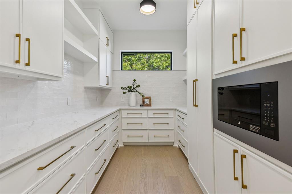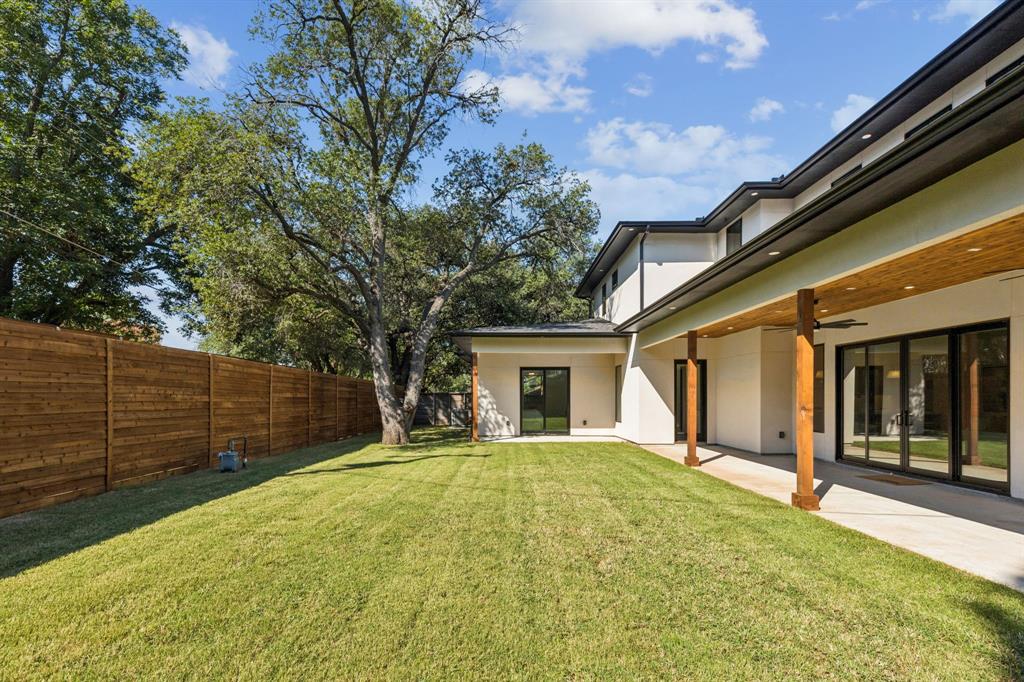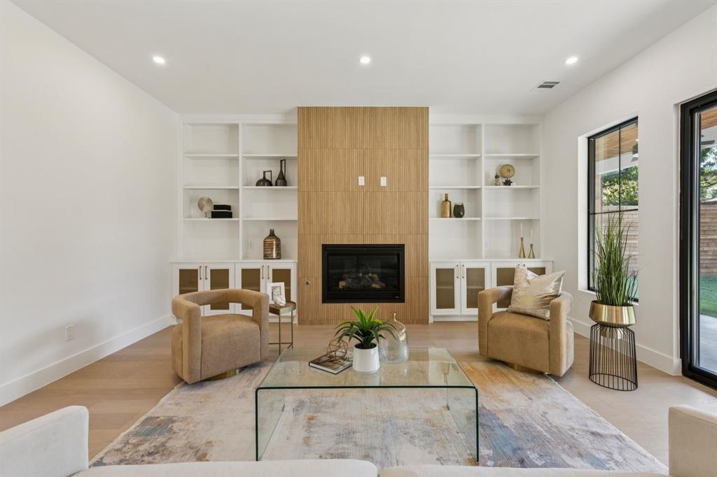 Inside, you'll find floor-to-ceiling windows and exterior doors that fill the home with natural light. The living area centers around a contemporary gas fireplace, creating a cozy yet sophisticated atmosphere. The gourmet kitchen and dining spaces flow seamlessly for effortless entertaining. The large covered back patio is perfect for taking the entertaining outside on a cool Texas evening, already equipped with a gas line for a future outdoor kitchen.