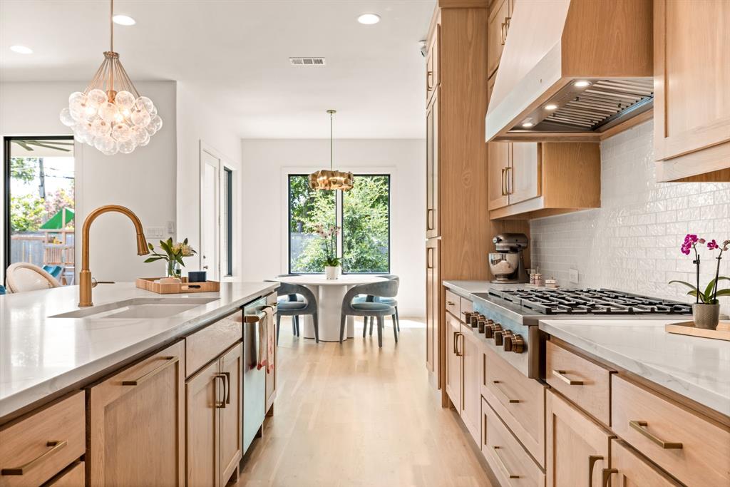 Located in the desirable Bird Streets, this custom-built home offers 4 bedrooms, 4.5 baths, and over 3,700 sq ft of light-filled living. An open layout features multiple living and dining areas, a study, and a chef’s kitchen with quartz countertops, oversized island, designer backsplash, custom cabinetry, and premium appliances. The upstairs primary suite includes a spa-like bath with soaking tub, dual vanities, and large walk-in closet. Additional ensuite bedrooms, a game room, and bonus space complete the second level. Outdoor living is enhanced by a covered patio with fireplace and a fully turfed backyard, perfect for year-round enjoyment. With close proximity to Inwood Village, Love Field, and local shops and dining, this home combines convenience with elevated style.